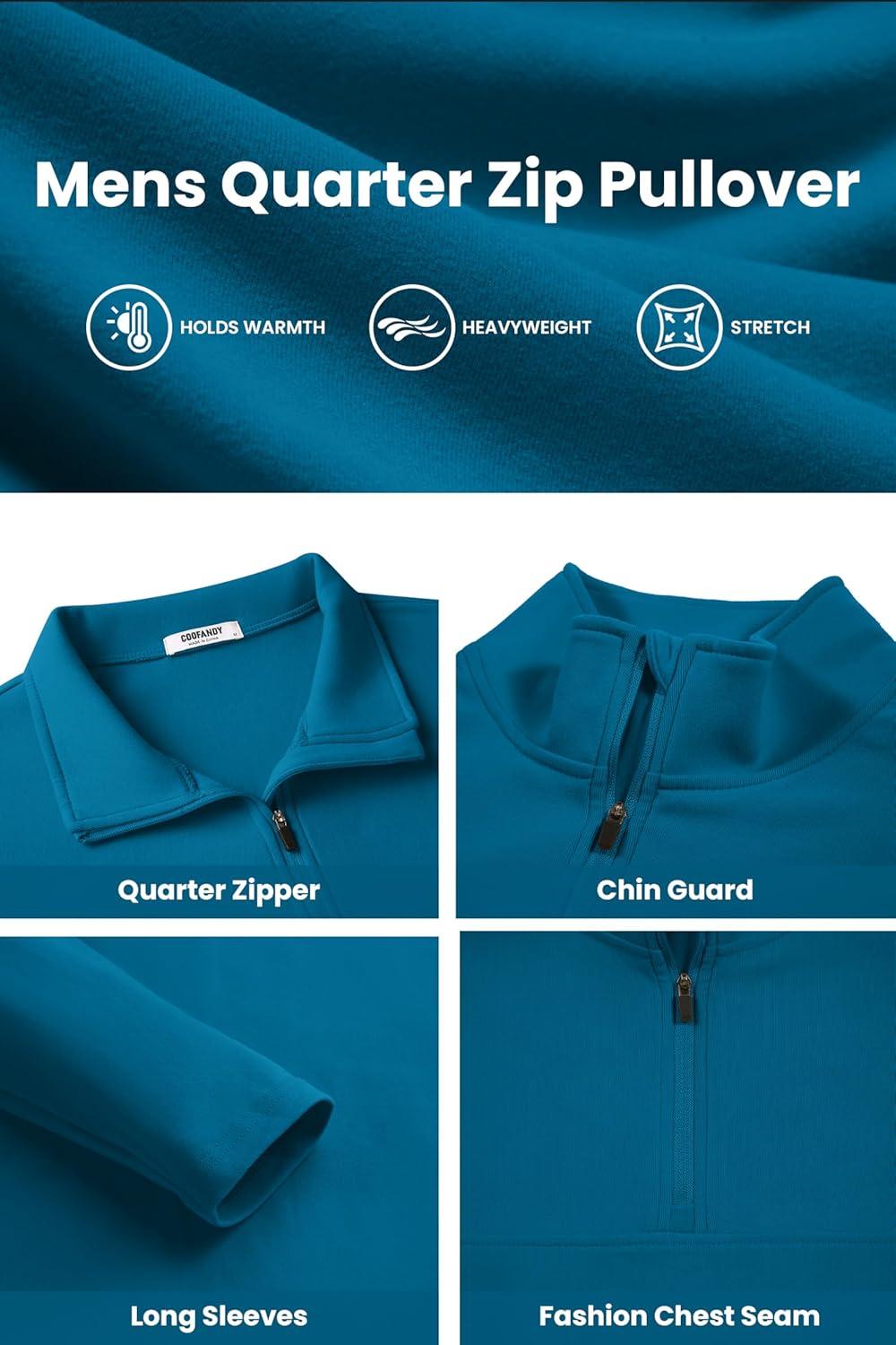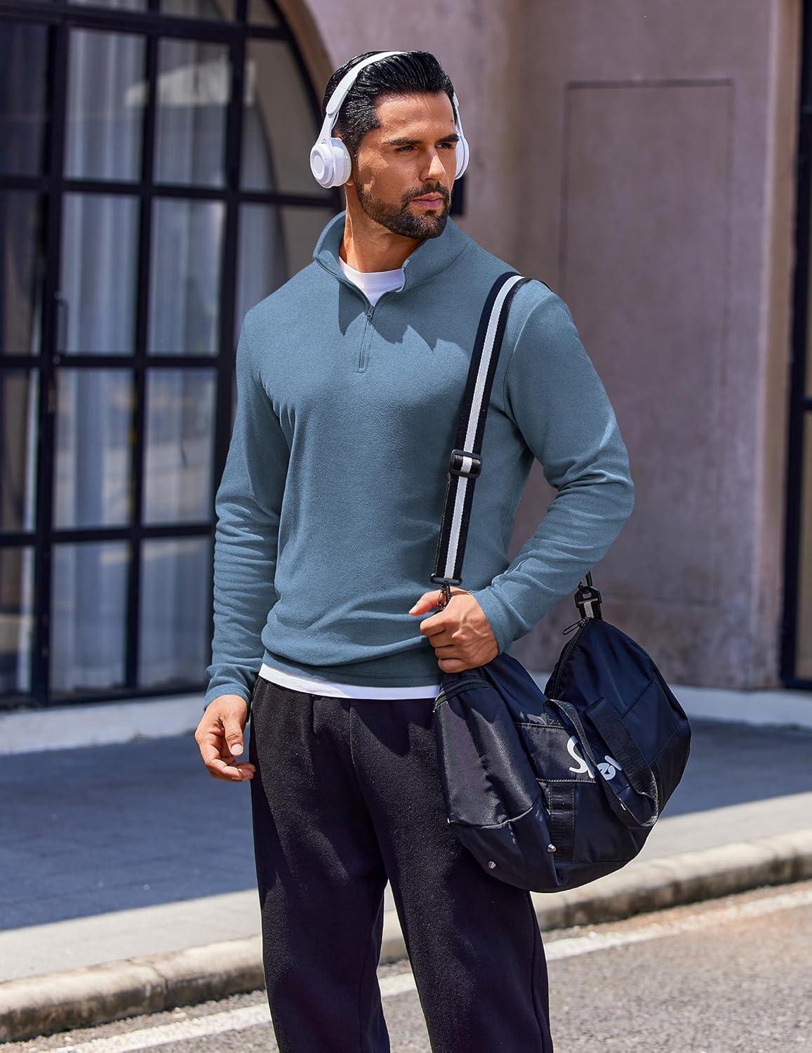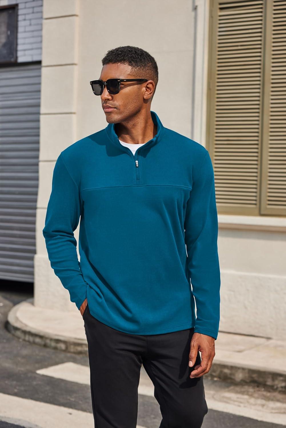 COOFANDY Quarter Zip Pullover Men Long Sleeve Sweatshirts for Men Fleece Sweater Fall(Lake Green)