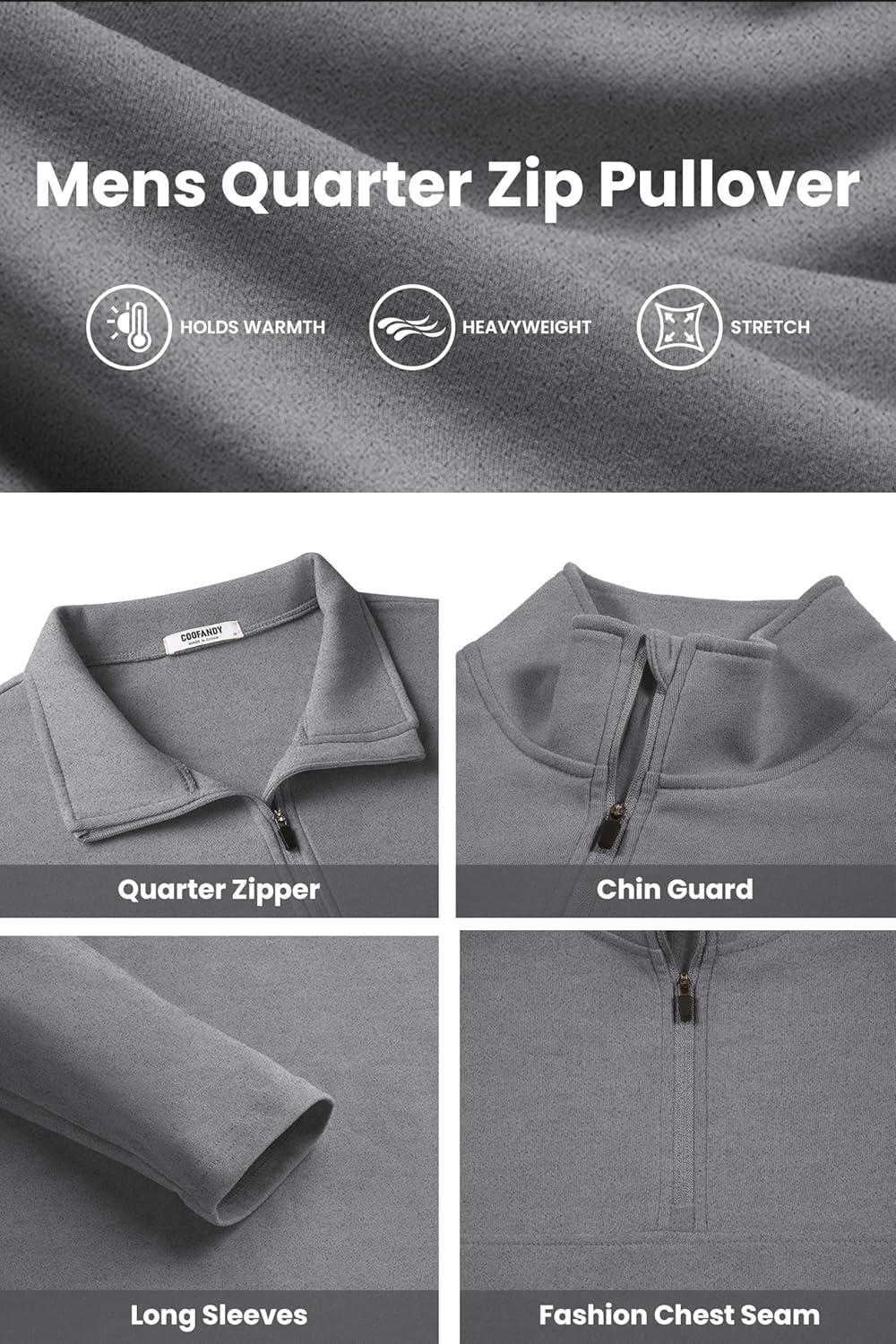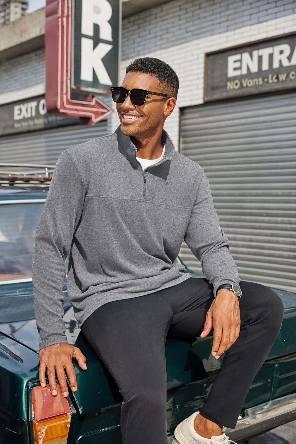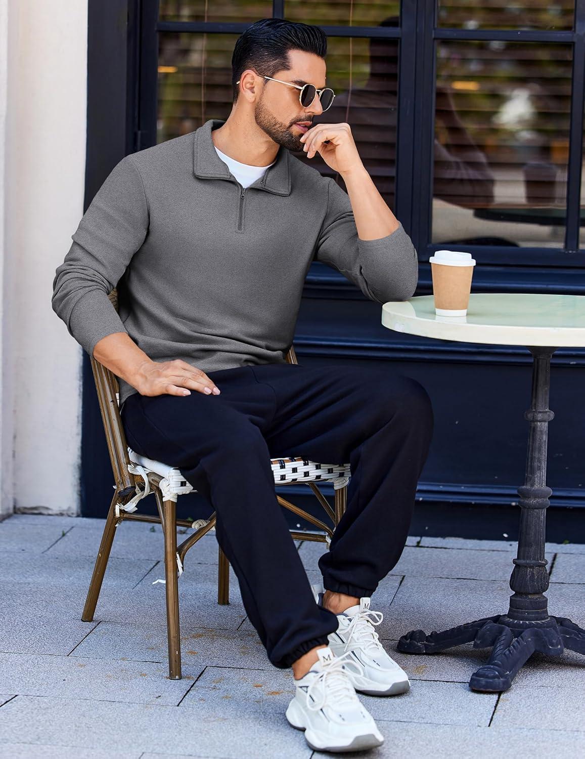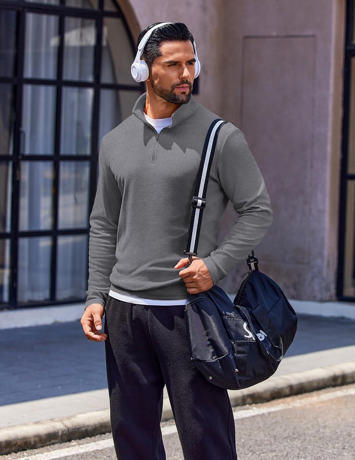 COOFANDY Quarter Zip Pullover Men Long Sleeve Sweatshirts for Men Fleece Sweater Fall(Heather Grey)
