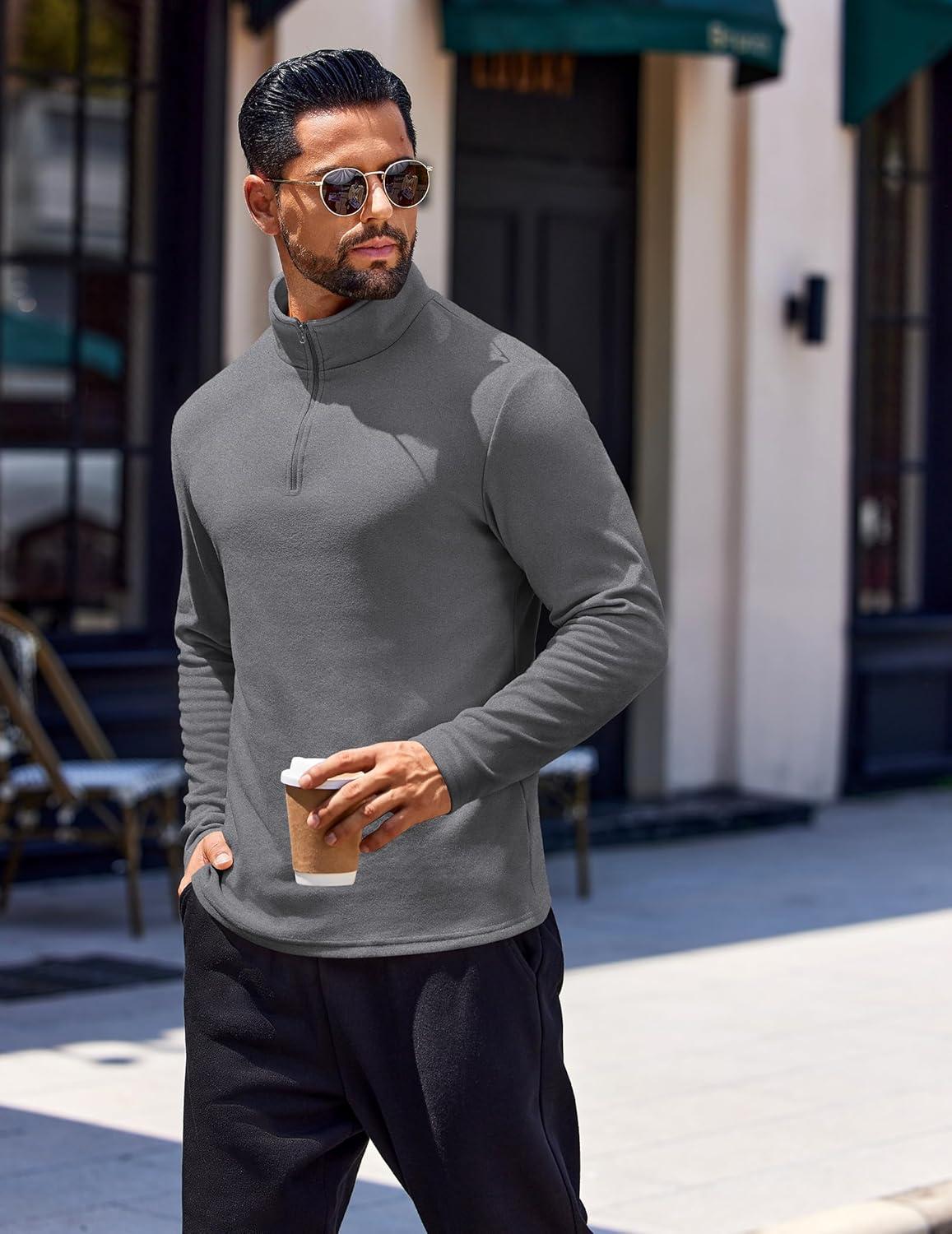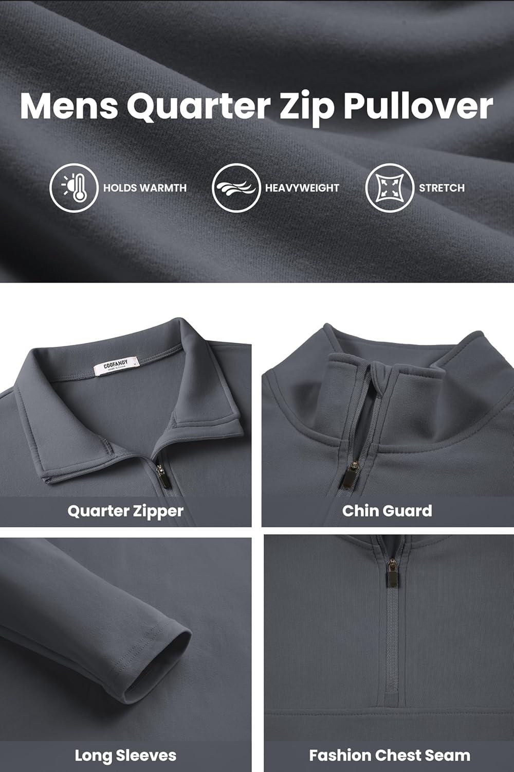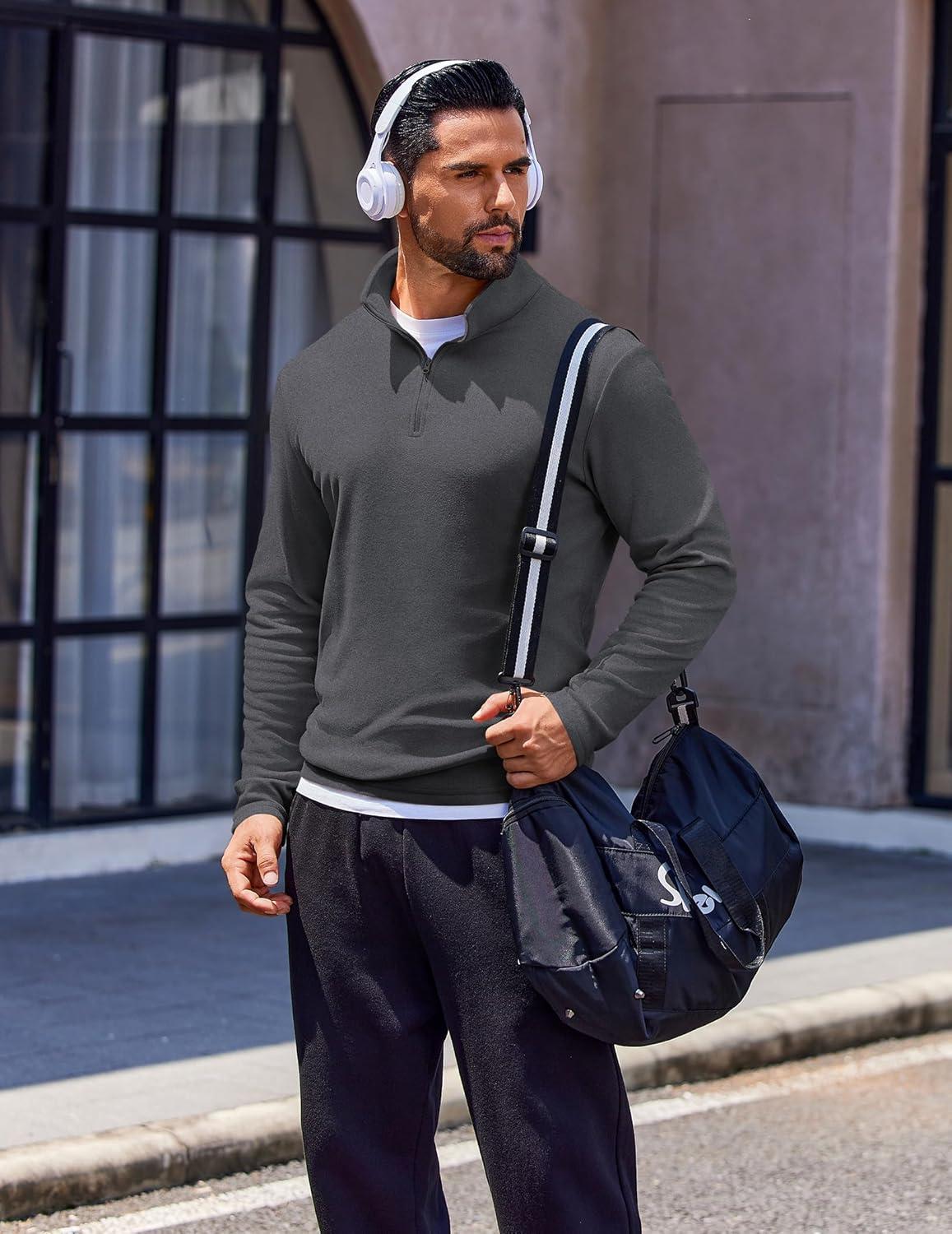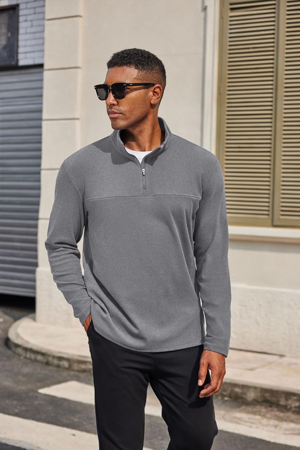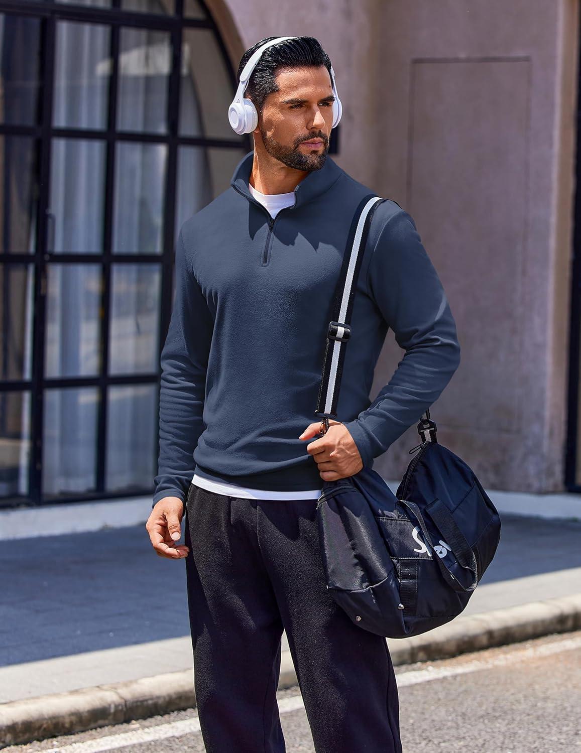 COOFANDY Quarter Zip Pullover Men Long Sleeve Sweatshirts for Men Fleece Sweater Fall(Heather Grey)