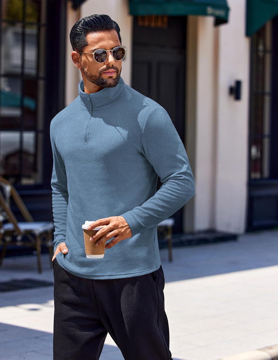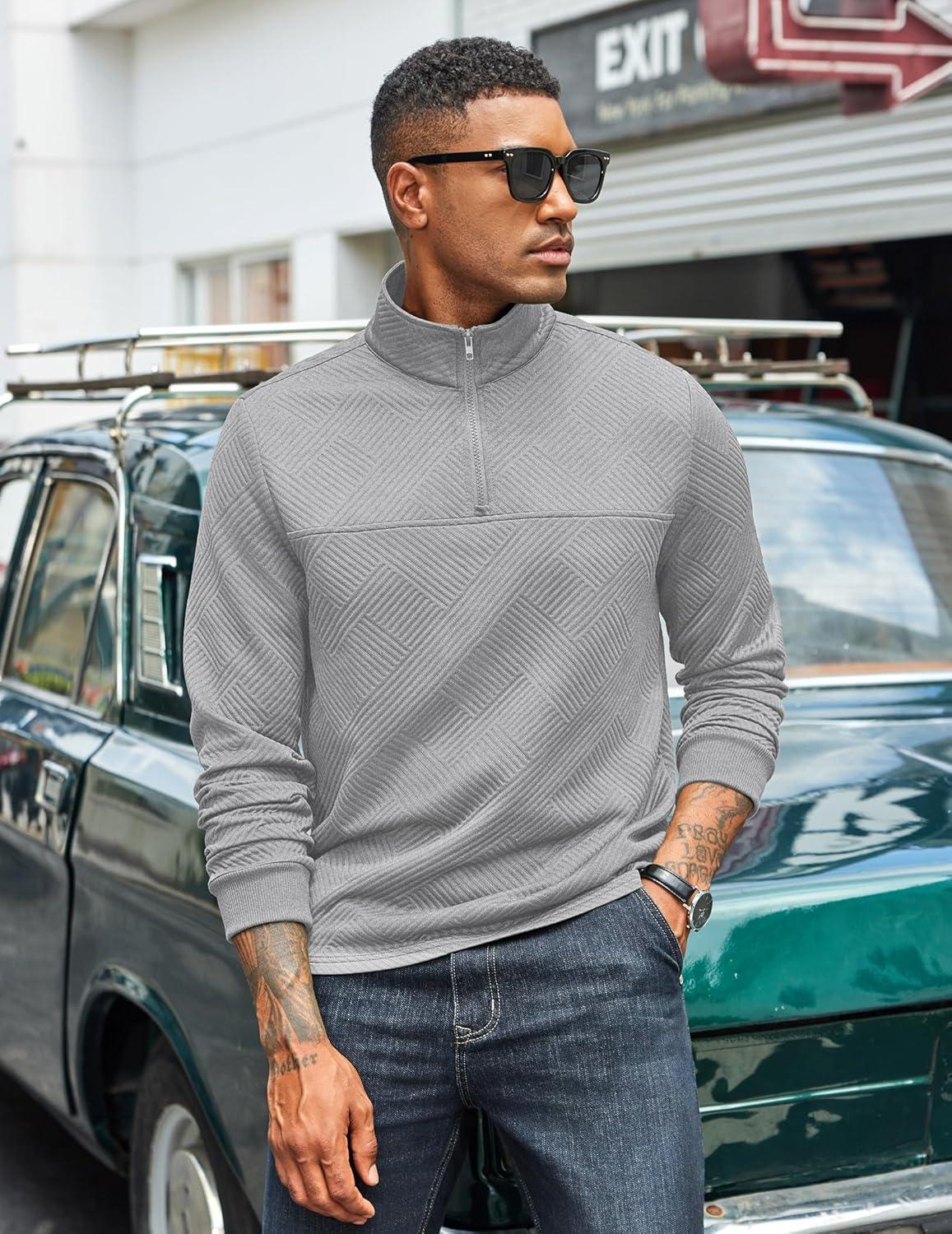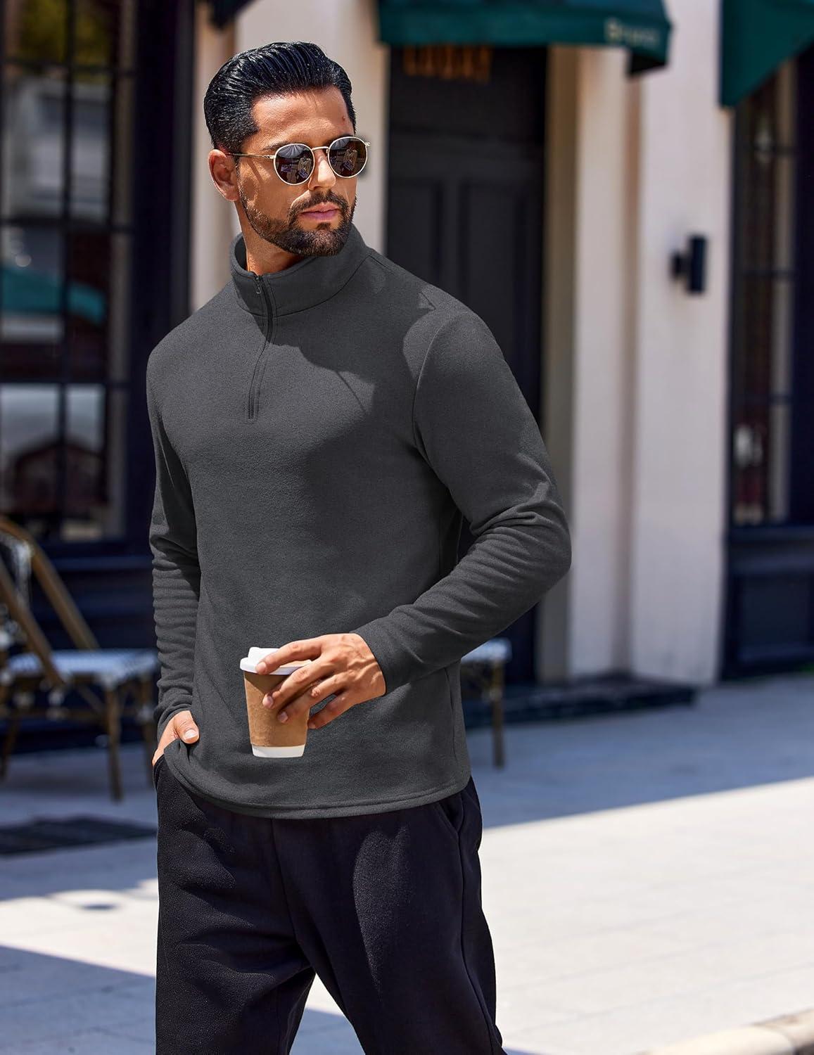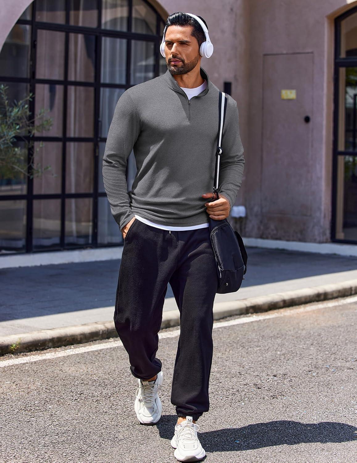 COOFANDY Quarter Zip Pullover Men Long Sleeve Sweatshirts for Men Fleece Sweater Fall(Heather Grey)