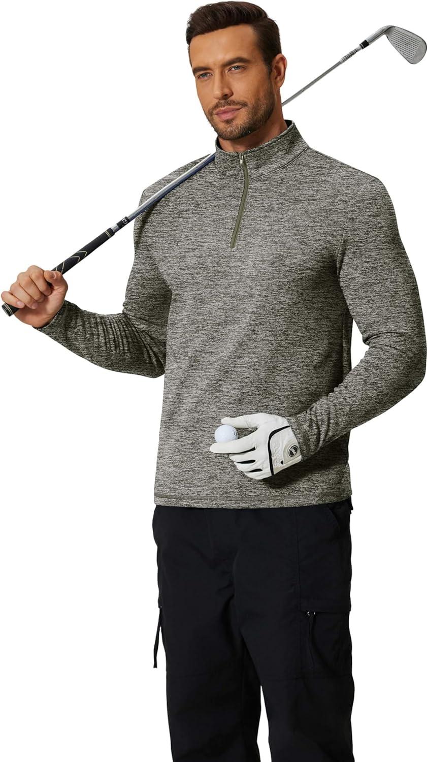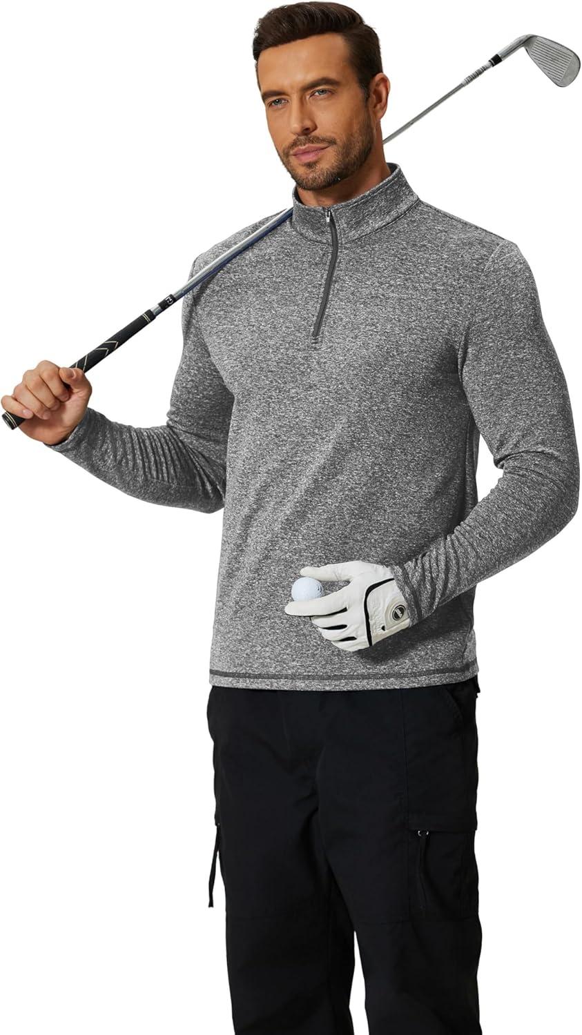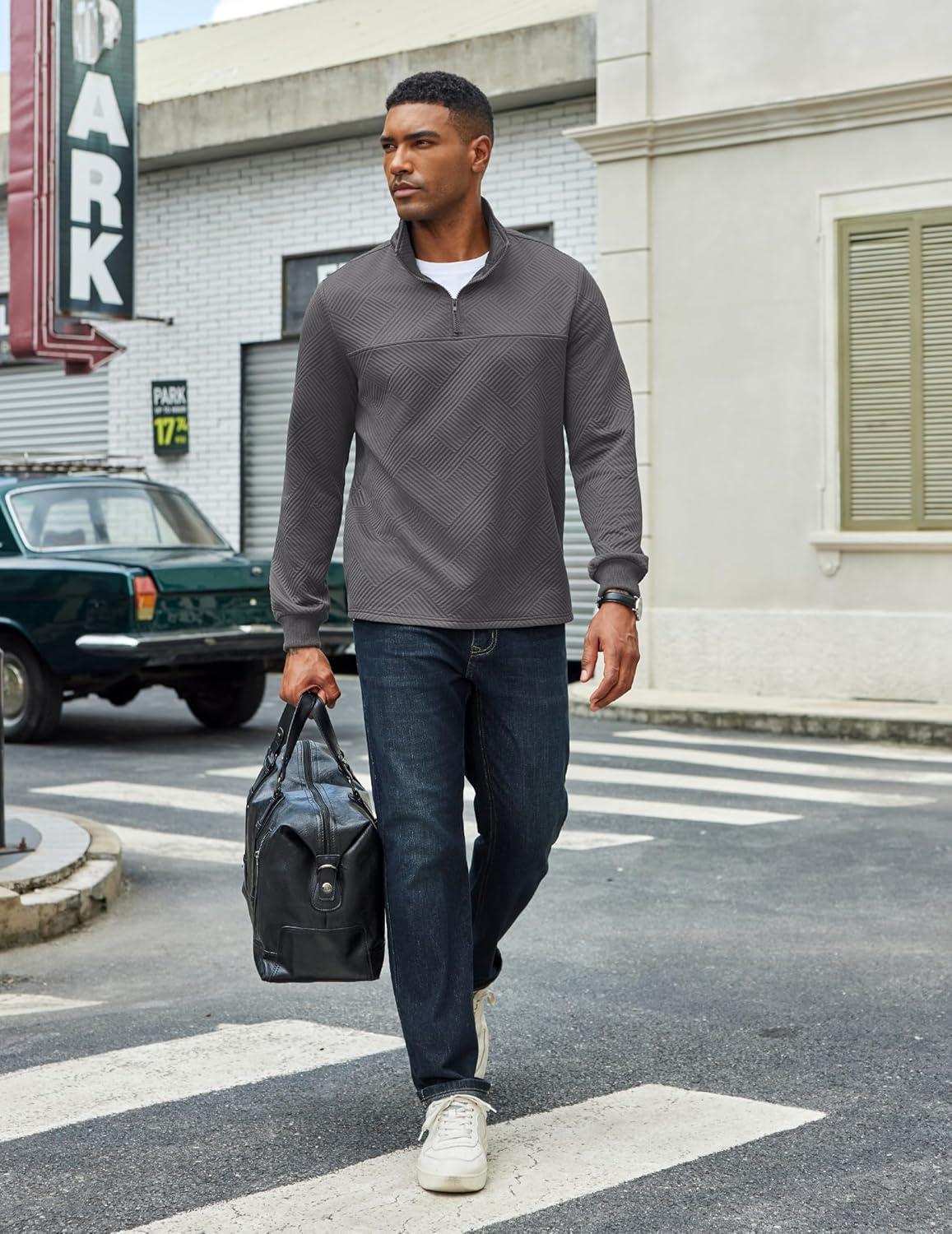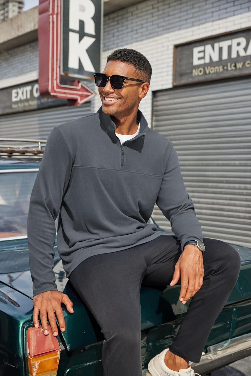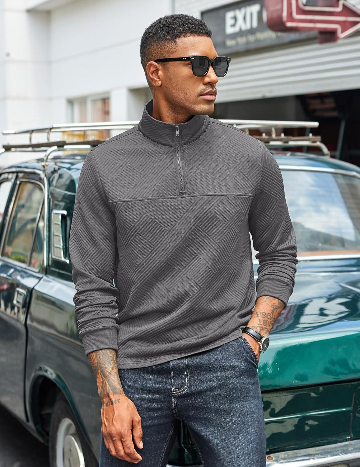 COOFANDY Quarter Zip Pullover Men Long Sleeve Sweatshirts for Men Fleece Sweater Fall(Heather Grey)