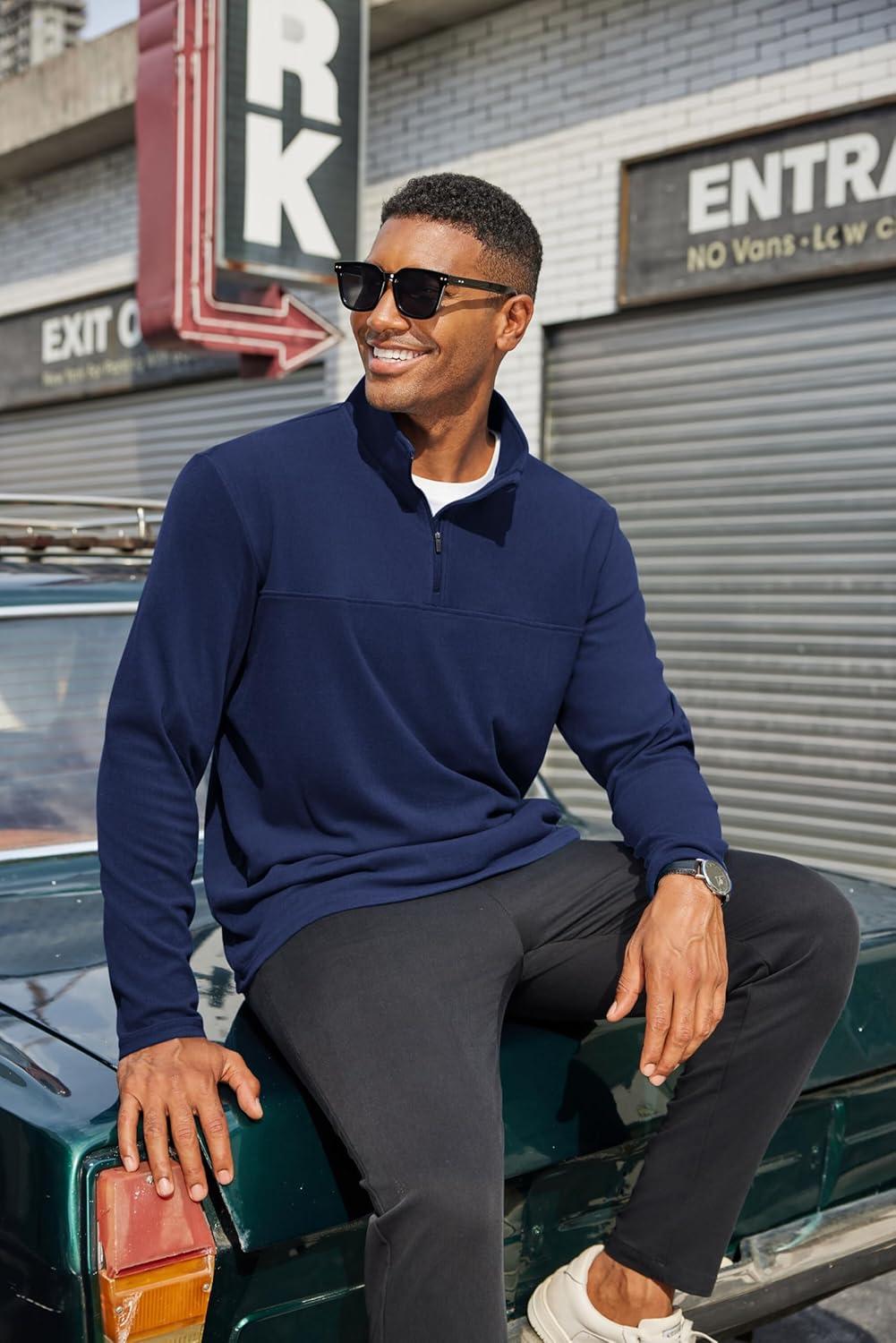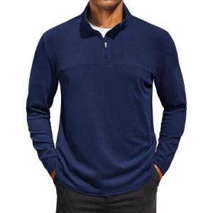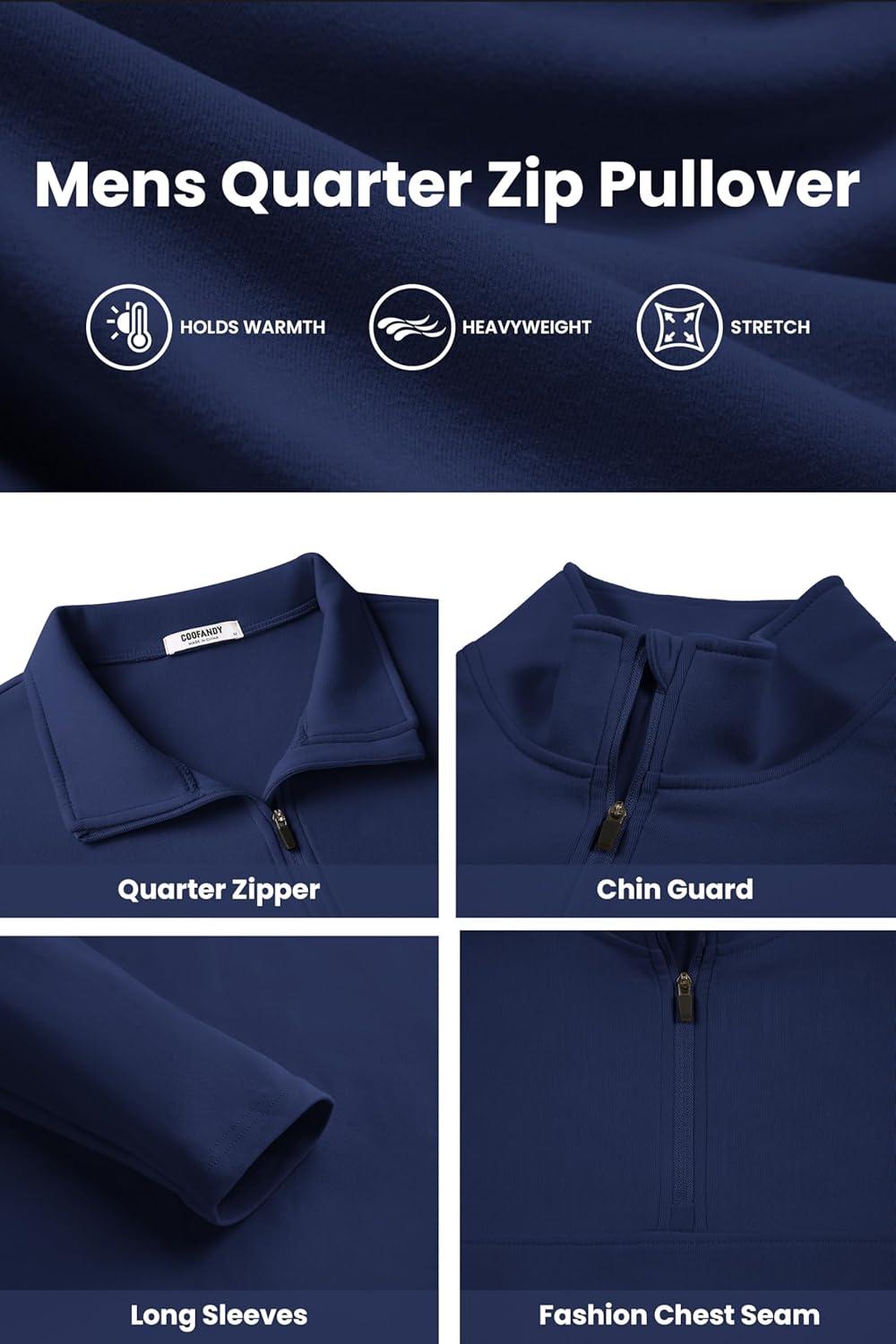 COOFANDY Quarter Zip Pullover Men Long Sleeve Sweatshirts for Men Fleece Sweater Fall(Navy Blue)