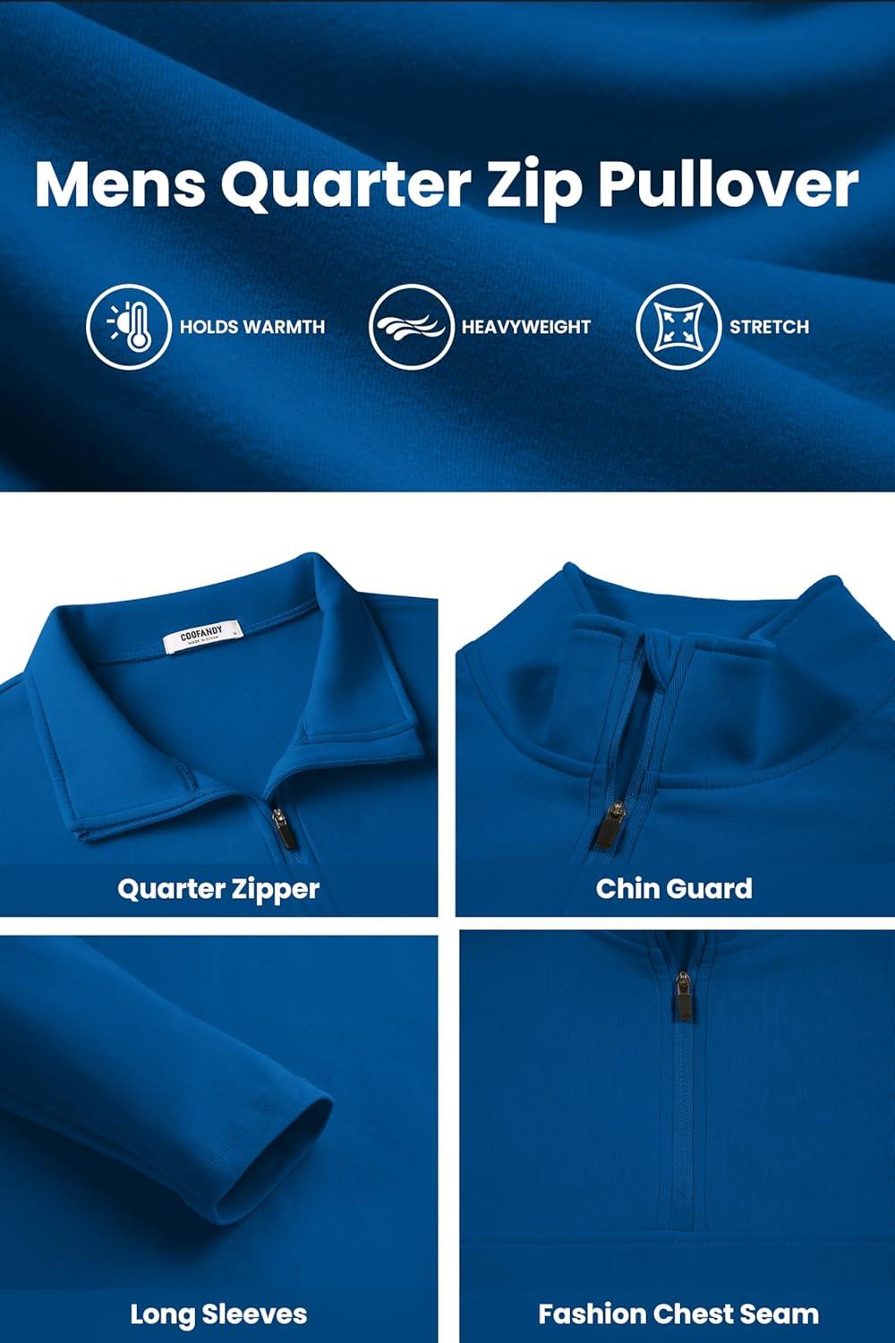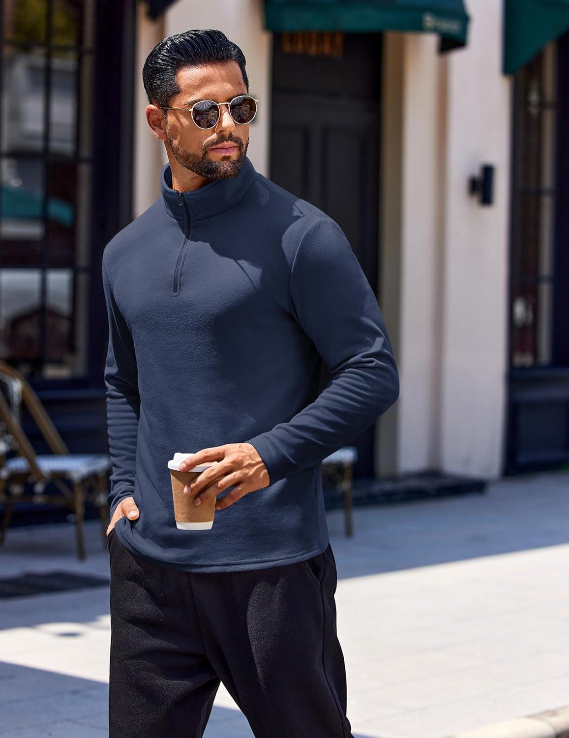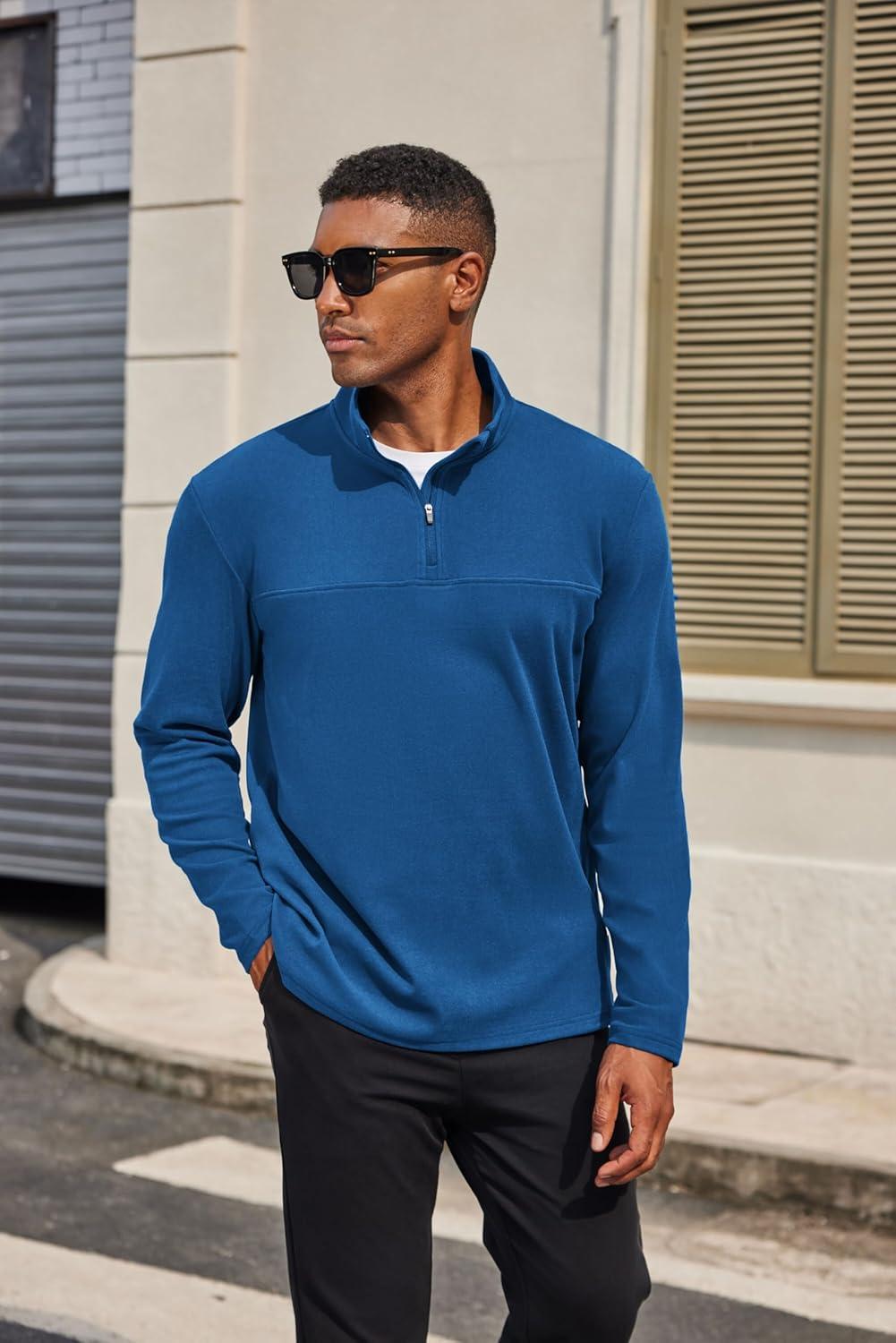 COOFANDY Quarter Zip Pullover Men Long Sleeve Sweatshirts for Men Fleece Sweater Fall(Dark Blue)