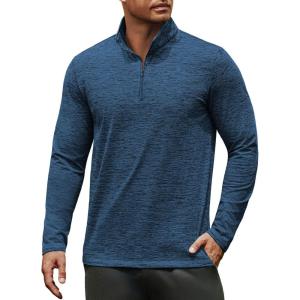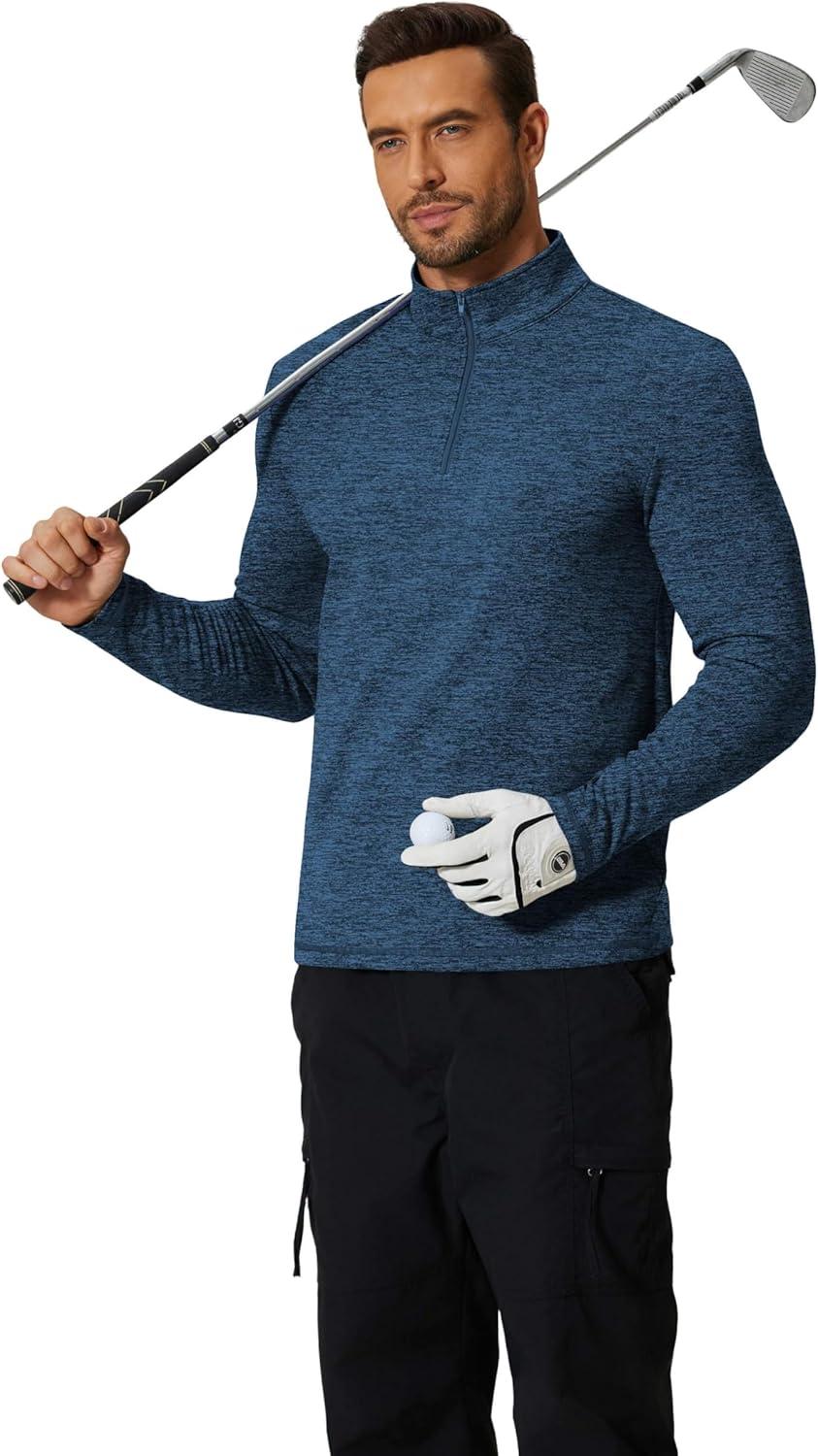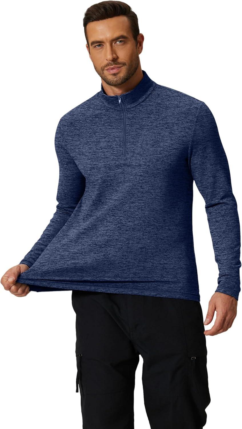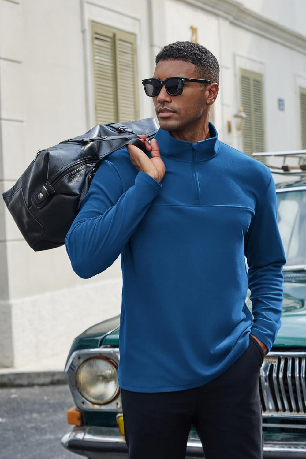 COOFANDY Quarter Zip Pullover Men Long Sleeve Sweatshirts for Men Fleece Sweater Fall(Dark Blue)