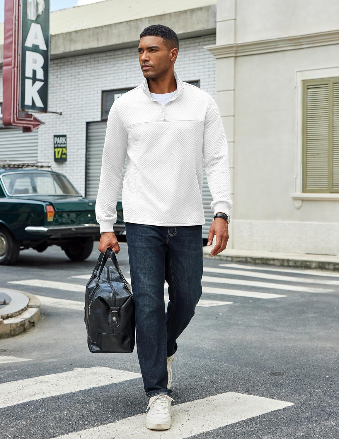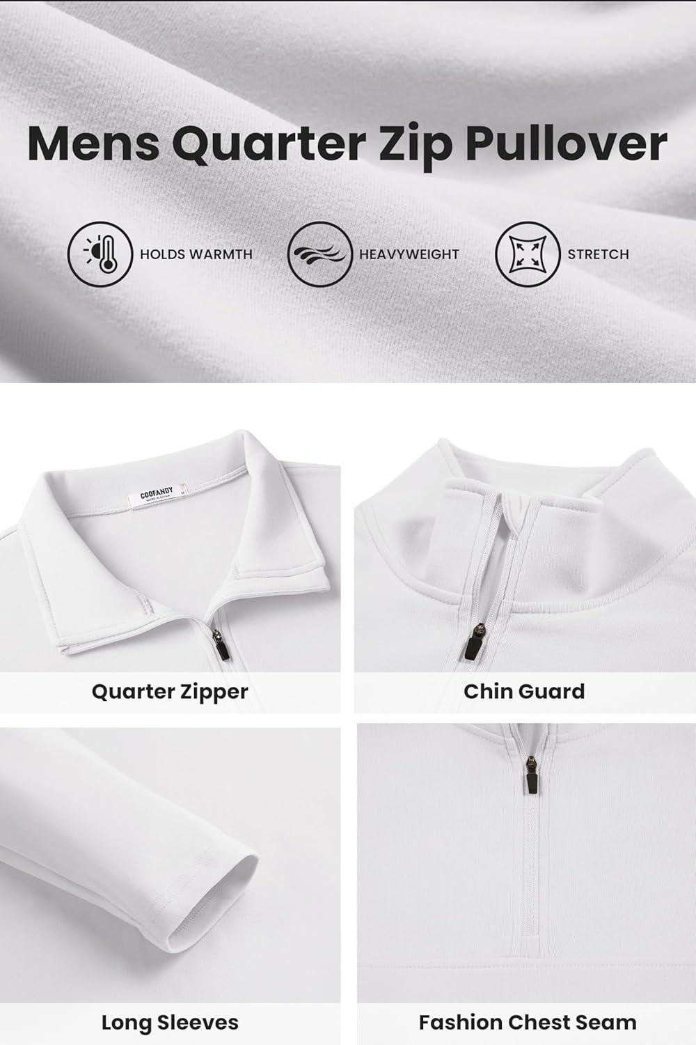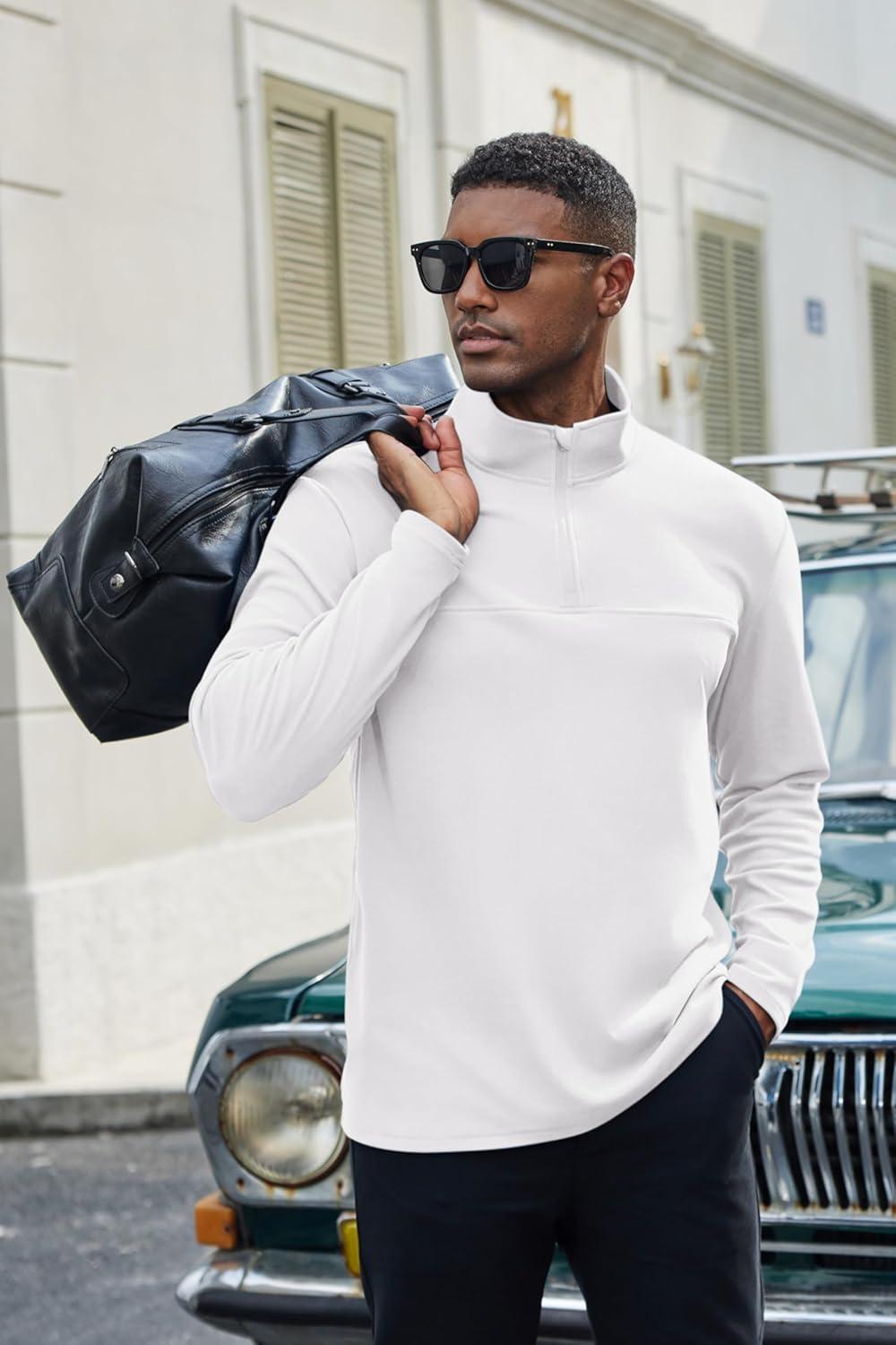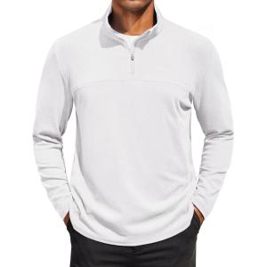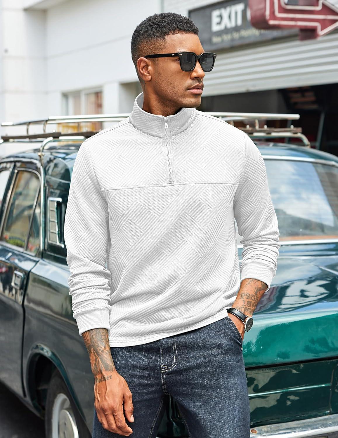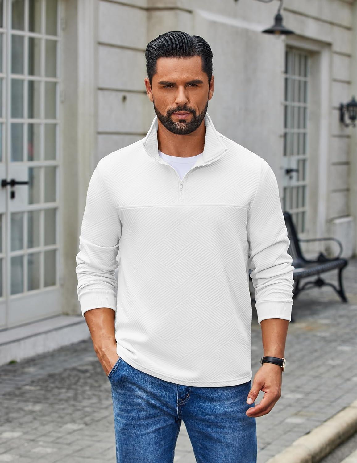 COOFANDY Quarter Zip Pullover Men Long Sleeve Sweatshirts for Men Fleece Sweater Fall(White)