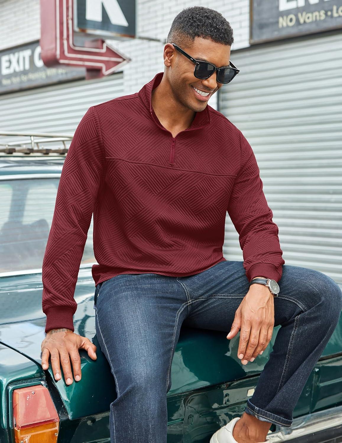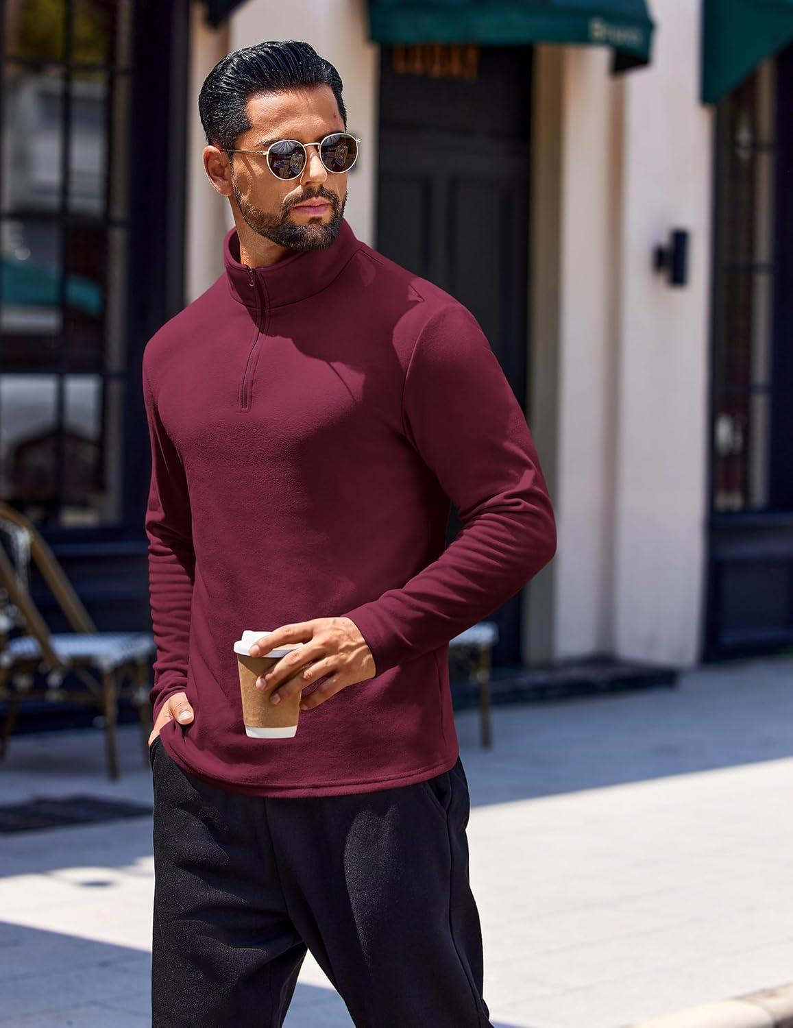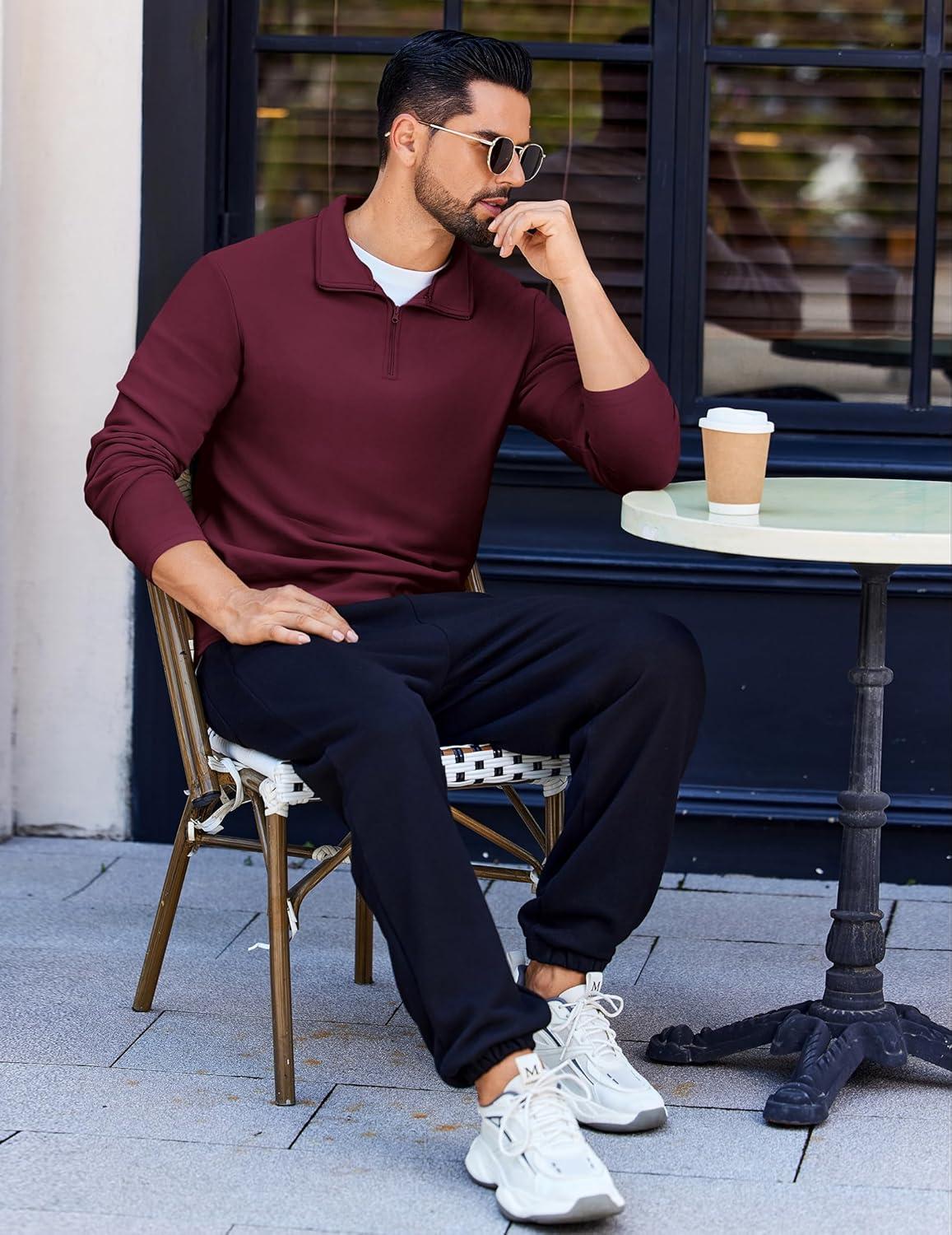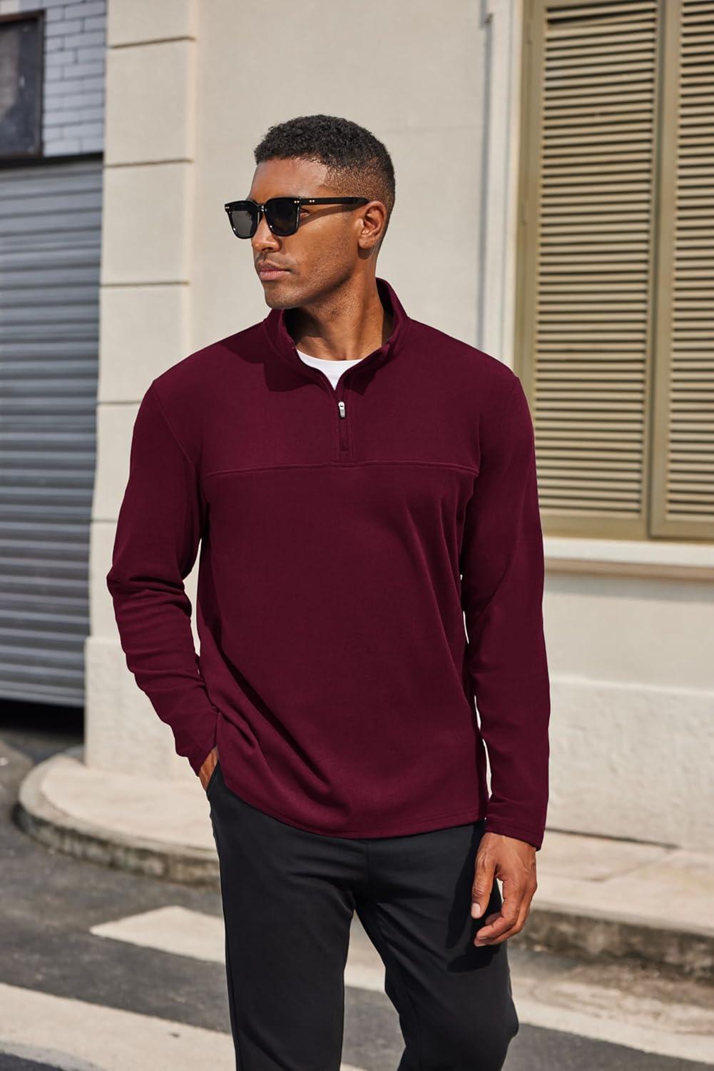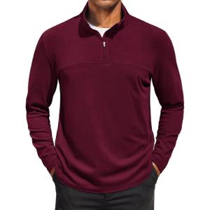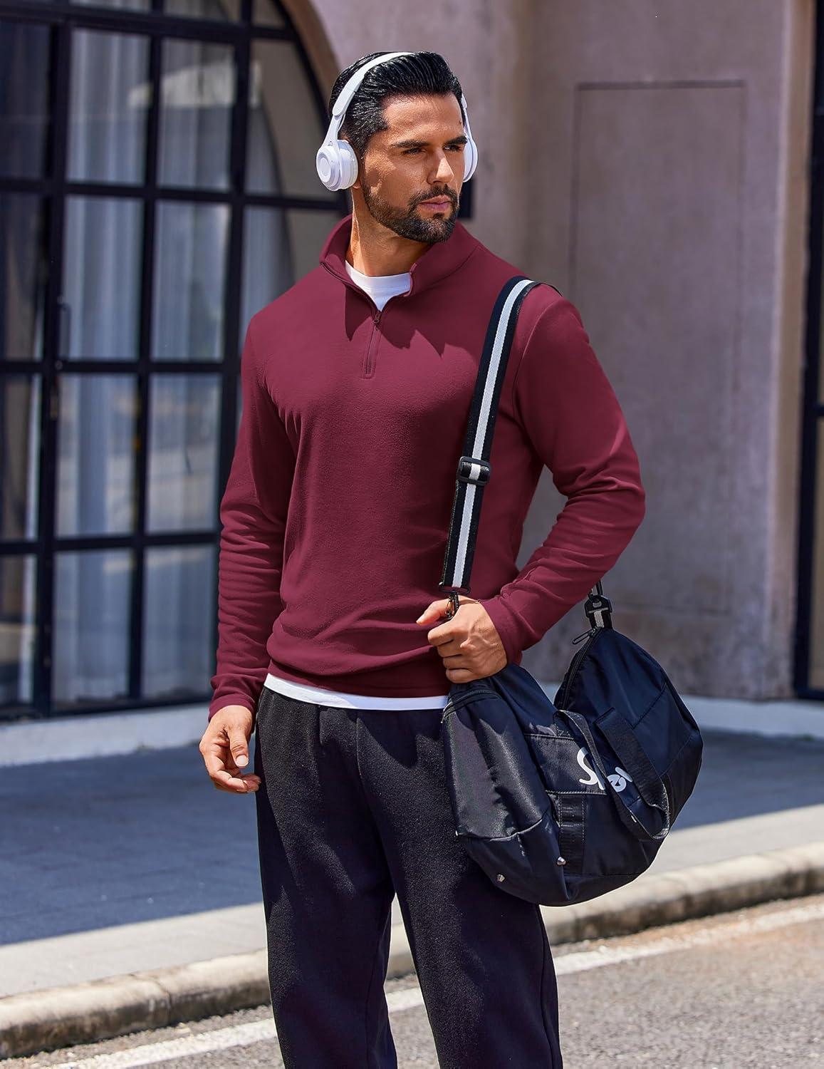 COOFANDY Quarter Zip Pullover Men Long Sleeve Sweatshirts for Men Fleece Sweater Fall(Dark Red)