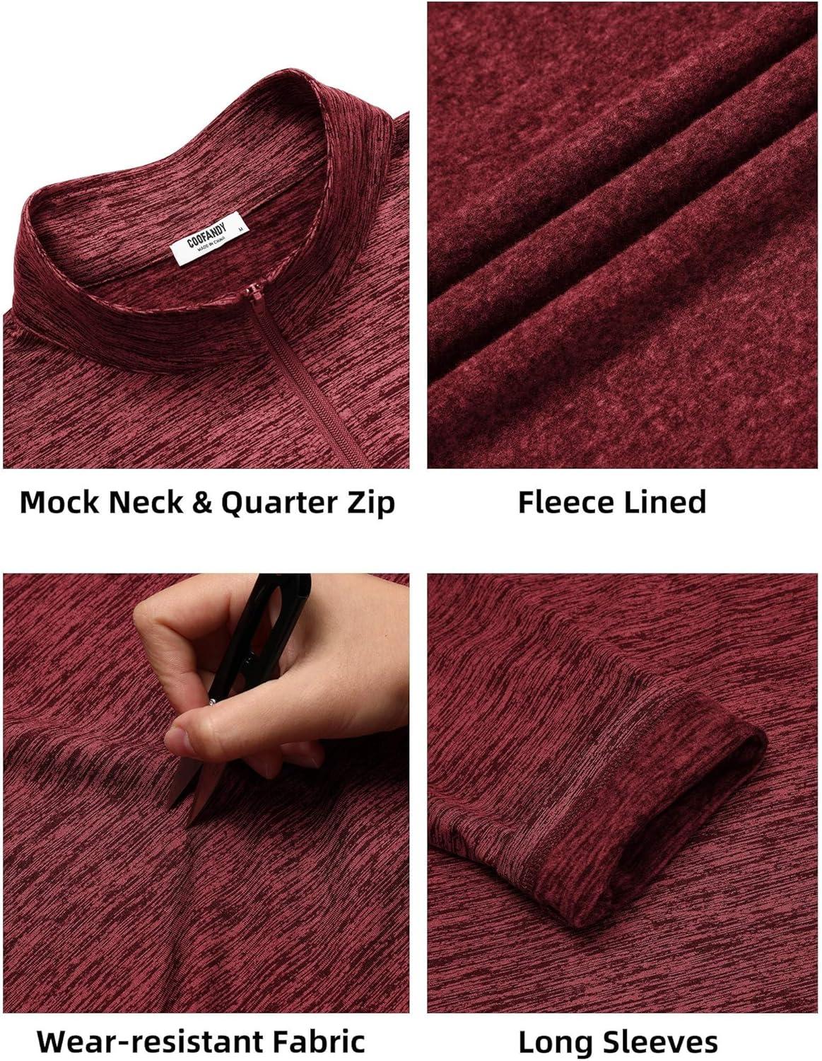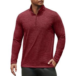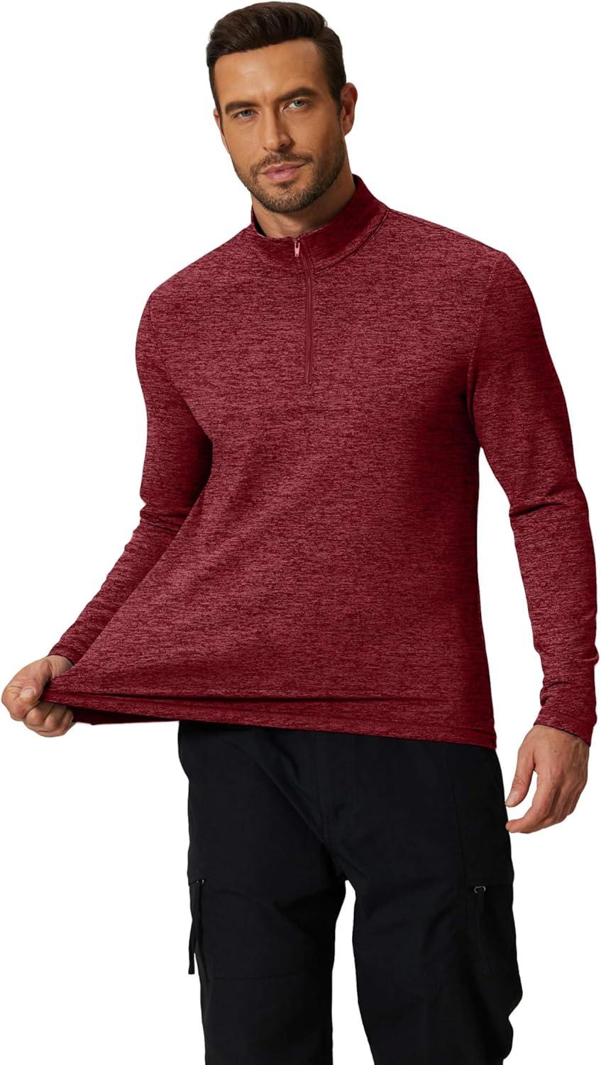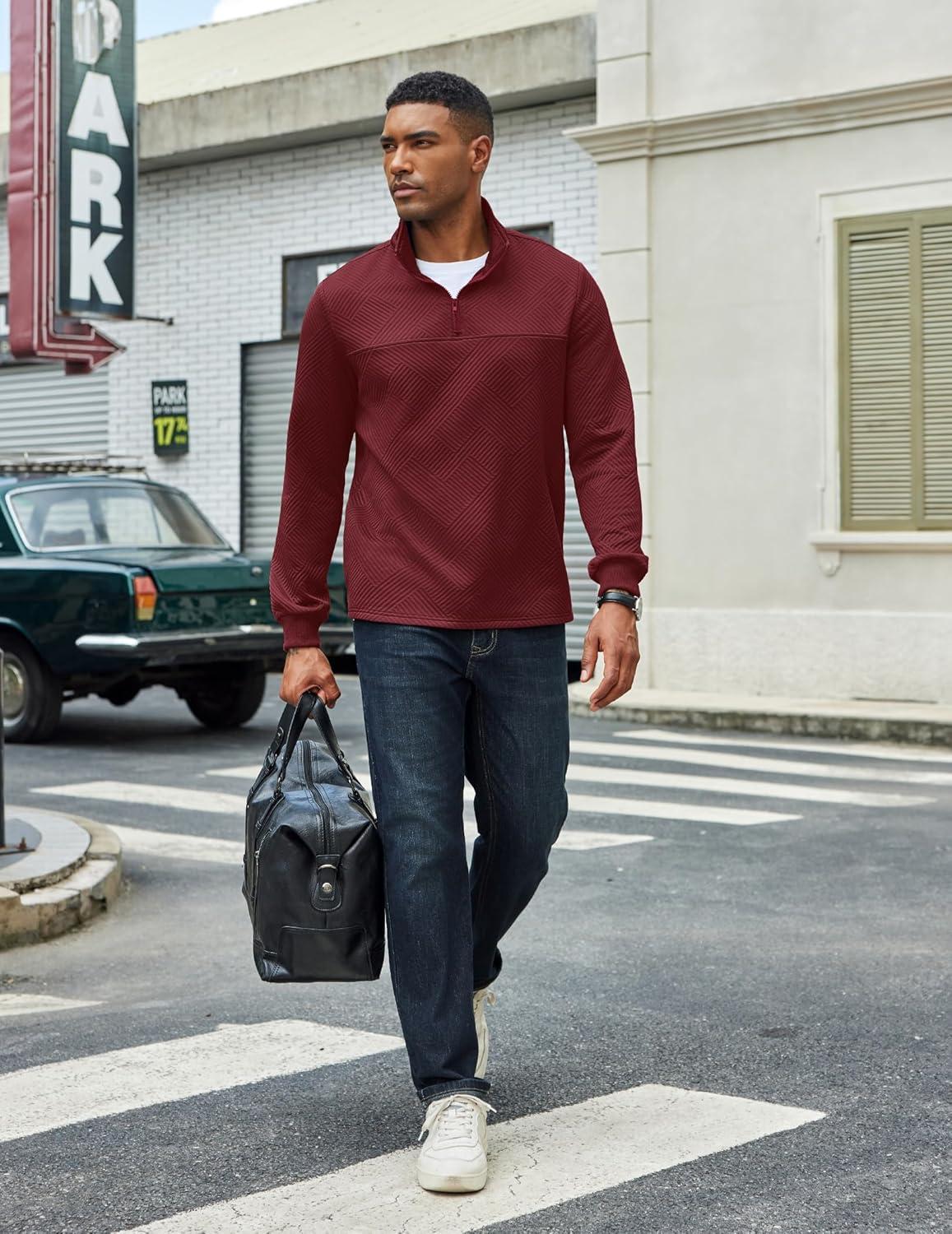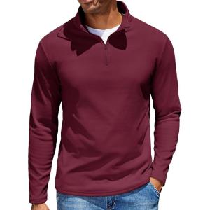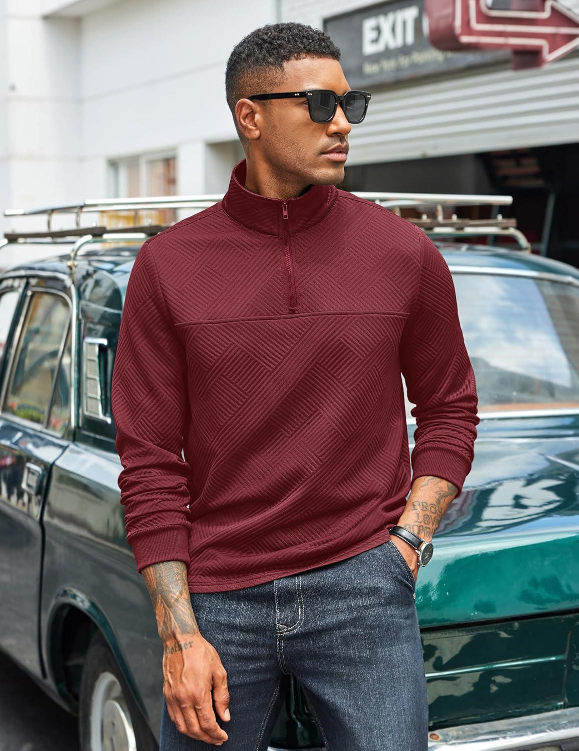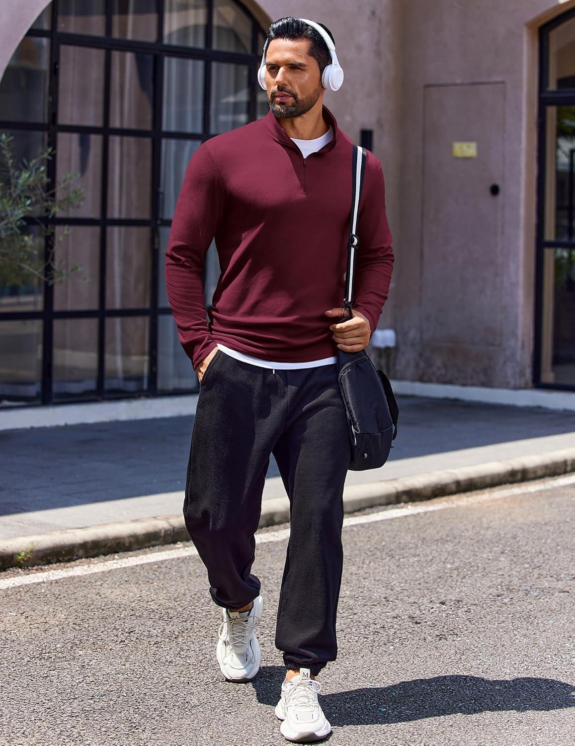 COOFANDY Quarter Zip Pullover Men Long Sleeve Sweatshirts for Men Fleece Sweater Fall(Dark Red)