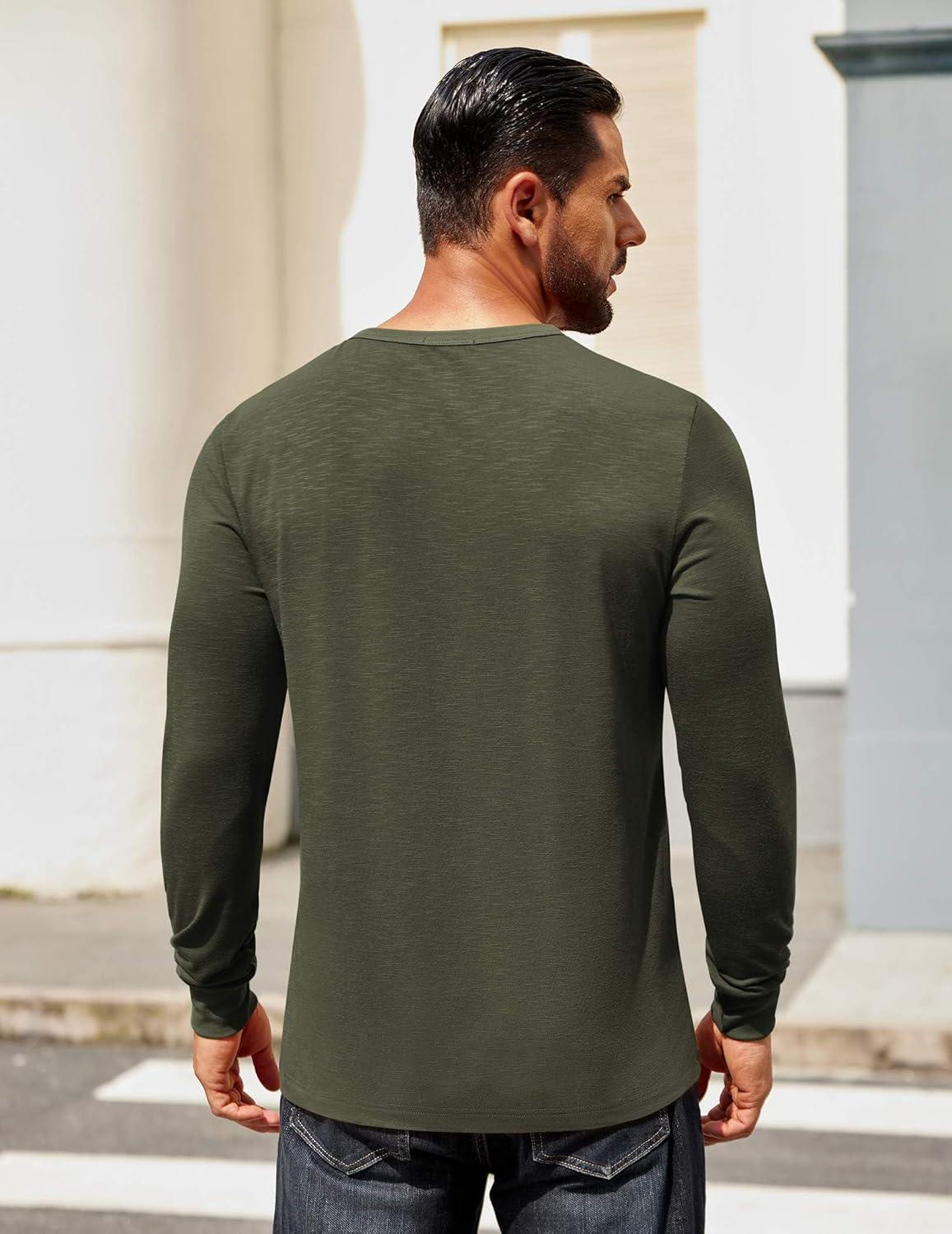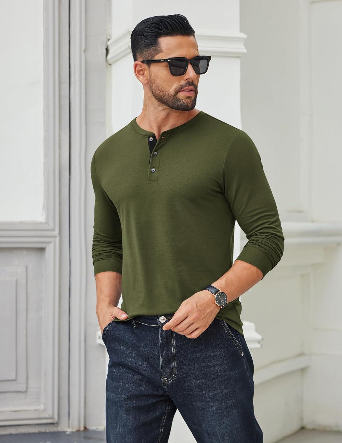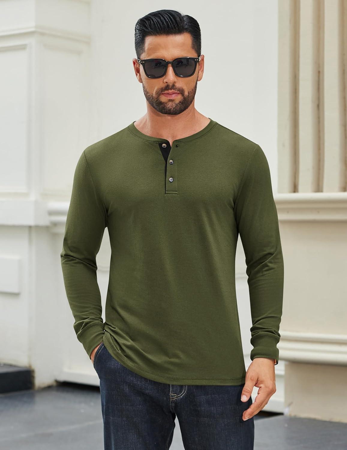 COOFANDY Men’s Long Sleeve Henley Shirts Cotton T-Shirts Casual Pullover Shirt Soft Stretch Basic Tees Fall Tops(Army Green)