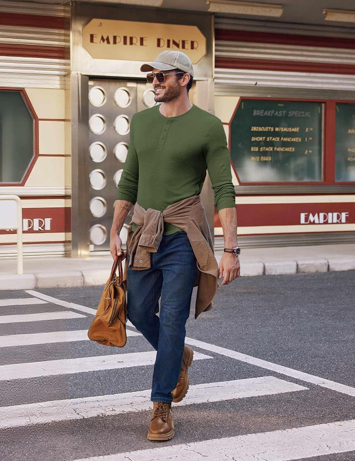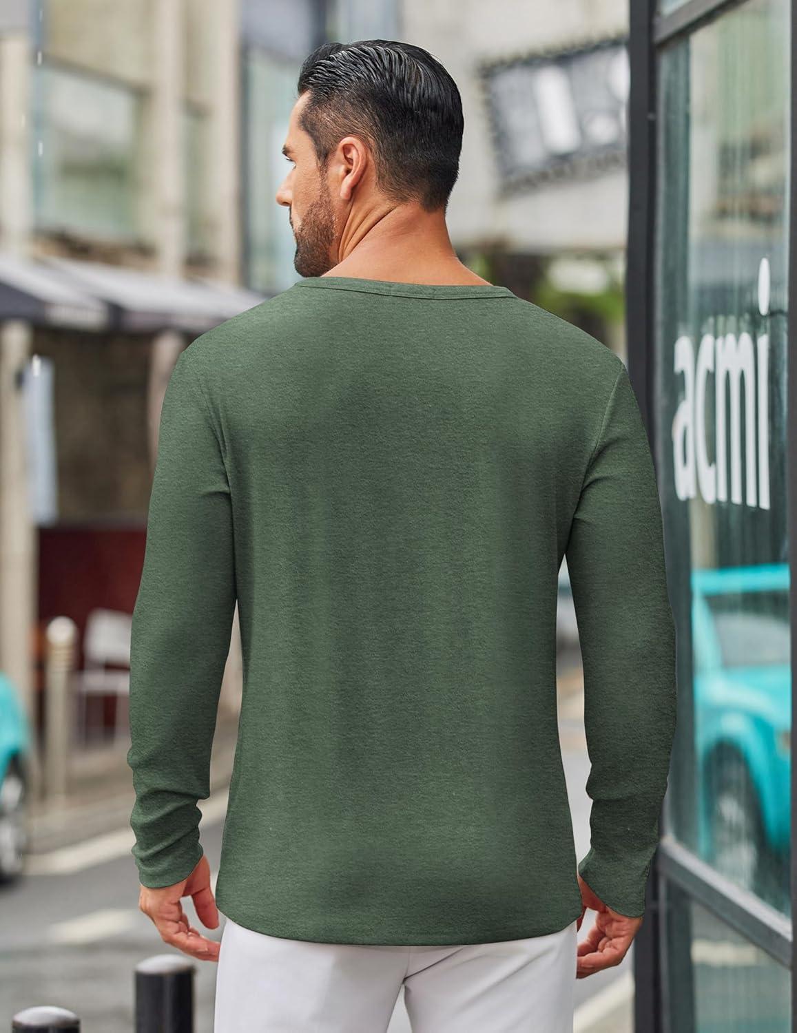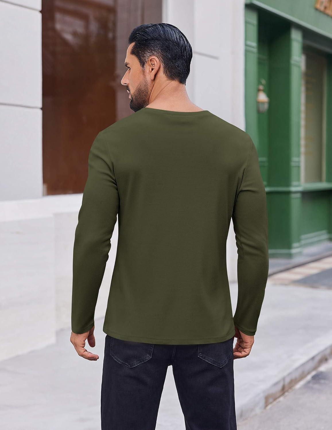 COOFANDY Men’s Long Sleeve Henley Shirts Cotton T-Shirts Casual Pullover Shirt Soft Stretch Basic Tees Fall Tops(Army Green)