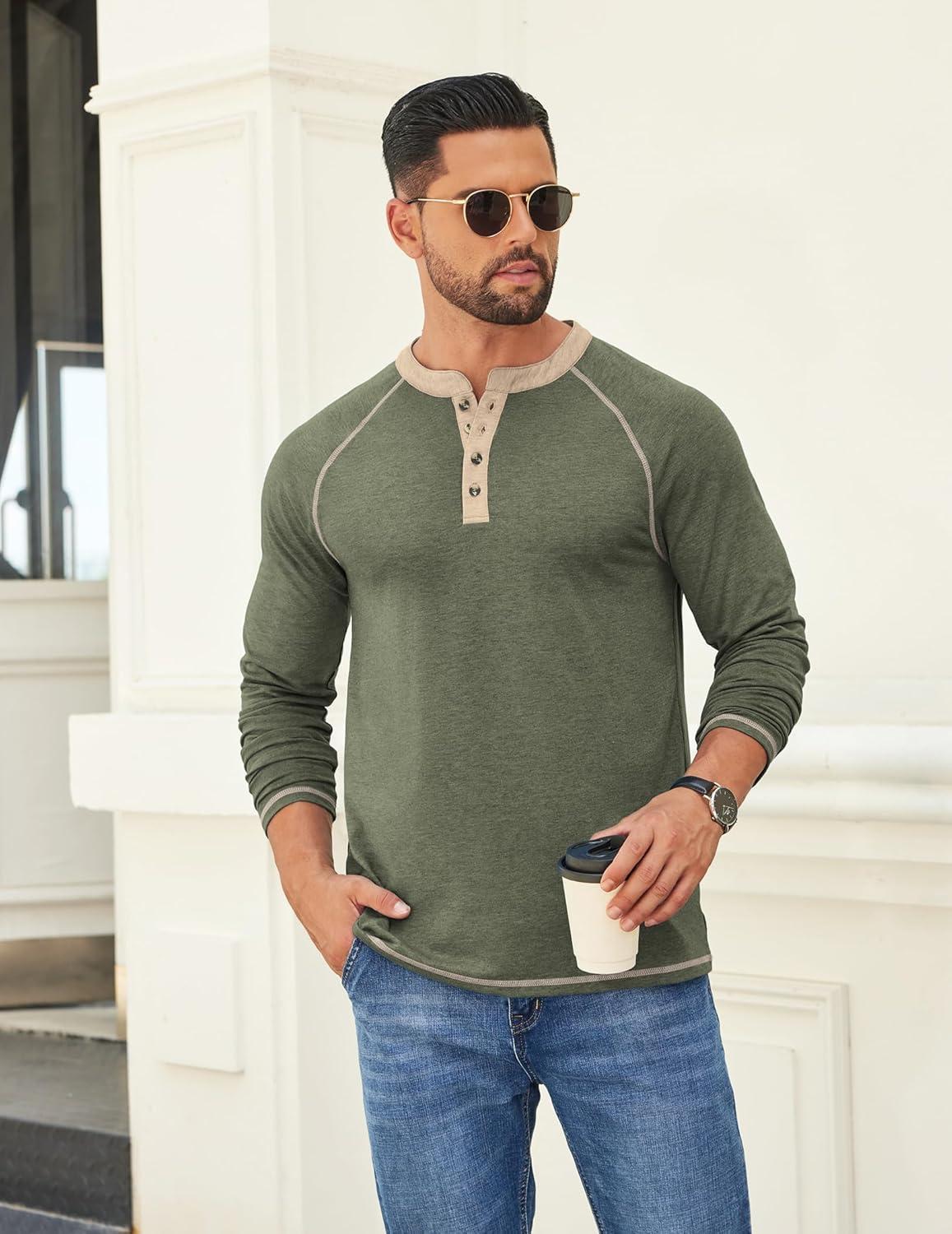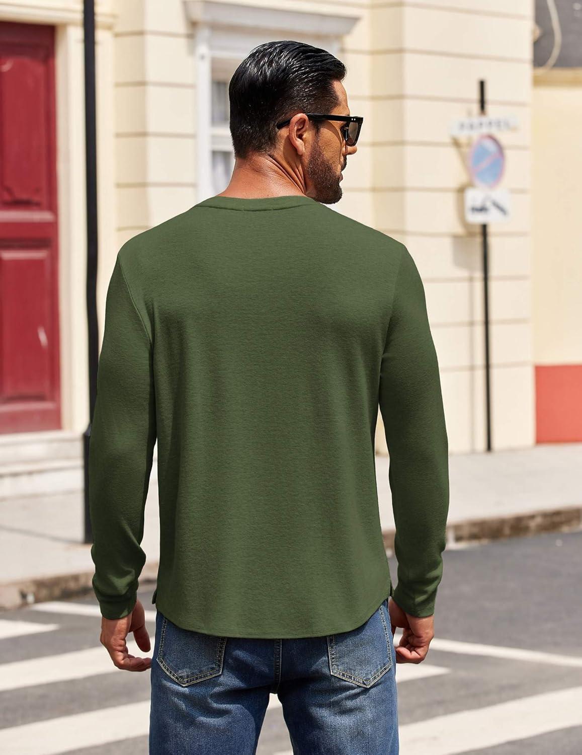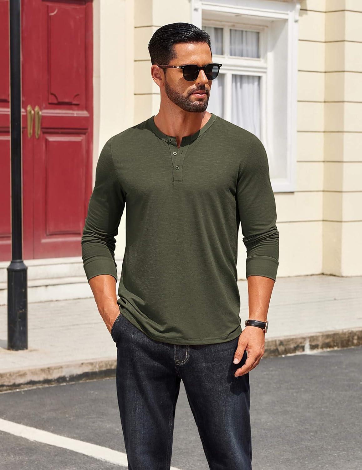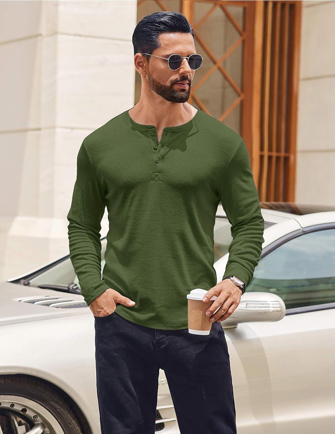 COOFANDY Men’s Henley Shirts Long Sleeve T-Shirt Lightweight Fashion Casual Pullover Tee Shirt(Army Green)