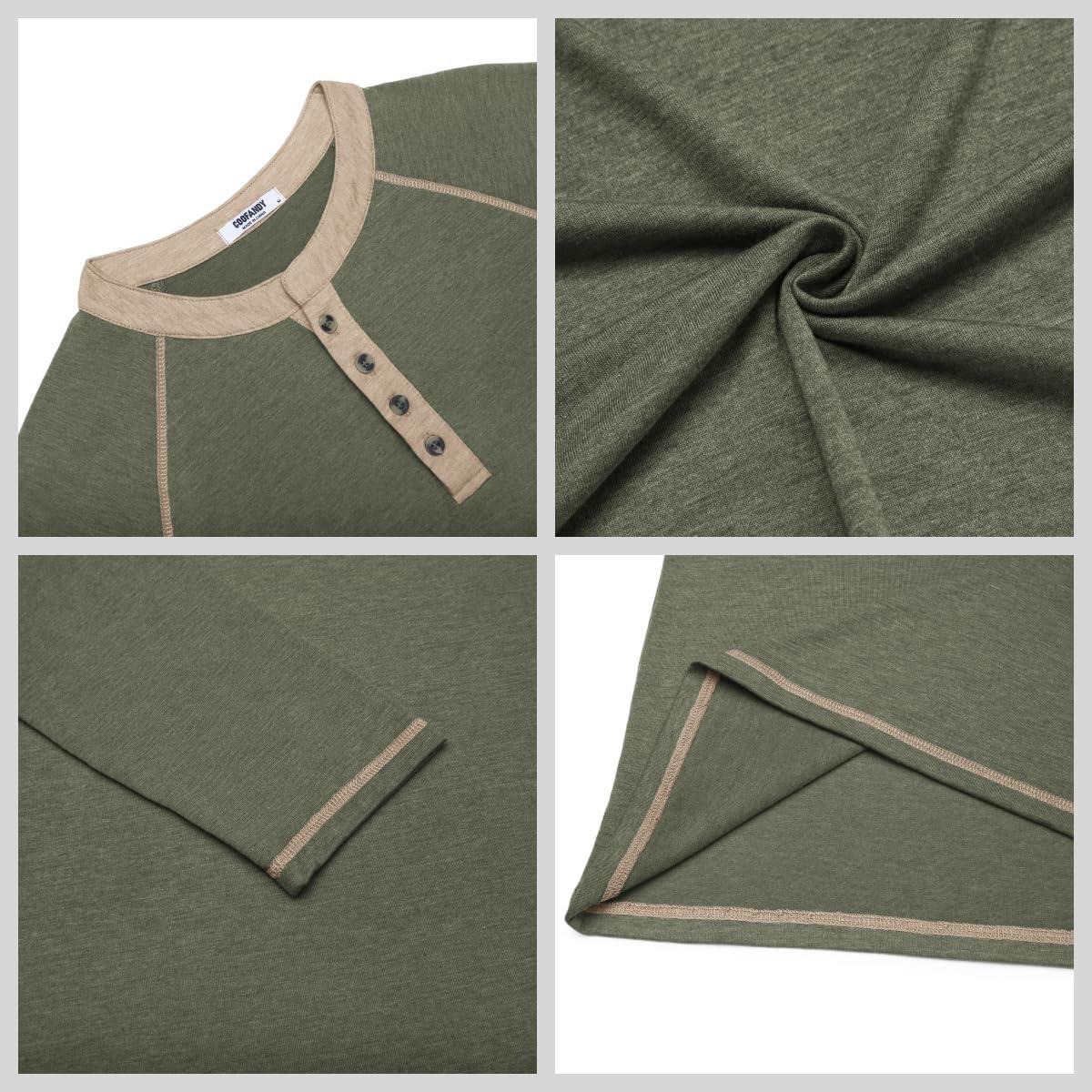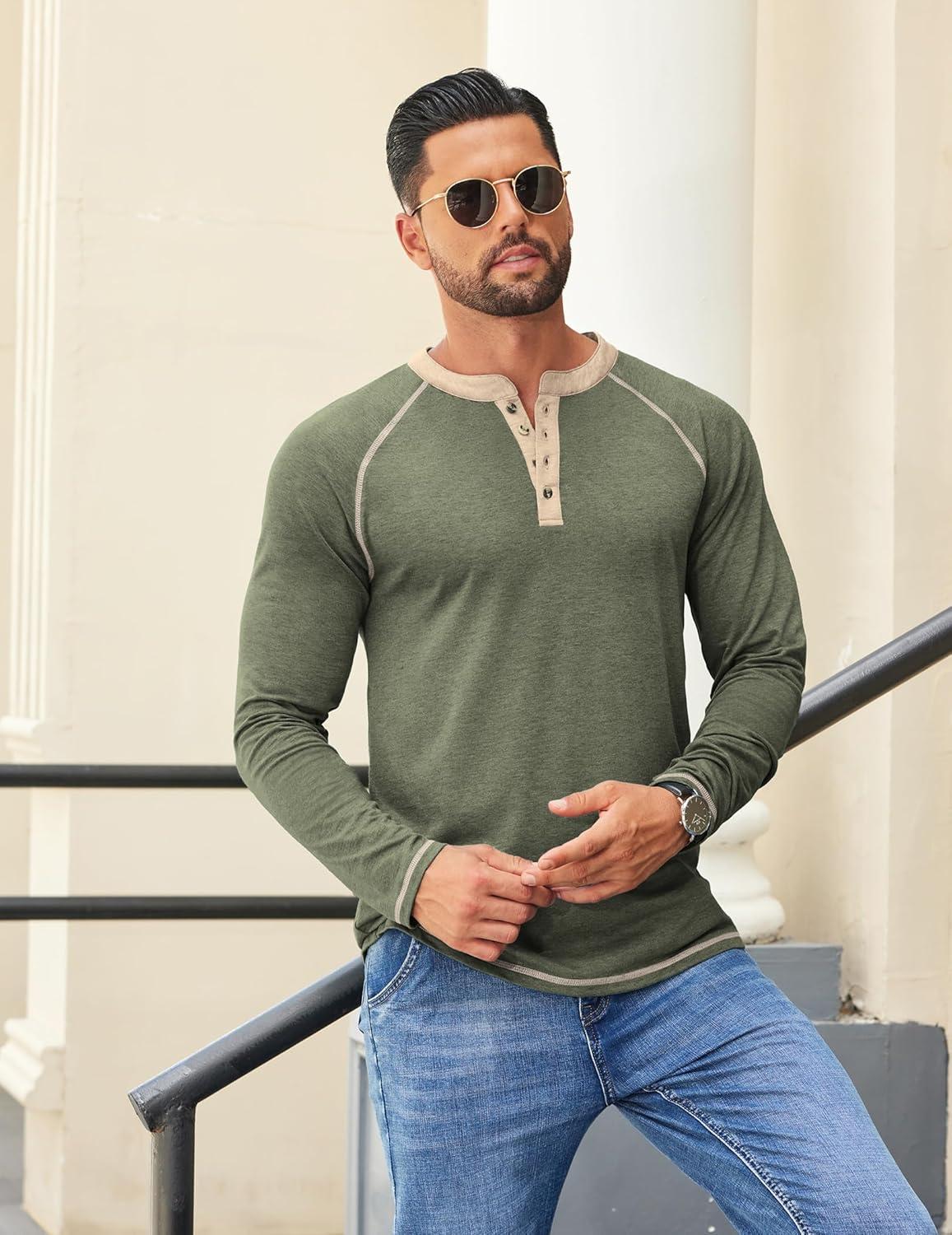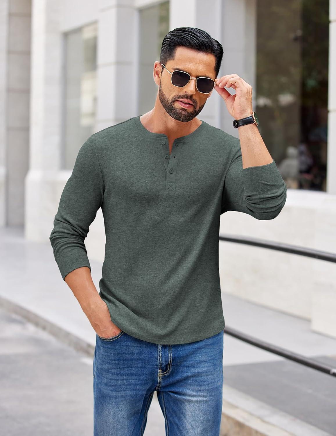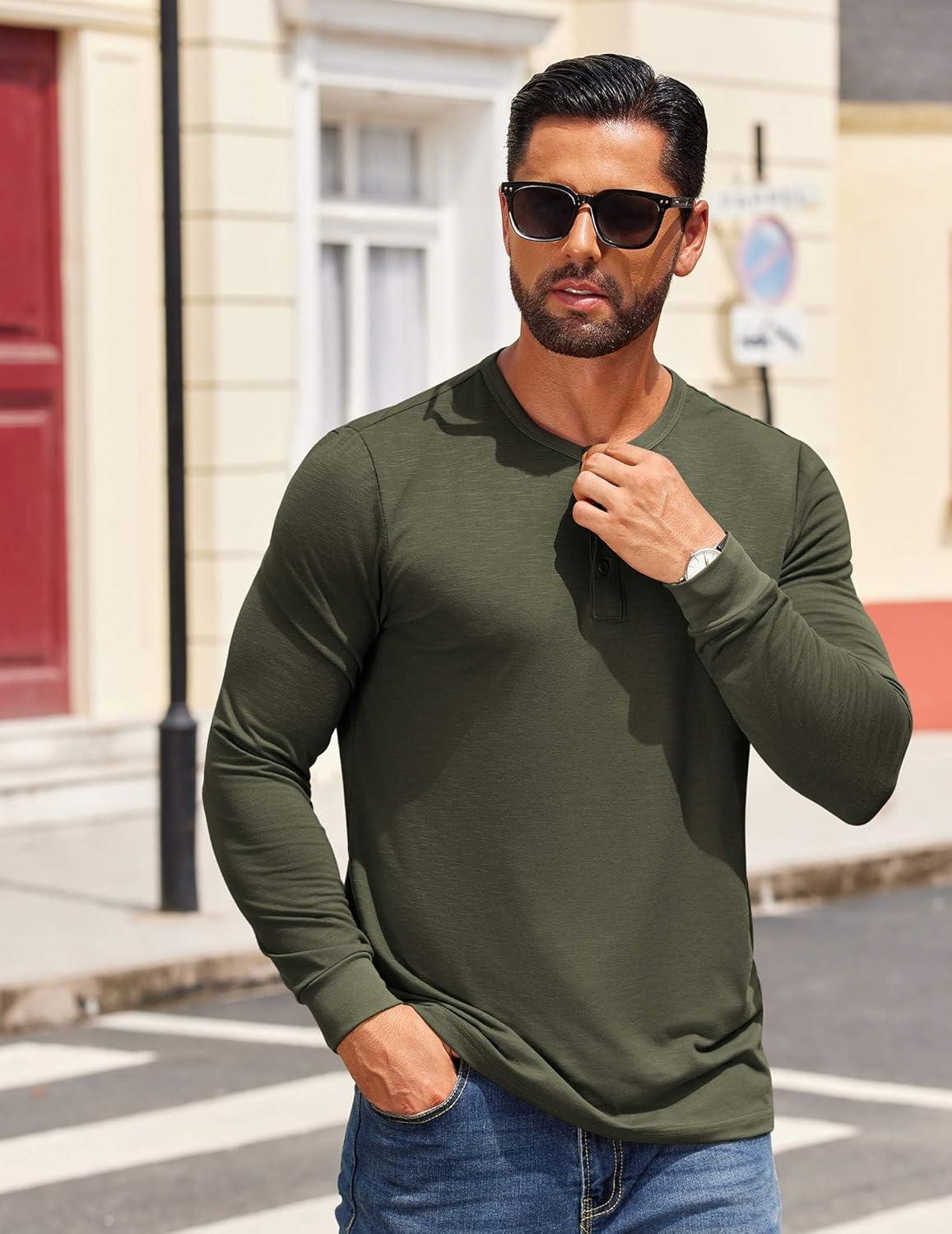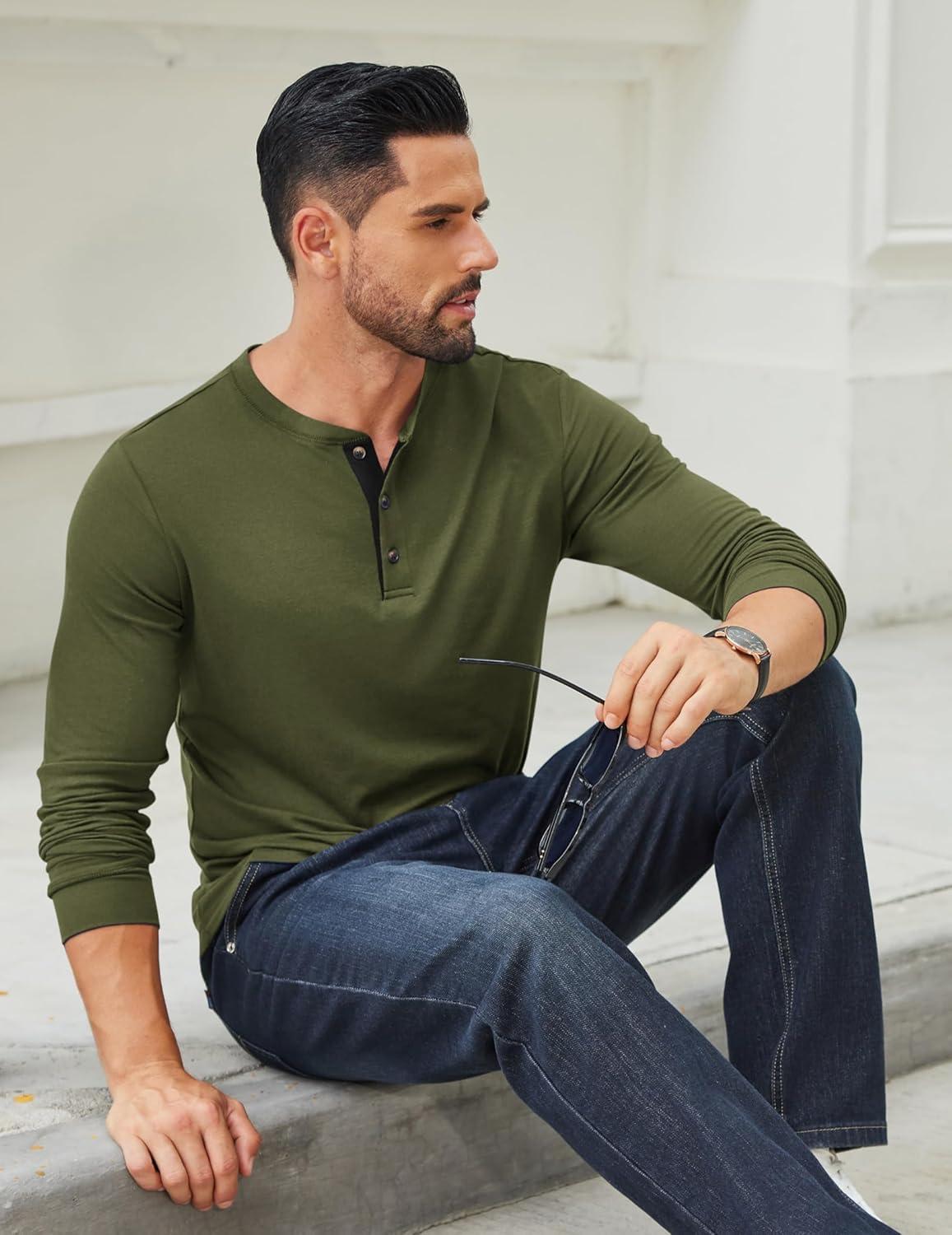 COOFANDY Men’s Henley Shirts Long Sleeve T-Shirt Lightweight Fashion Casual Pullover Tee Shirt(Army Green)