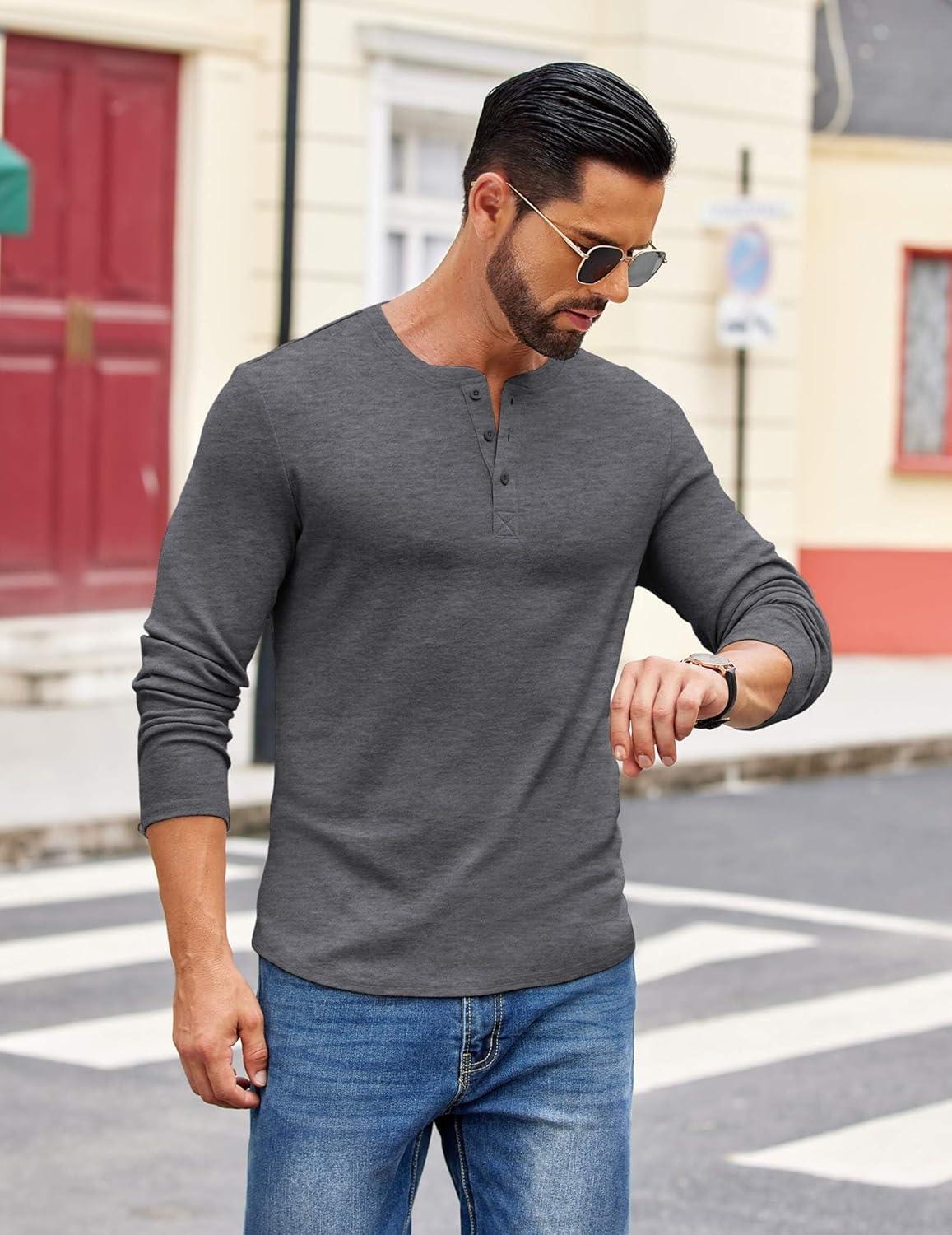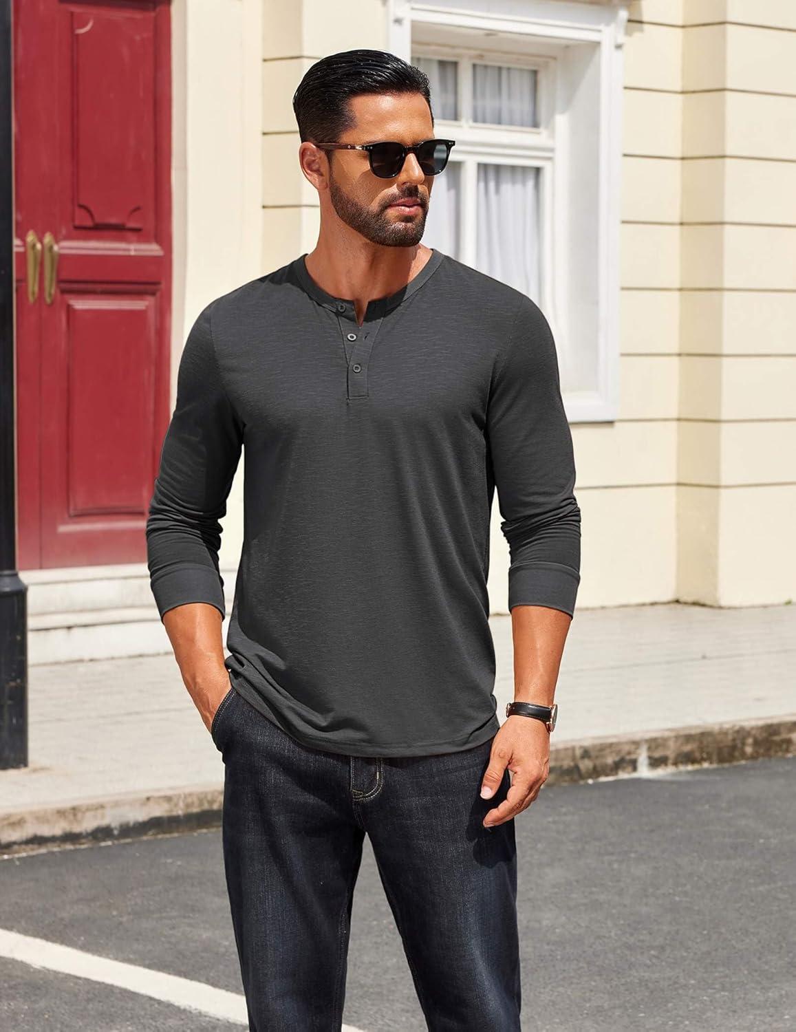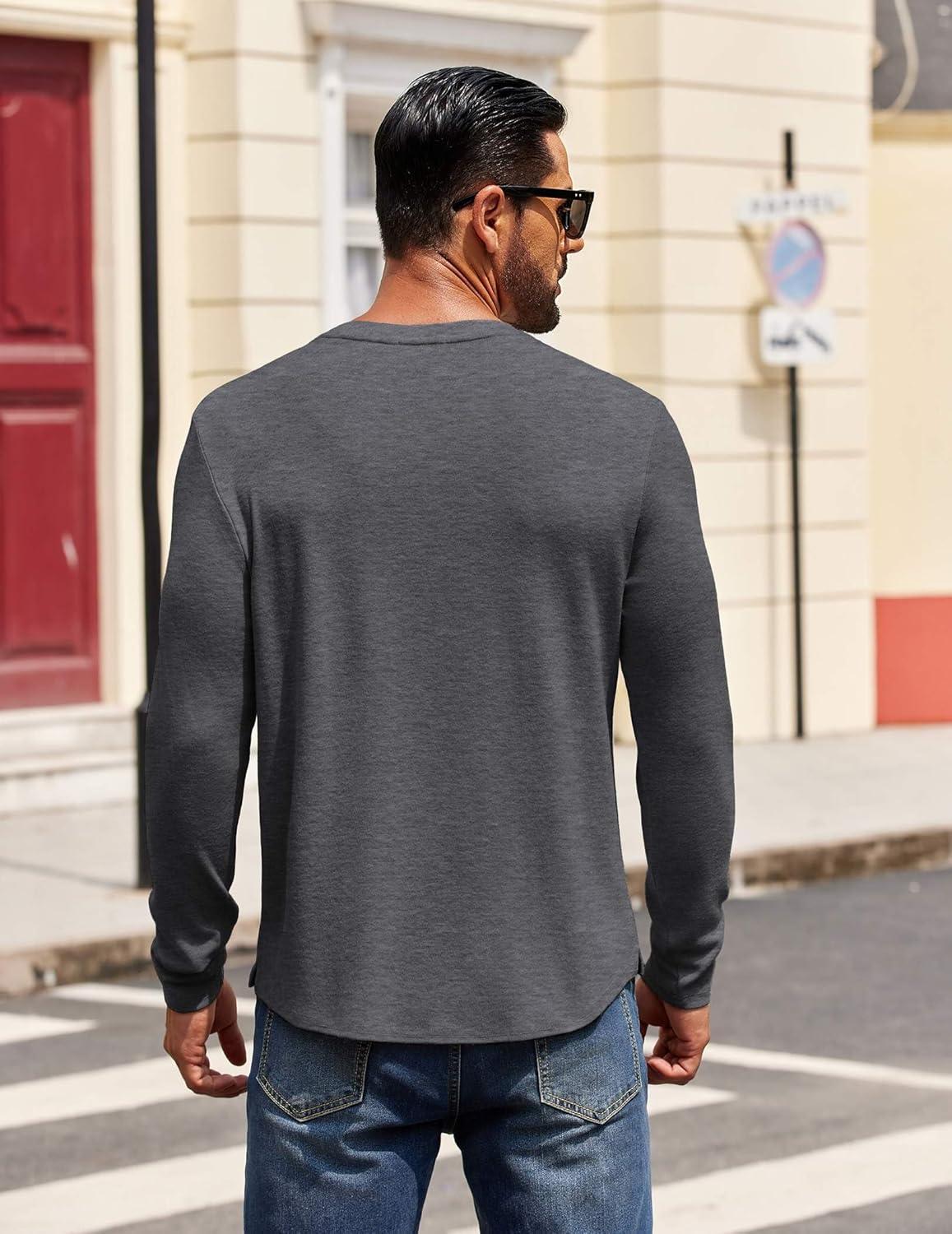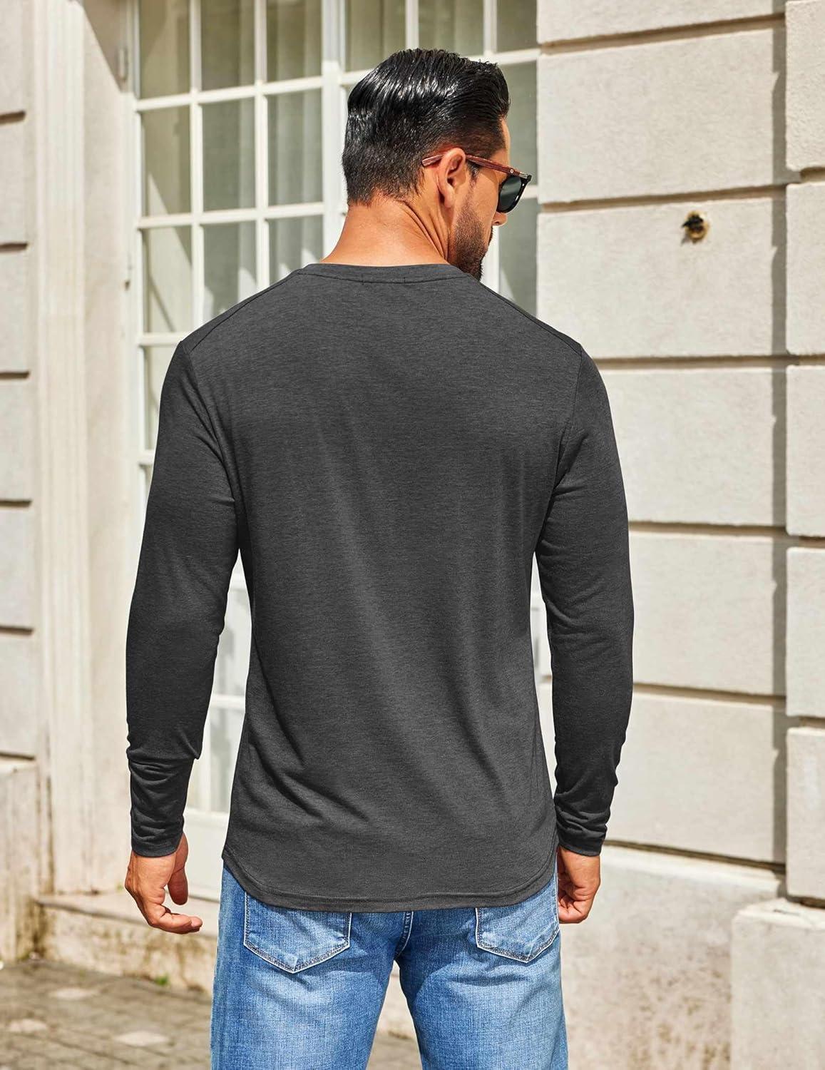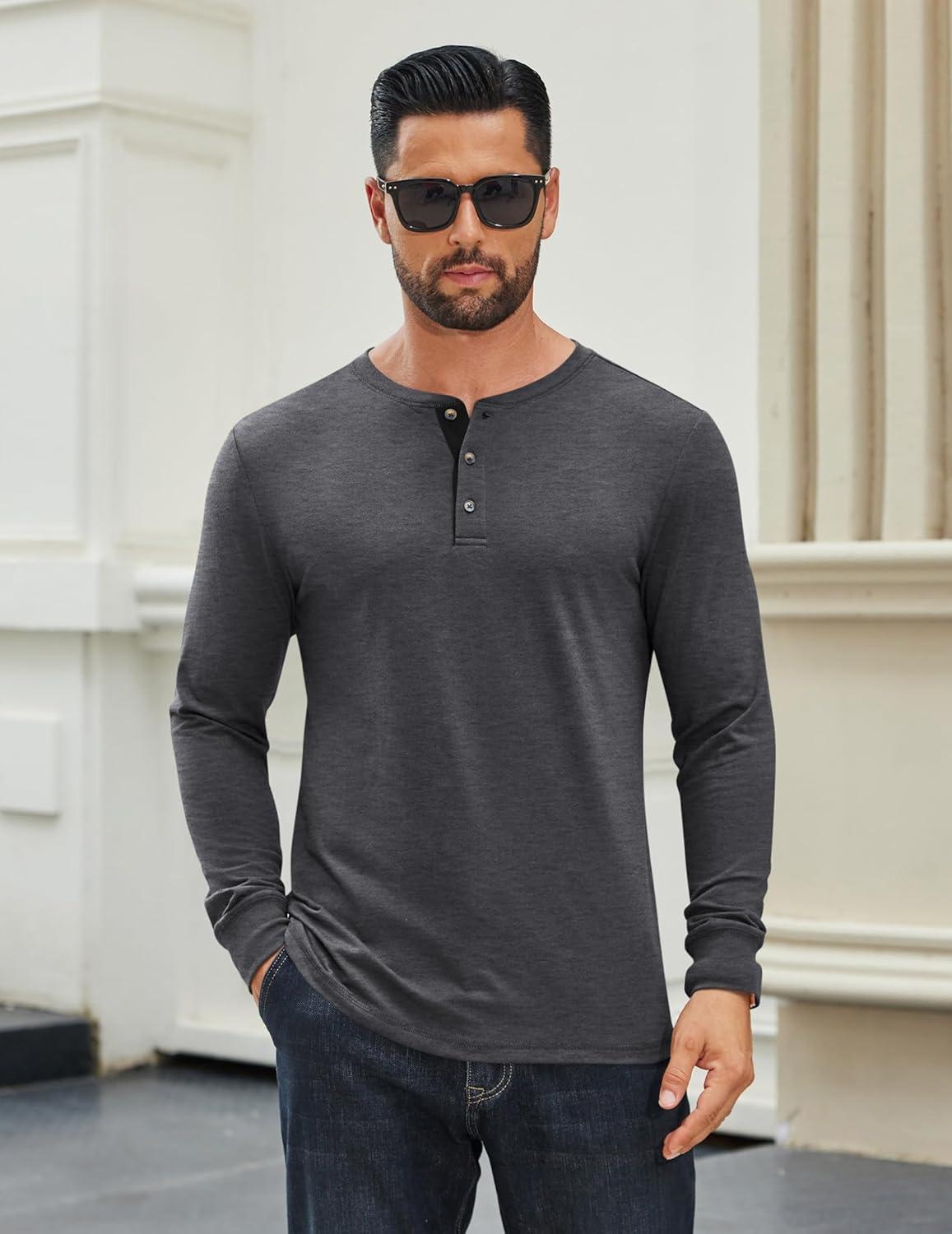 COOFANDY Men’s Henley Shirts Long Sleeve T-Shirt Lightweight Fashion Casual Pullover Tee Shirt(Dark Grey)