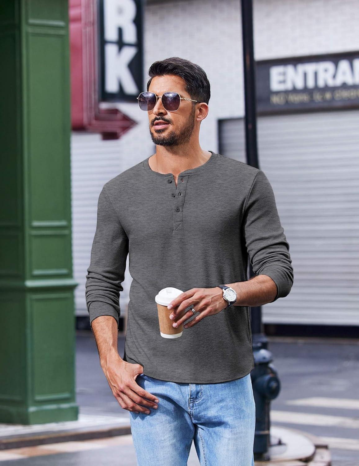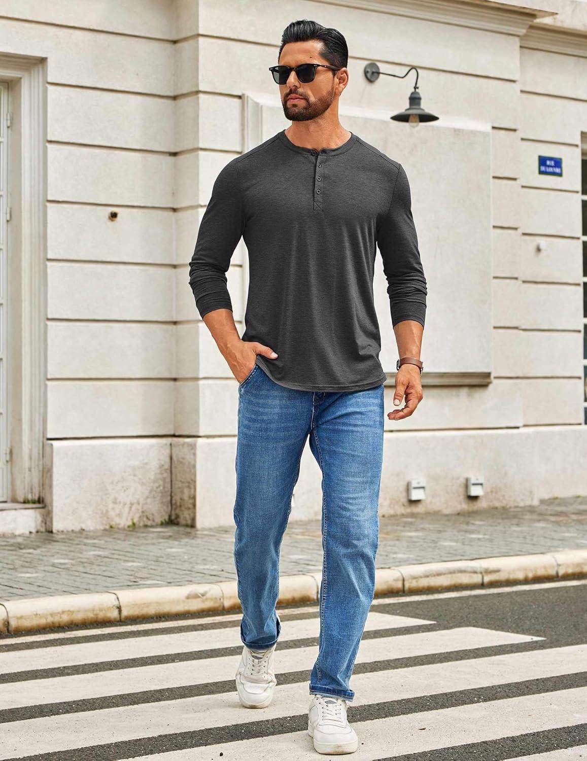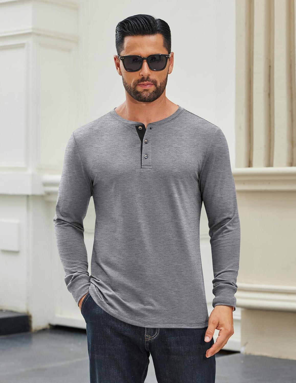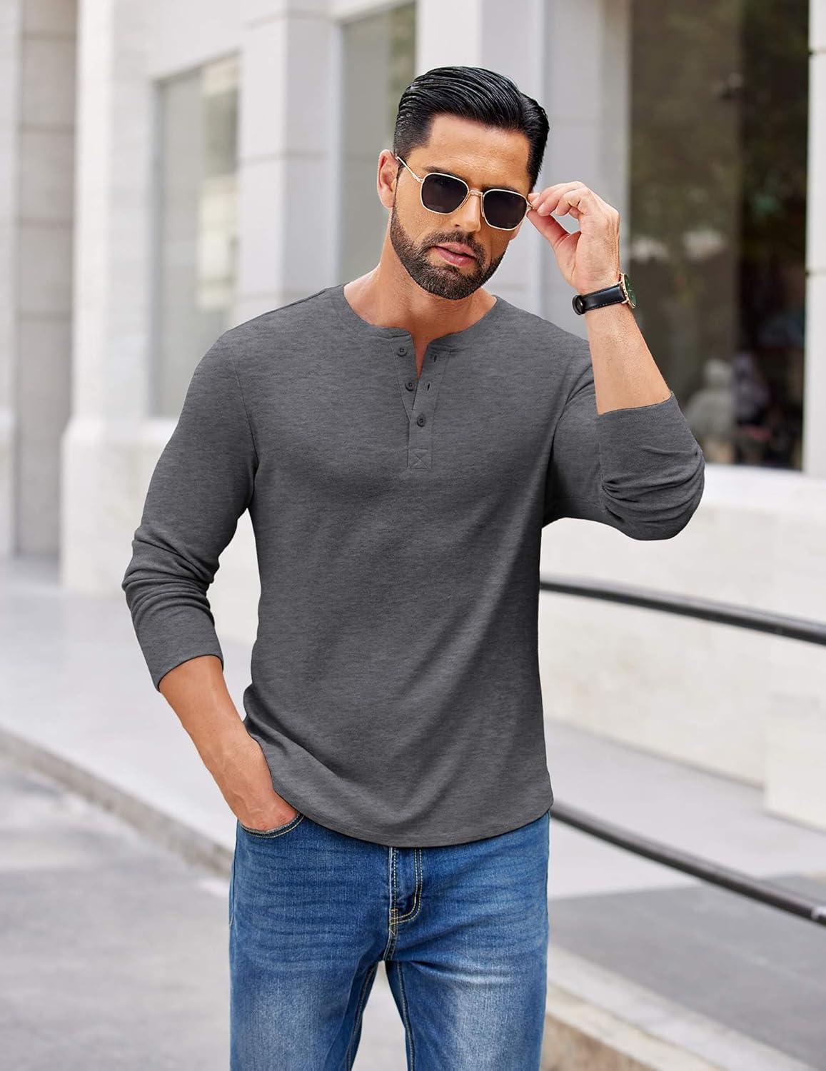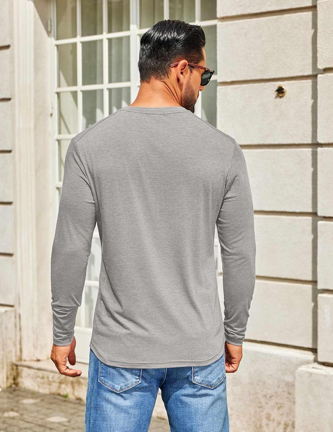 COOFANDY Men’s Henley Shirts Long Sleeve T-Shirt Lightweight Fashion Casual Pullover Tee Shirt(Dark Grey)
