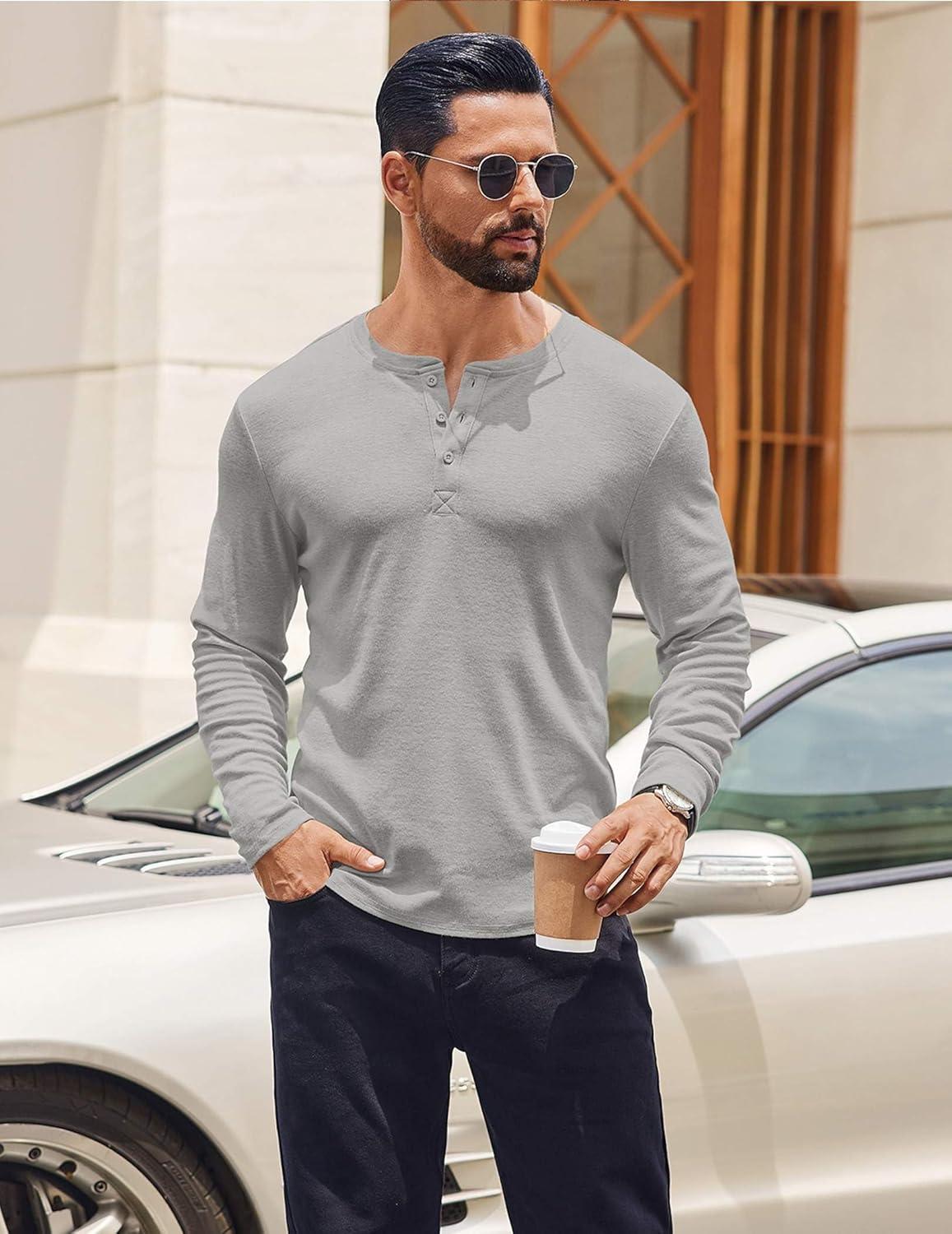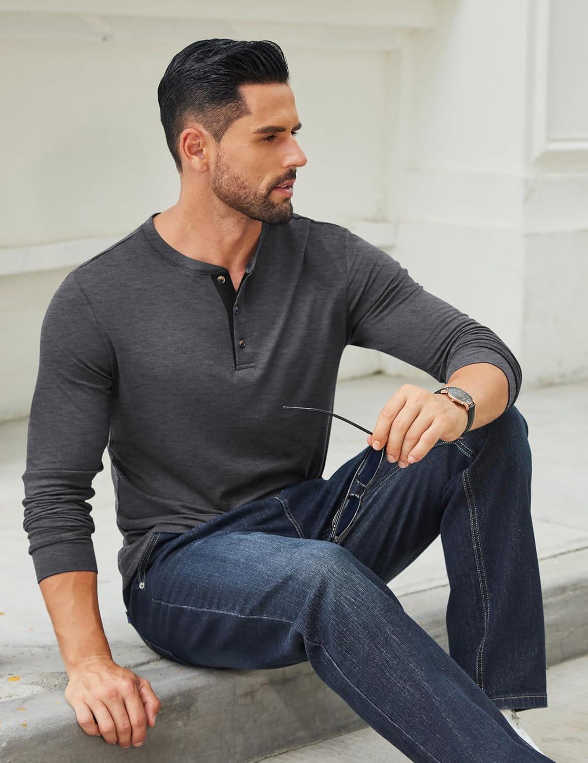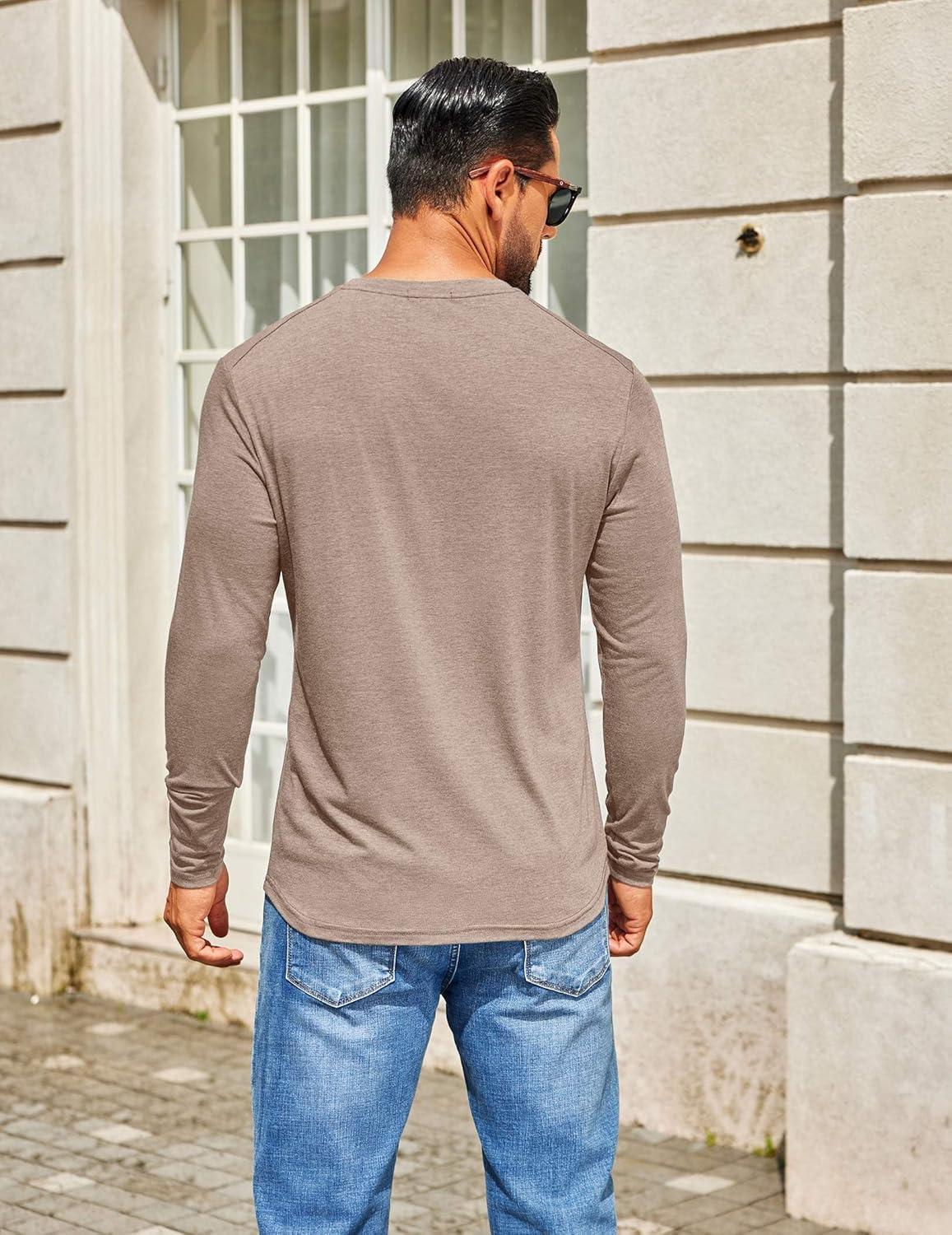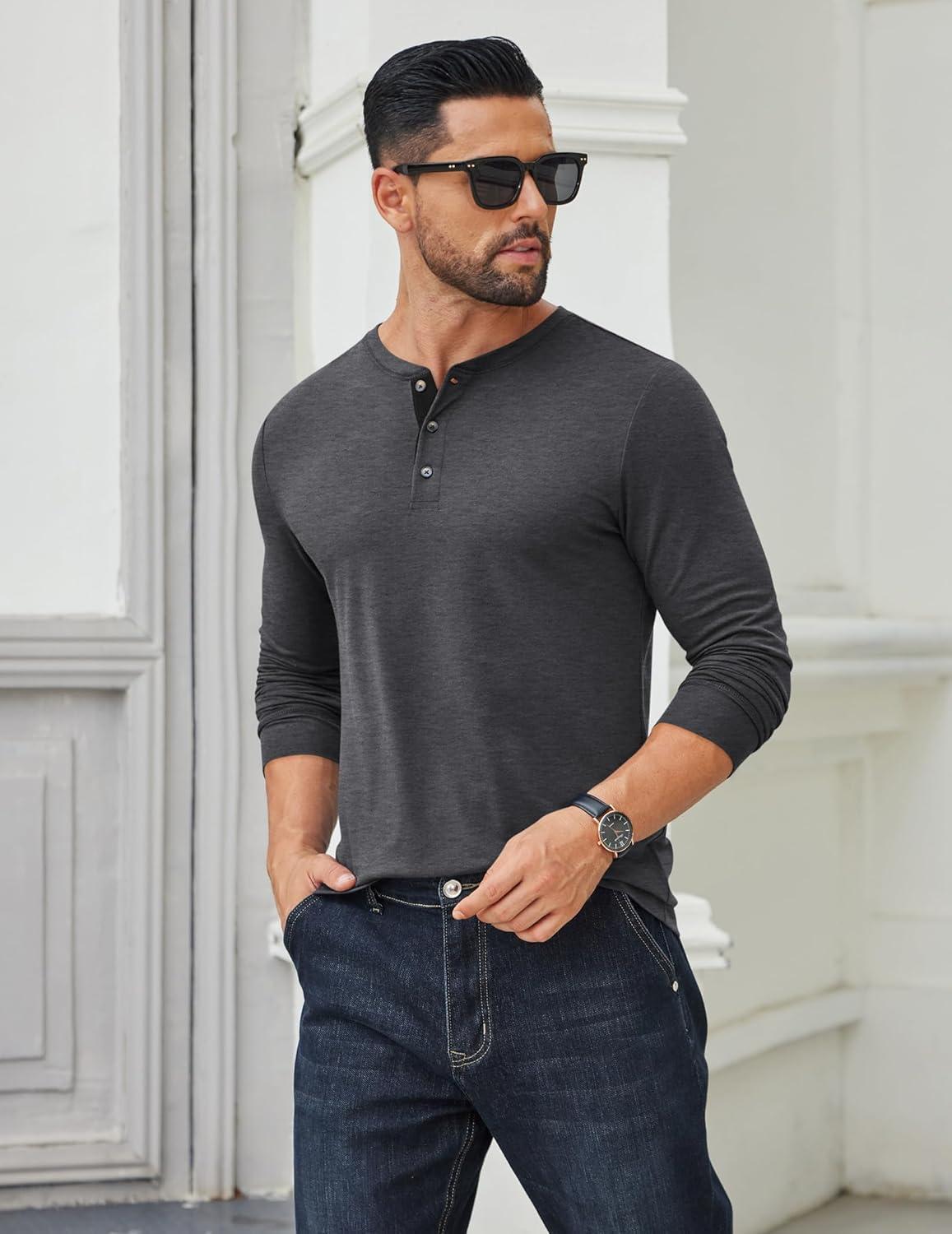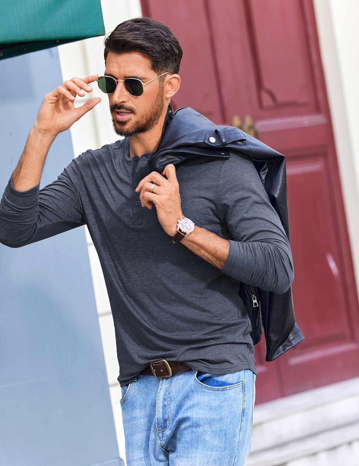 COOFANDY Men’s Henley Shirts Long Sleeve T-Shirt Lightweight Fashion Casual Pullover Tee Shirt(Dark Grey)