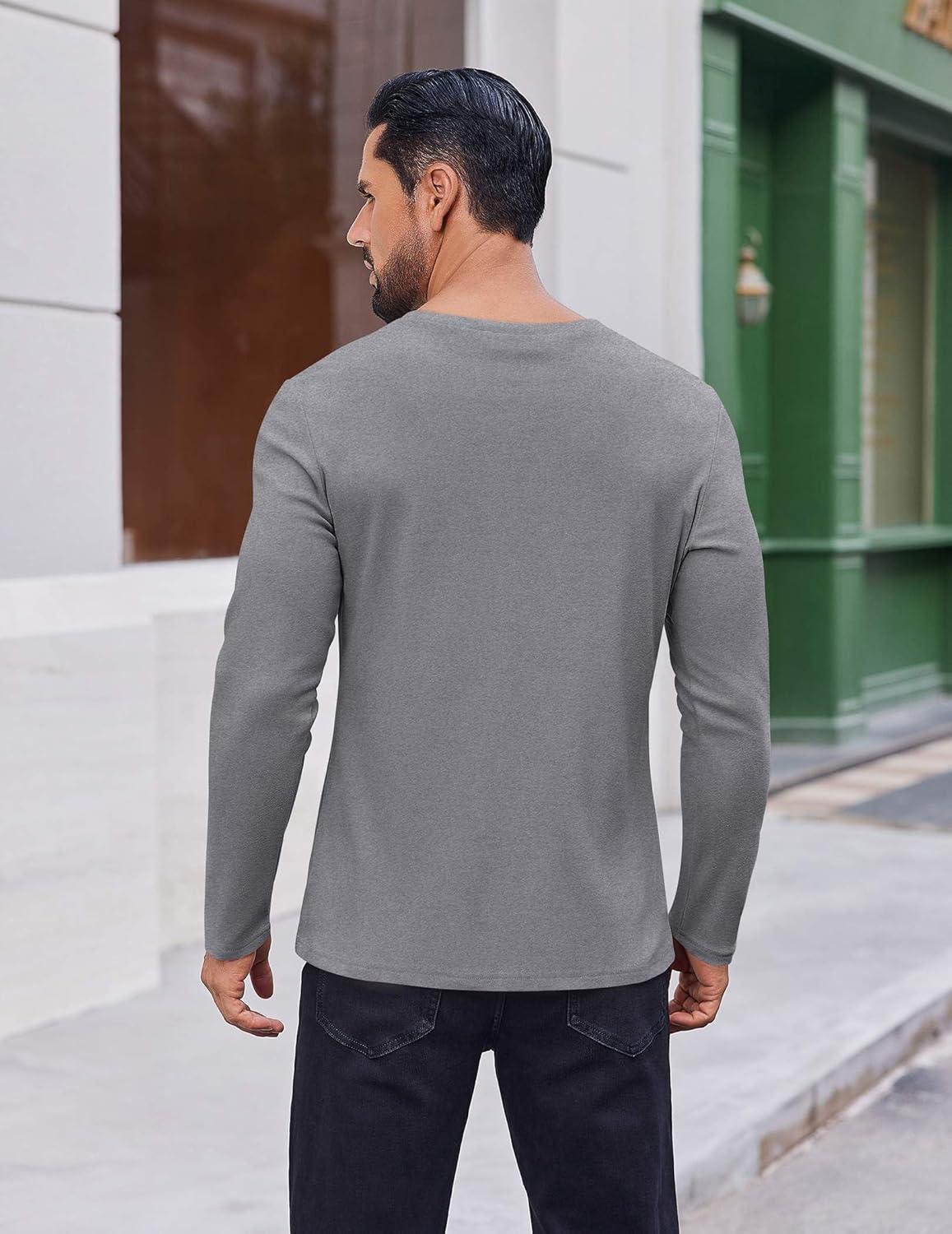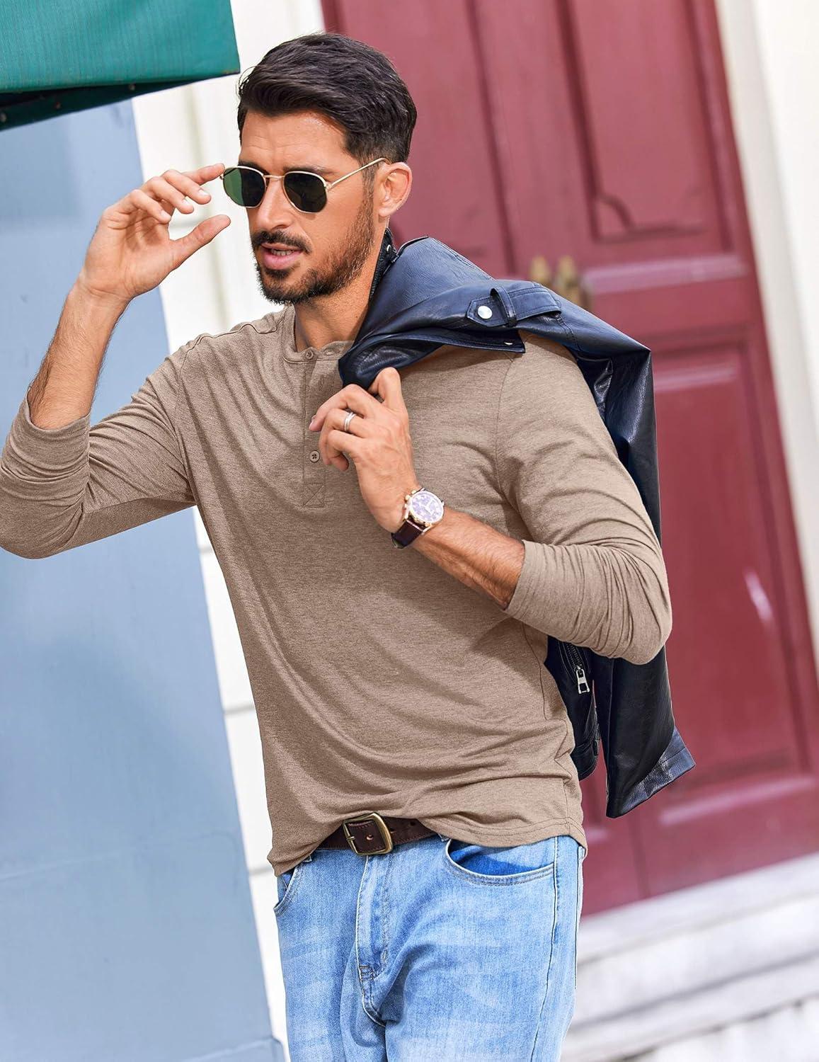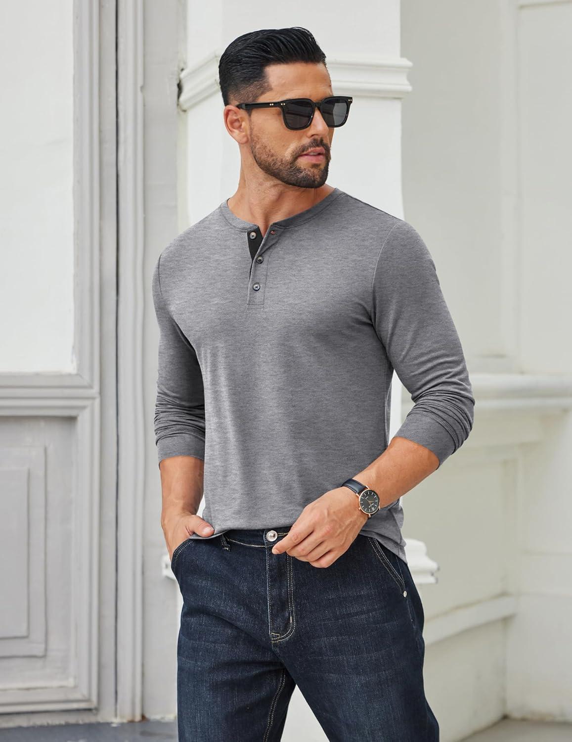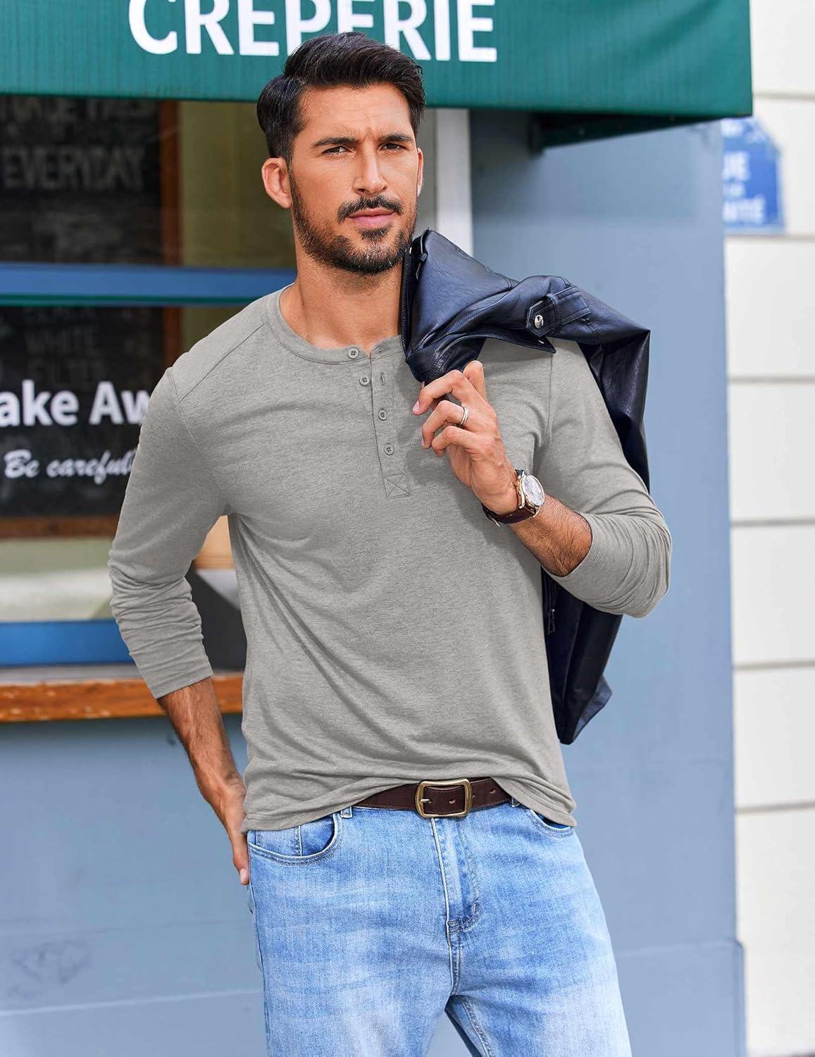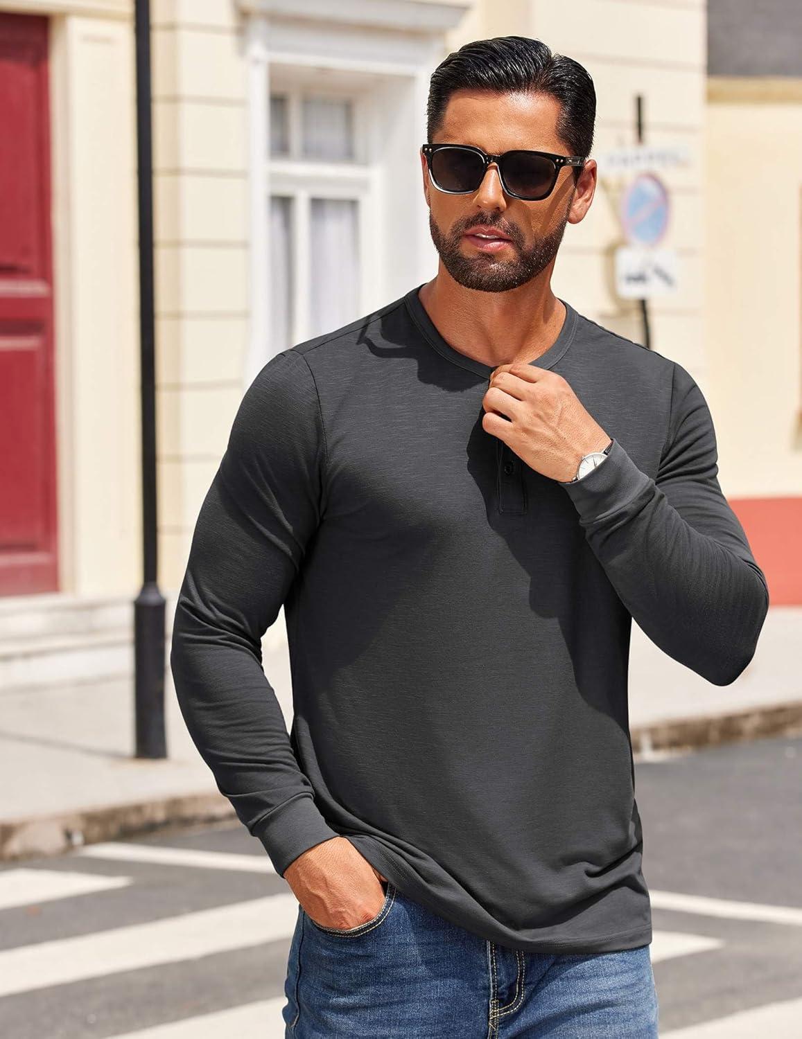 COOFANDY Men’s Henley Shirts Long Sleeve T-Shirt Lightweight Fashion Casual Pullover Tee Shirt(Dark Grey)