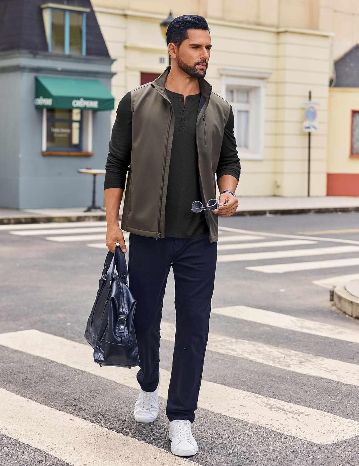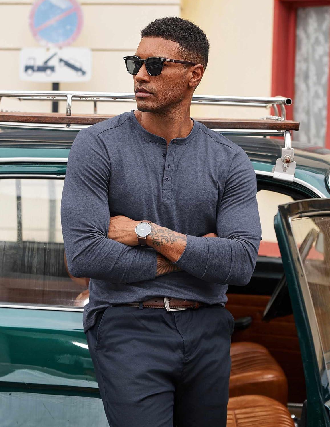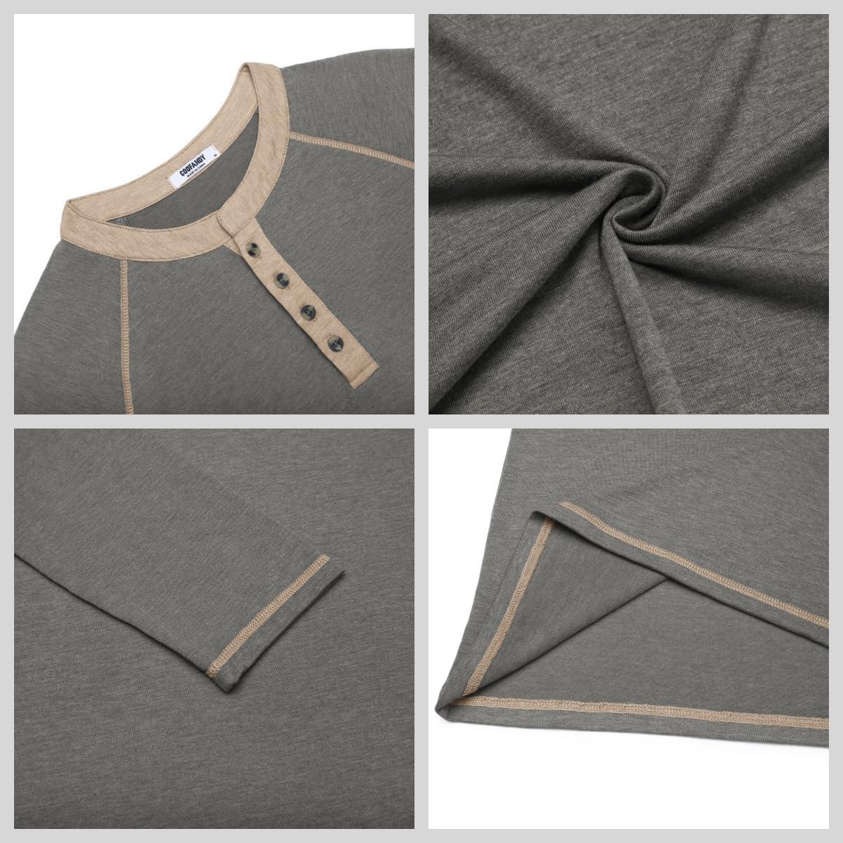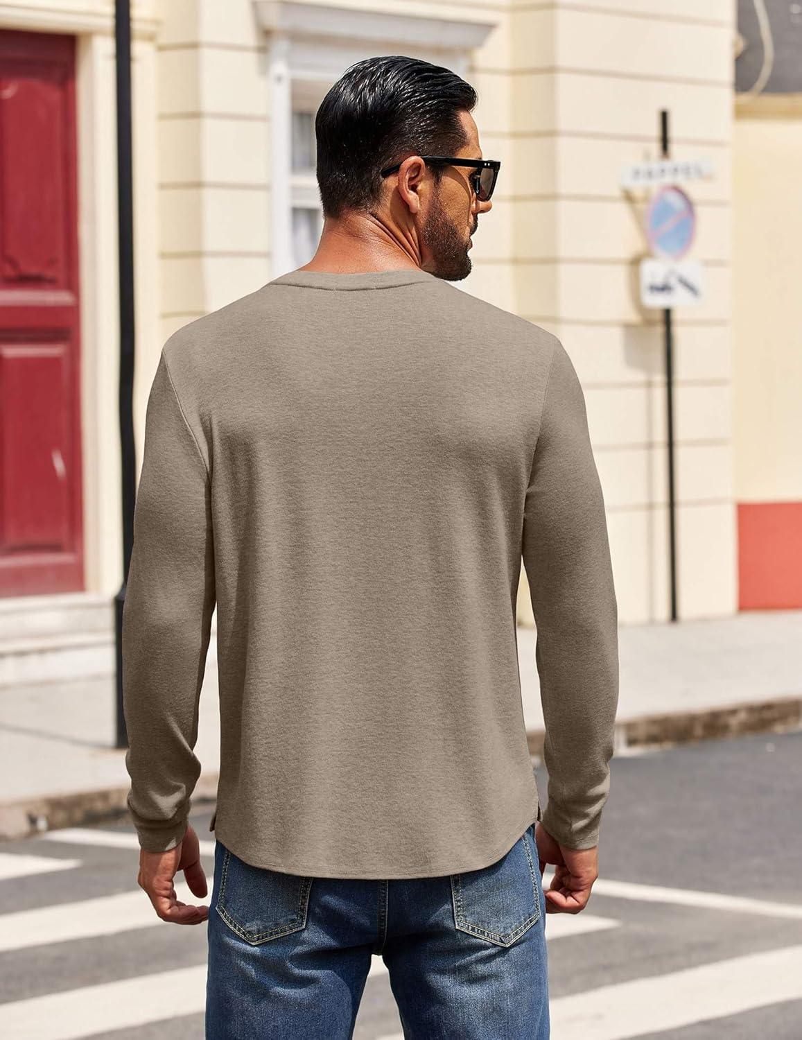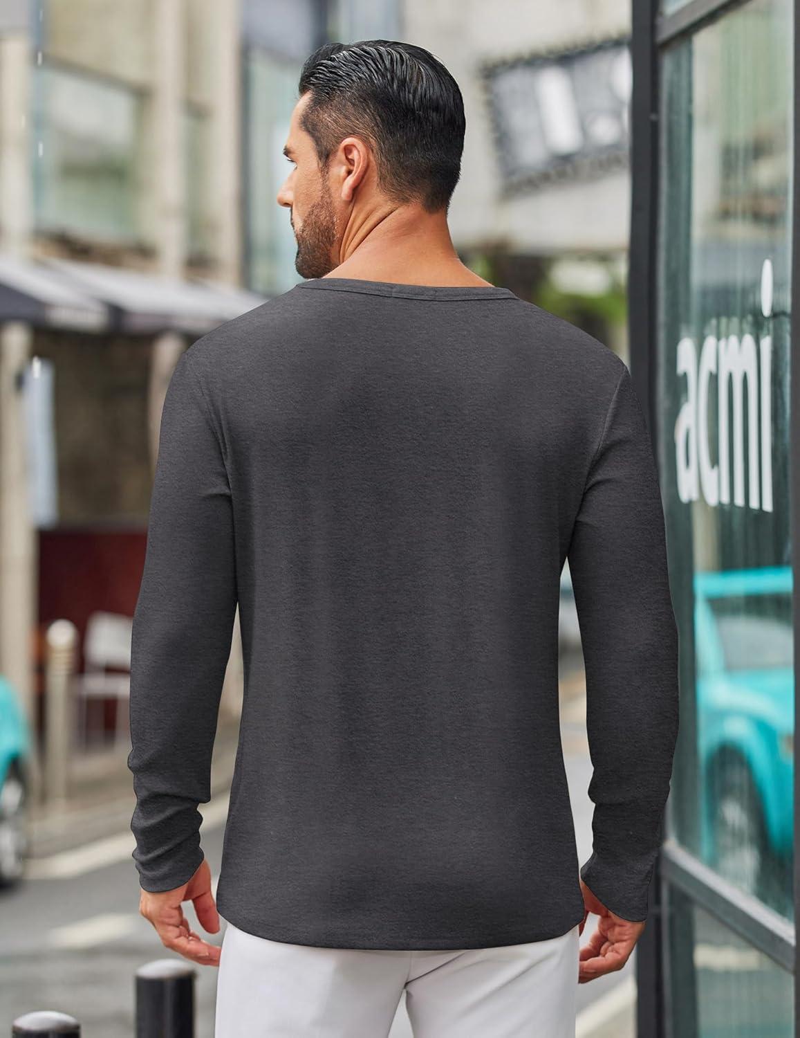 COOFANDY Men’s Henley Shirts Long Sleeve T-Shirt Lightweight Fashion Casual Pullover Tee Shirt(Dark Grey)