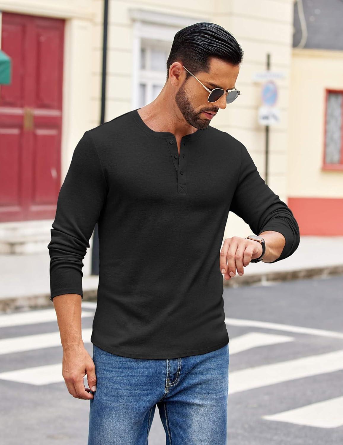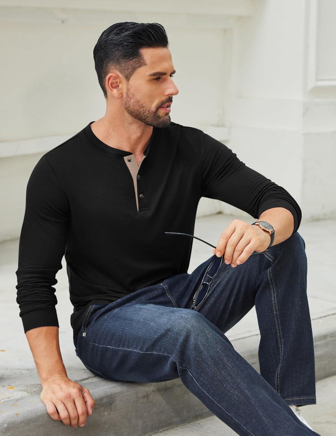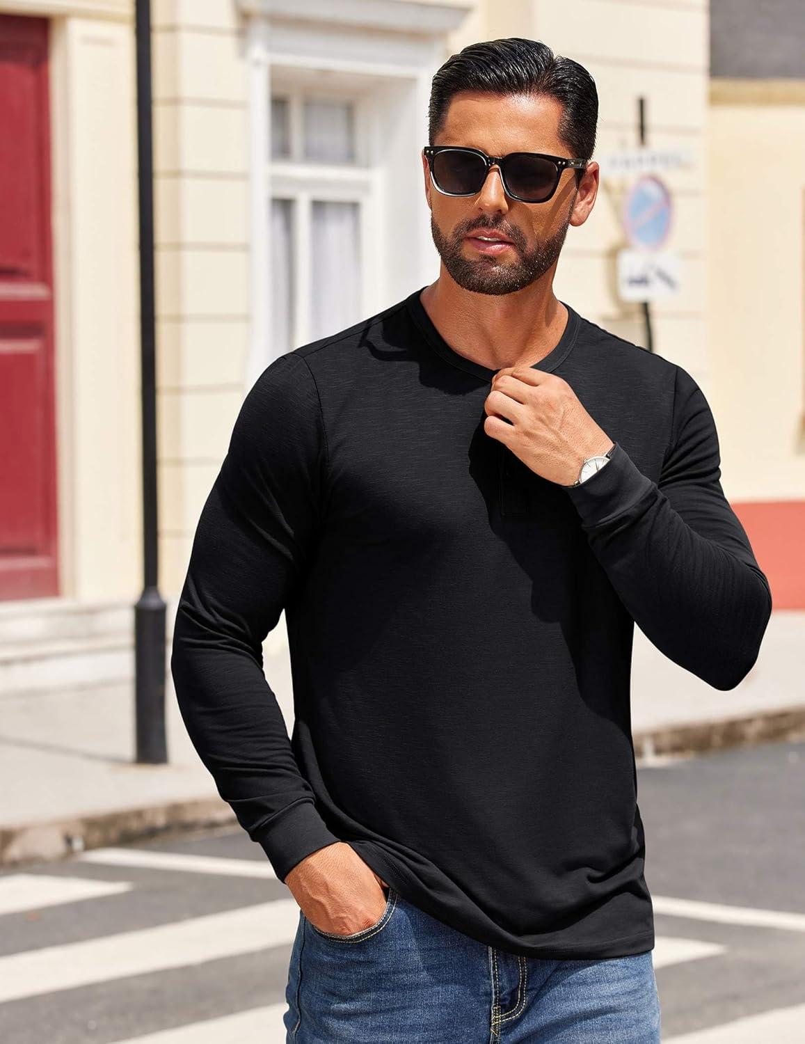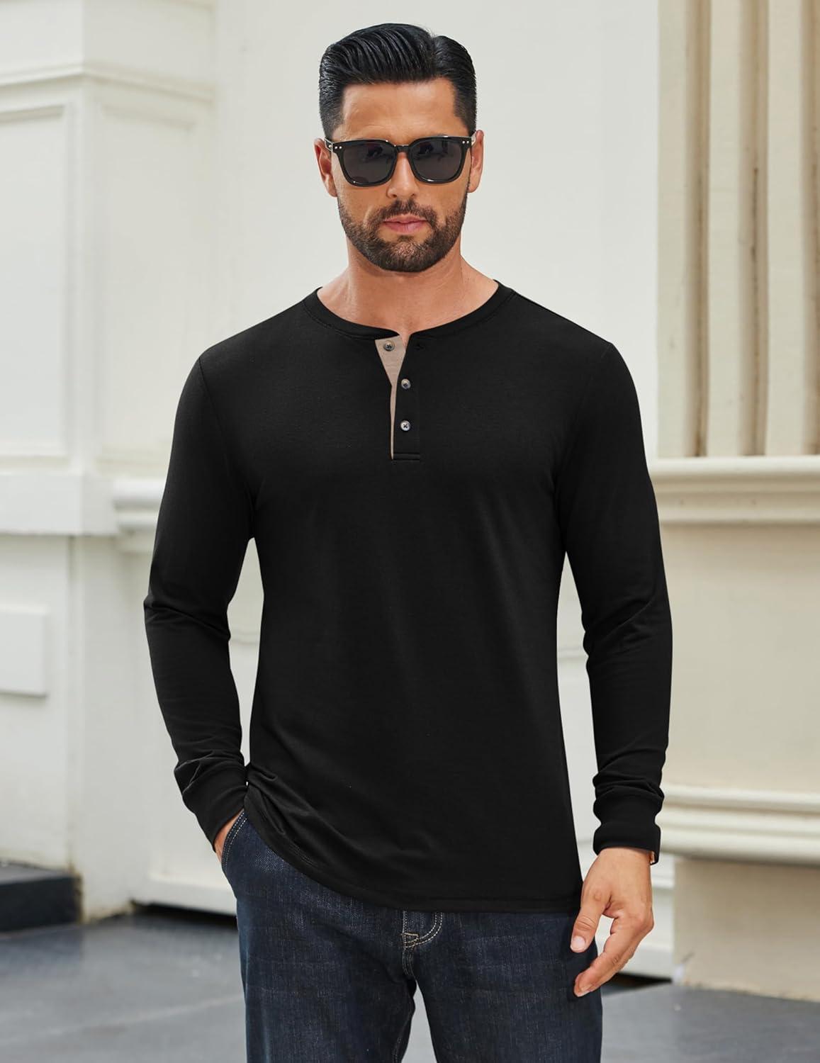 COOFANDY Men’s Henley Shirts Long Sleeve T-Shirt Lightweight Fashion Casual Pullover Tee Shirt(Black)