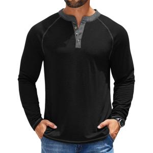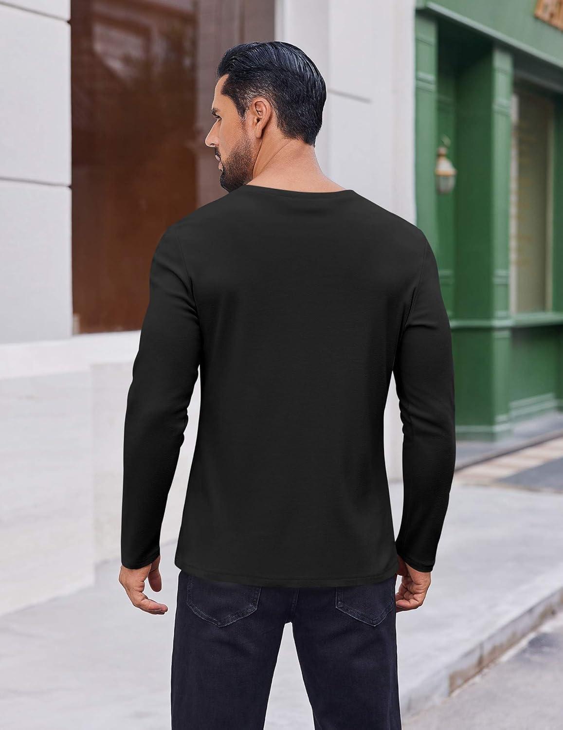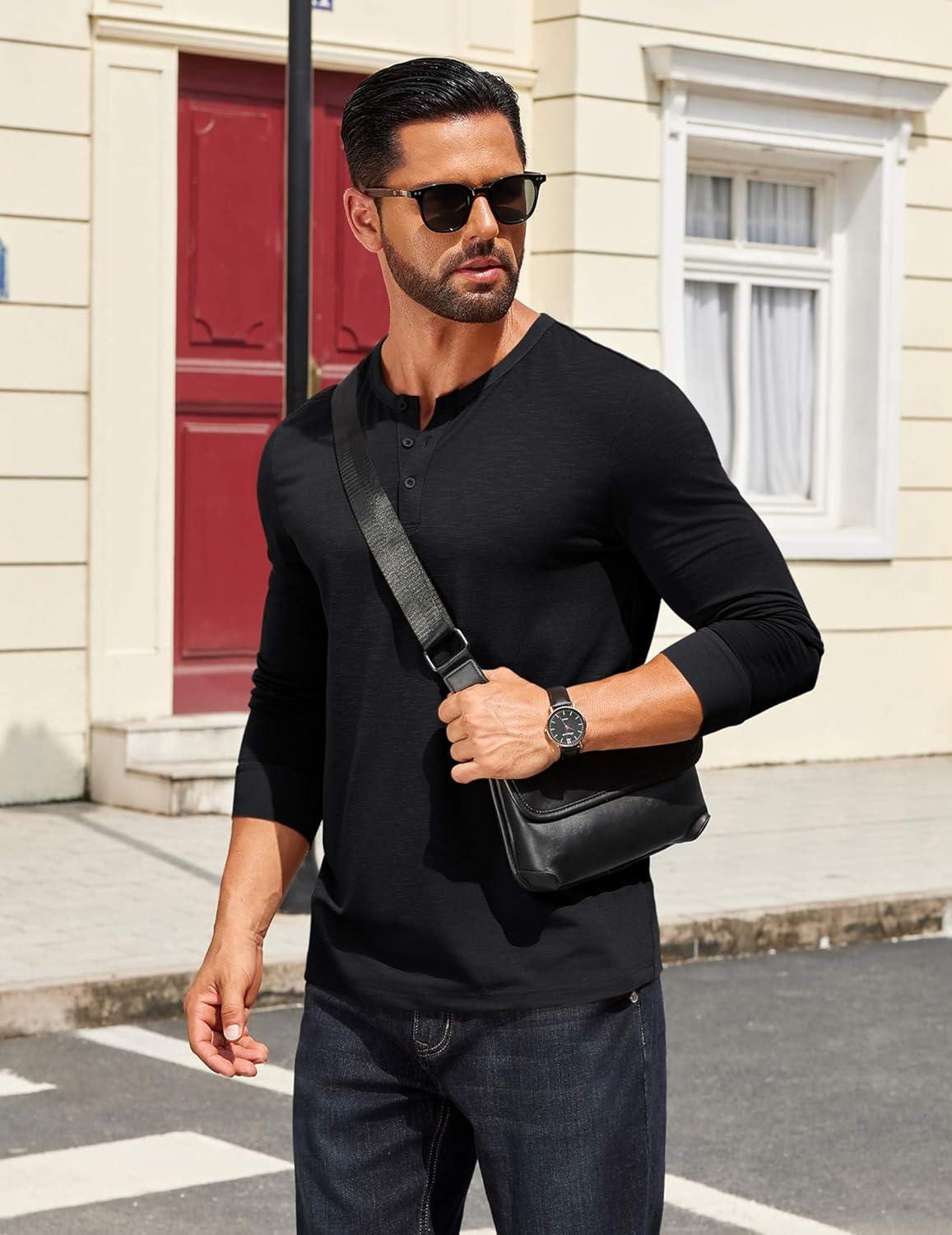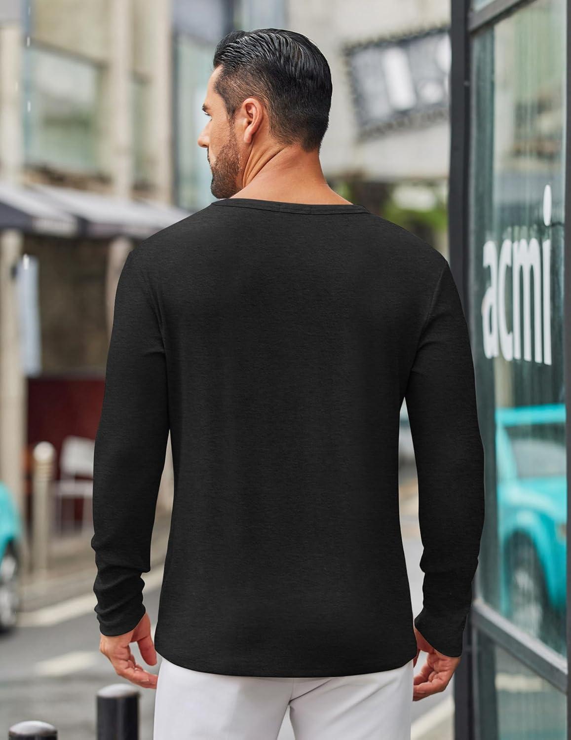 COOFANDY Men’s Henley Shirts Long Sleeve T-Shirt Lightweight Fashion Casual Pullover Tee Shirt(Black)