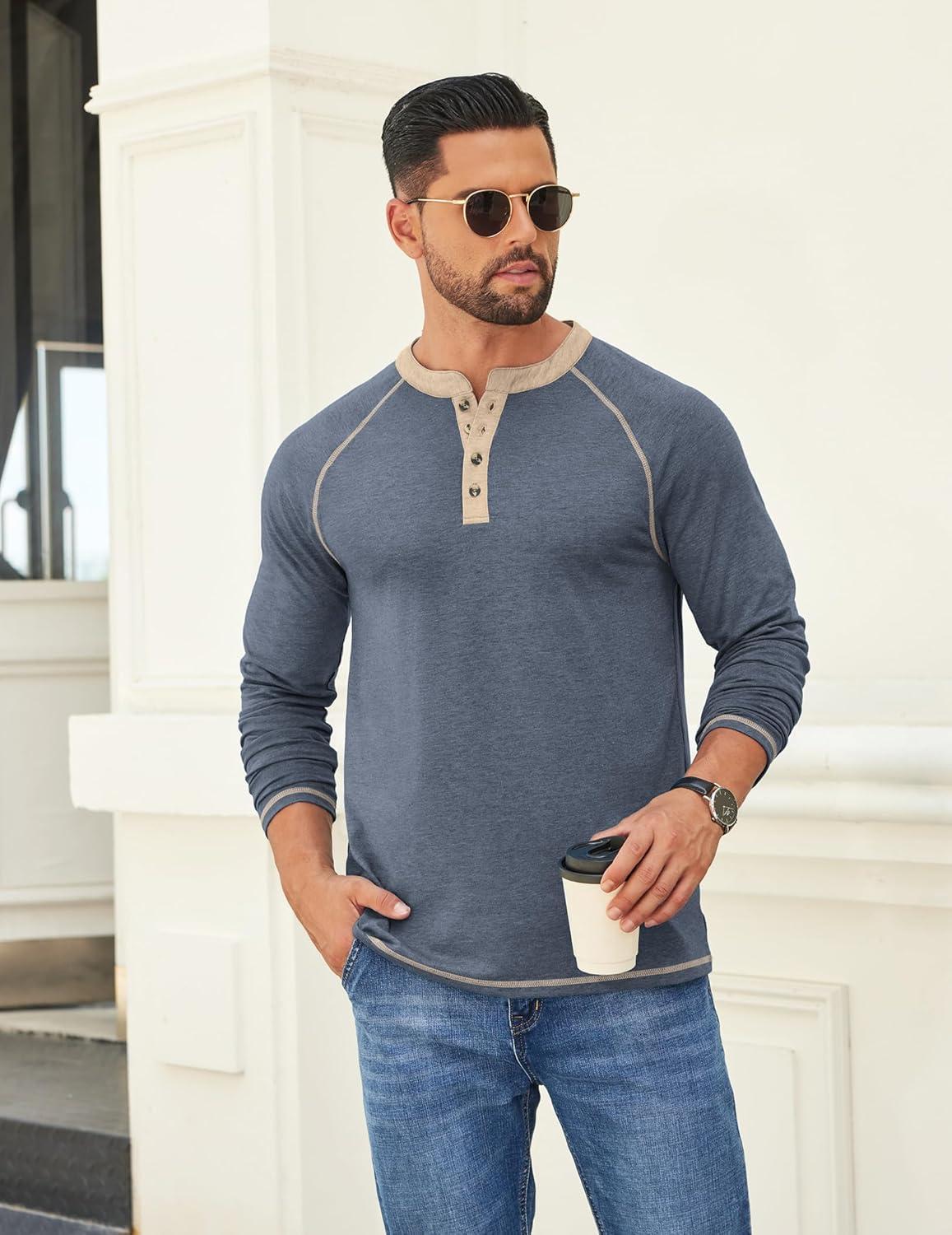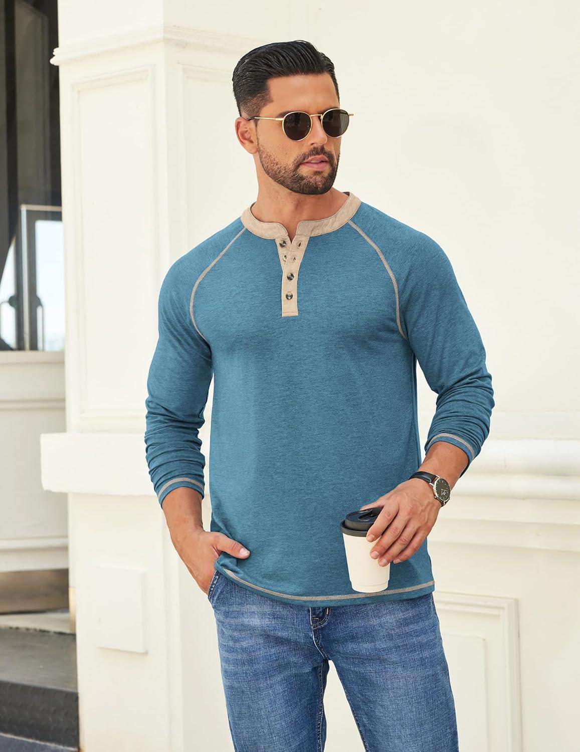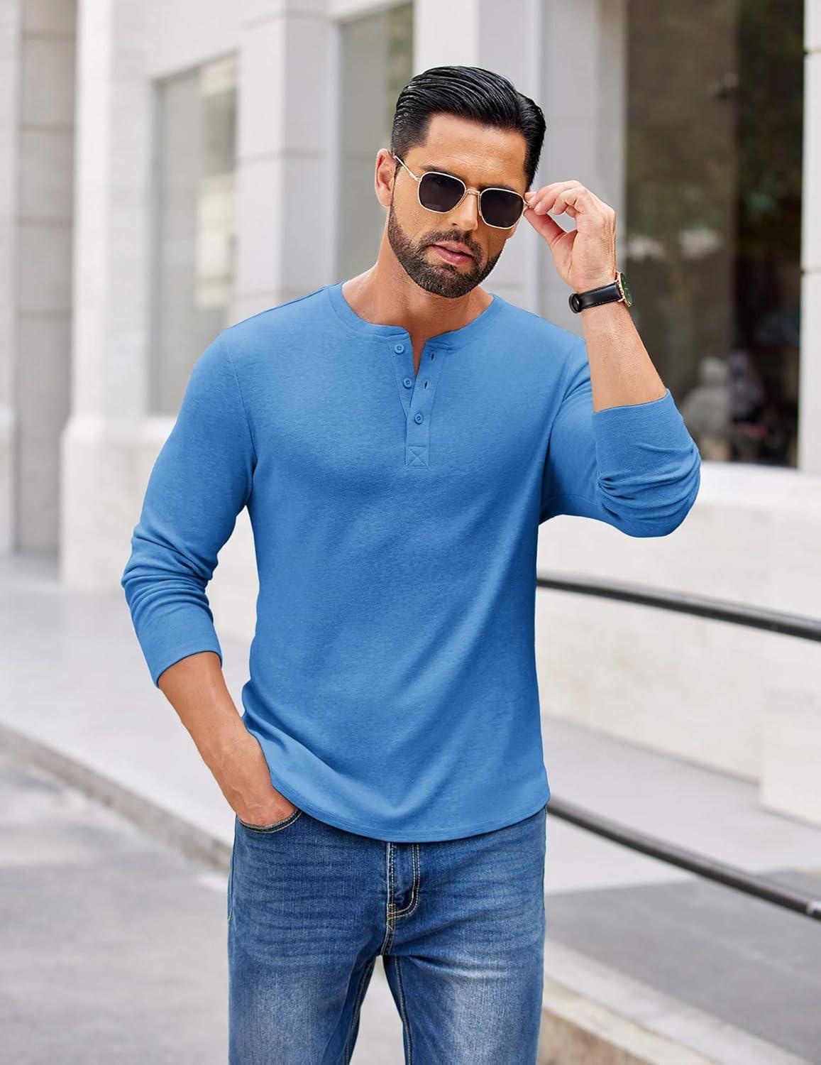 COOFANDY Men’s Henley Shirts Long Sleeve T-Shirt Lightweight Fashion Casual Pullover Tee Shirt(Blue)