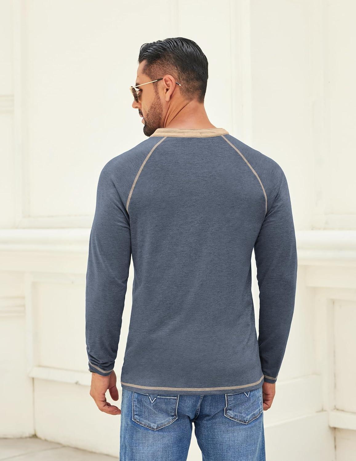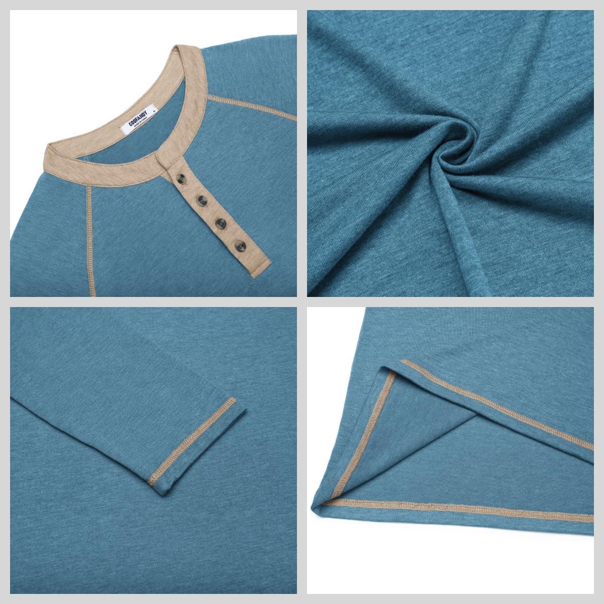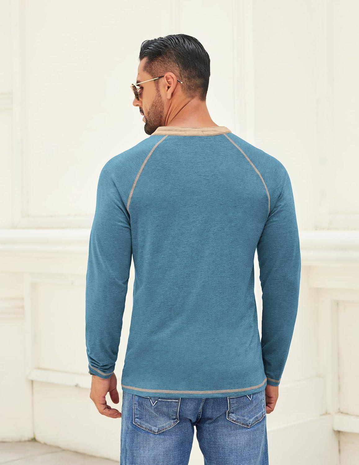 COOFANDY Men’s Henley Shirts Long Sleeve T-Shirt Lightweight Fashion Casual Pullover Tee Shirt(Blue)