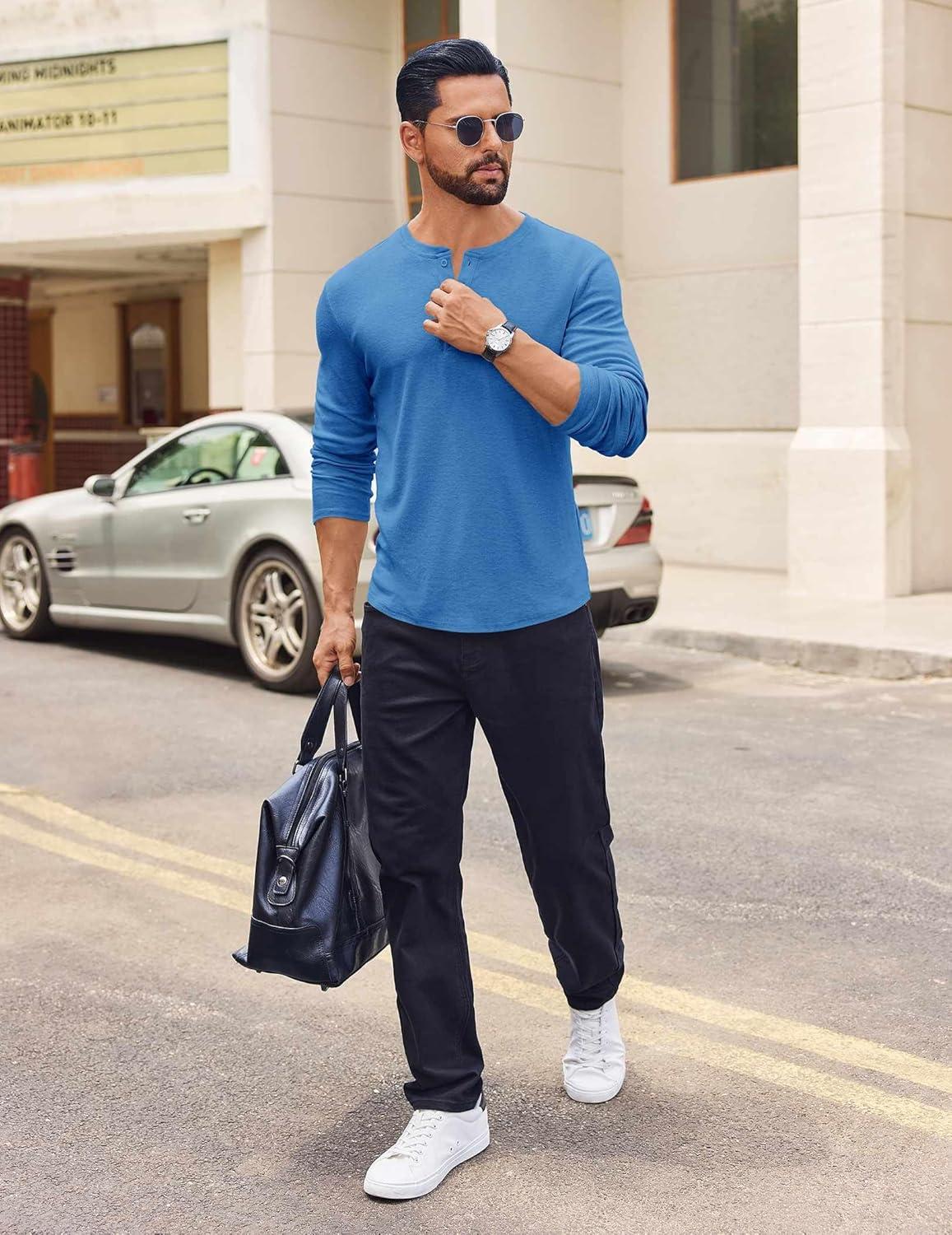COOFANDY Men’s Henley Shirts Long Sleeve T-Shirt Lightweight Fashion Casual Pullover Tee Shirt(Royal Blue)
