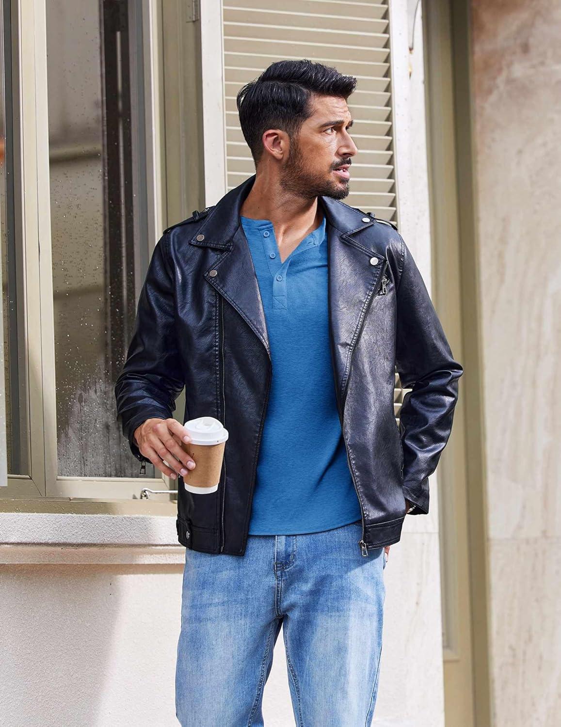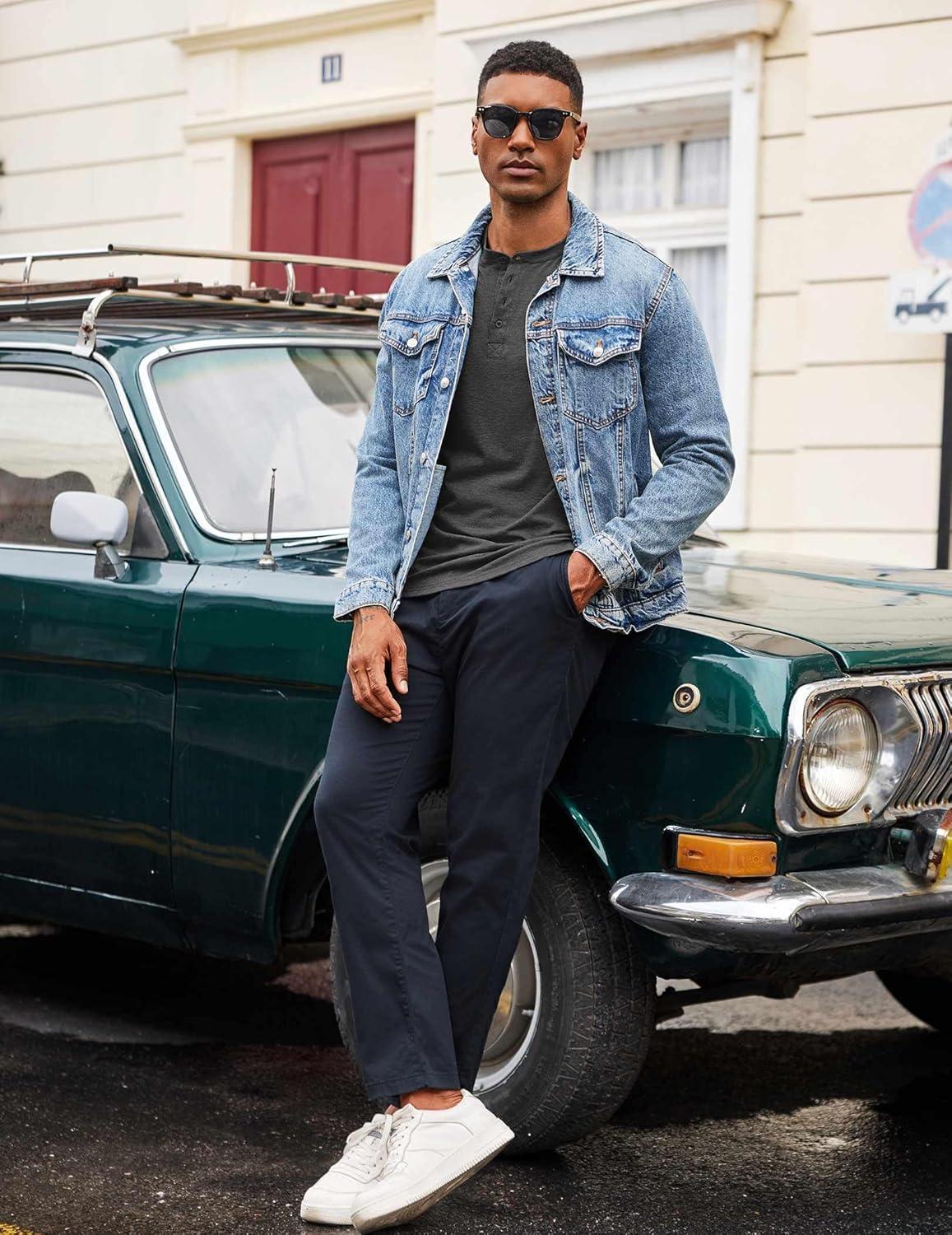 COOFANDY Mens Henley Shirts Long Sleeve Casual Pullover Shirt Fashion Button T-Shirt(Denim)