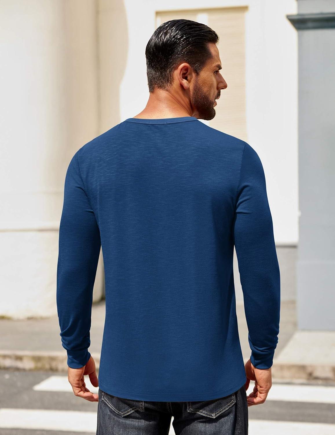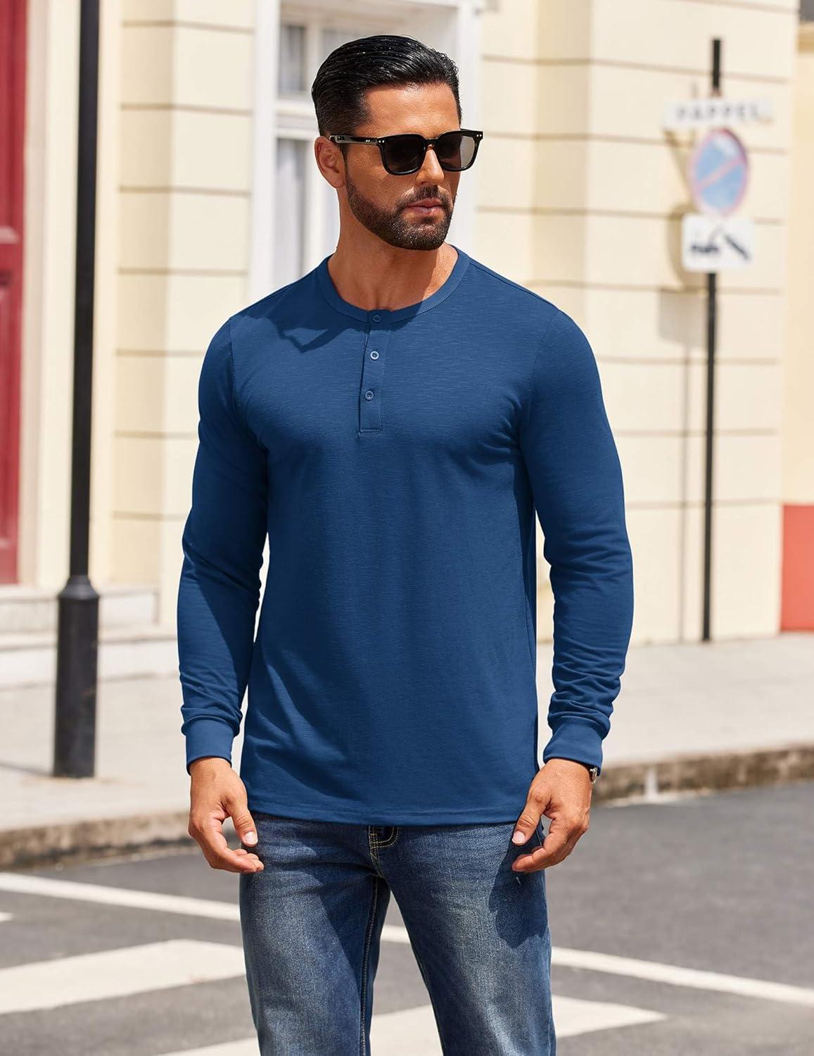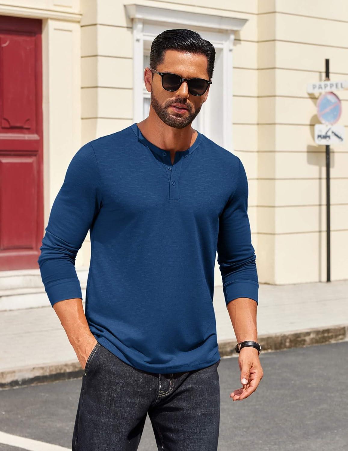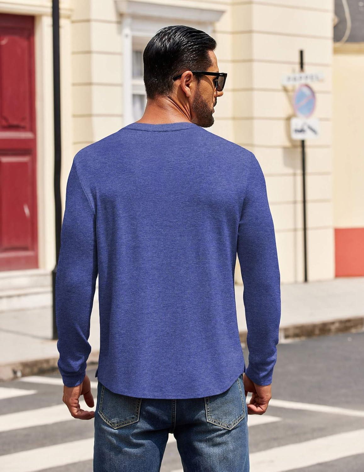 COOFANDY Men’s Long Sleeve Henley Shirts Cotton T-Shirts Casual Pullover Shirt Soft Stretch Basic Tees Fall Tops(Blue)