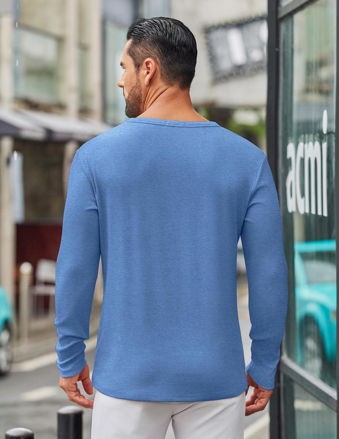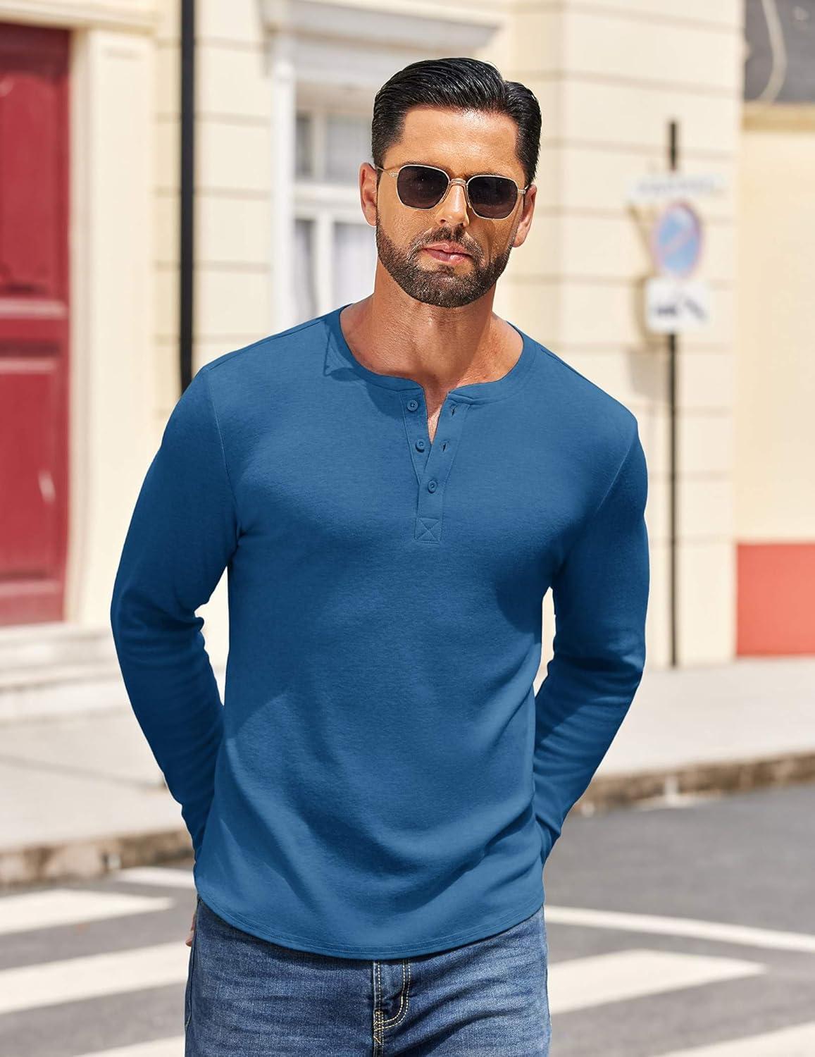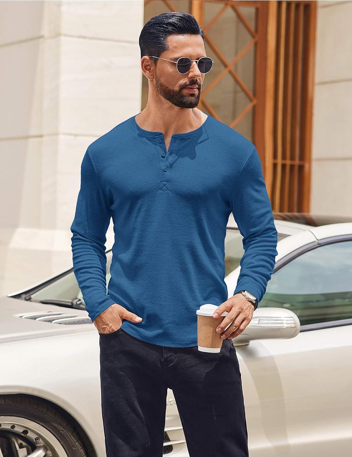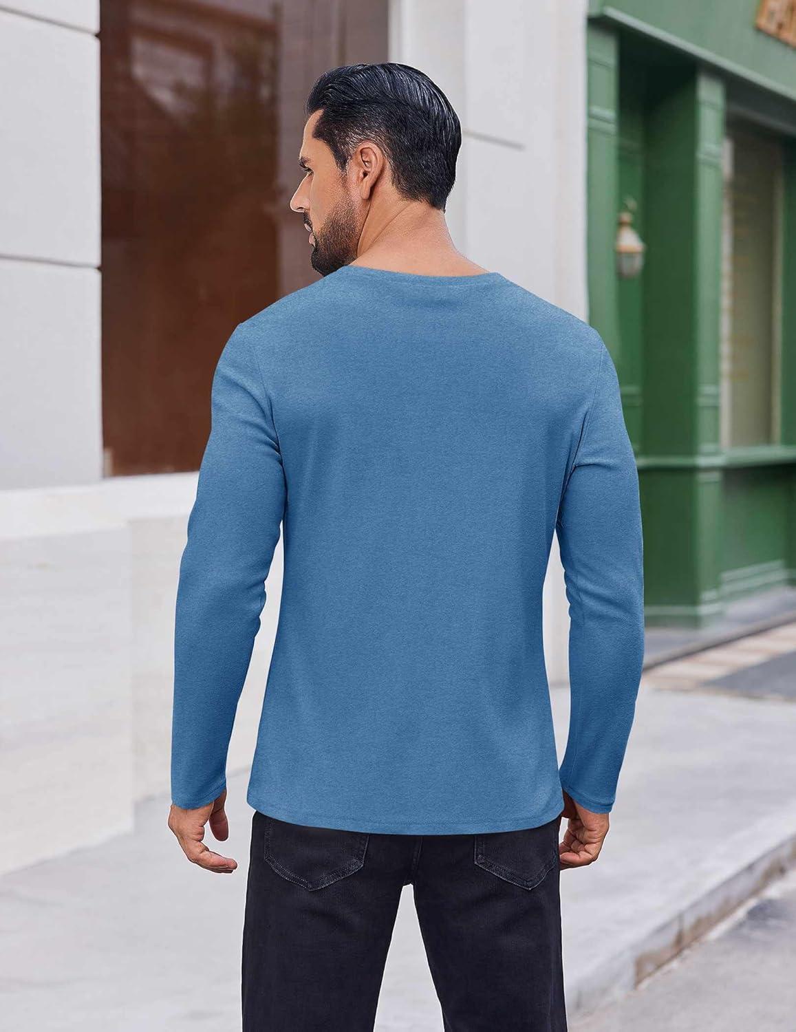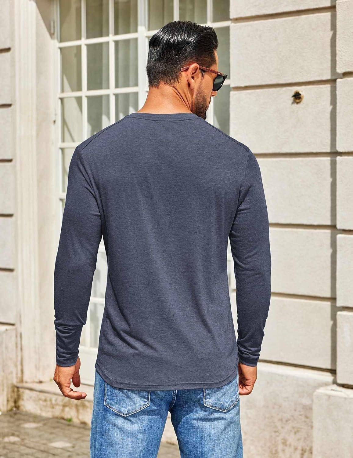 COOFANDY Men’s Long Sleeve Henley Shirts Cotton T-Shirts Casual Pullover Shirt Soft Stretch Basic Tees Fall Tops(Blue)