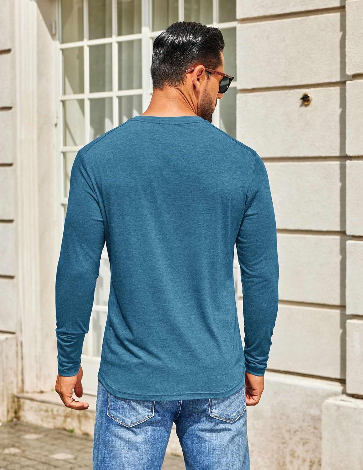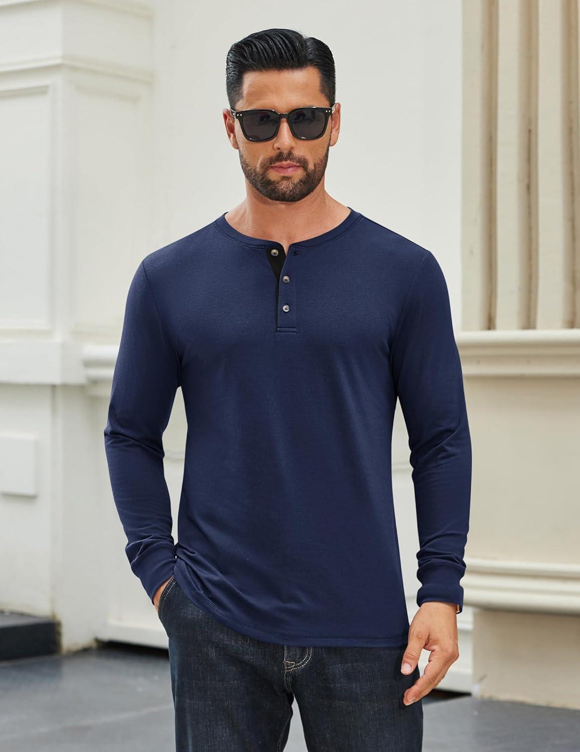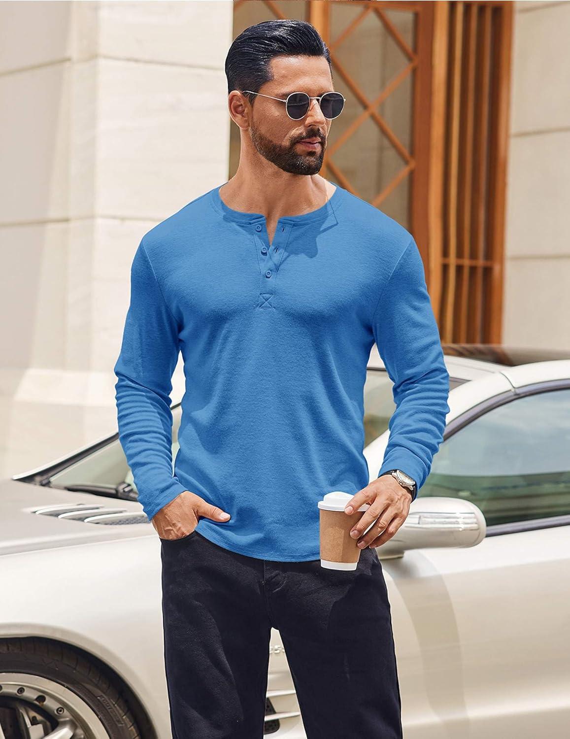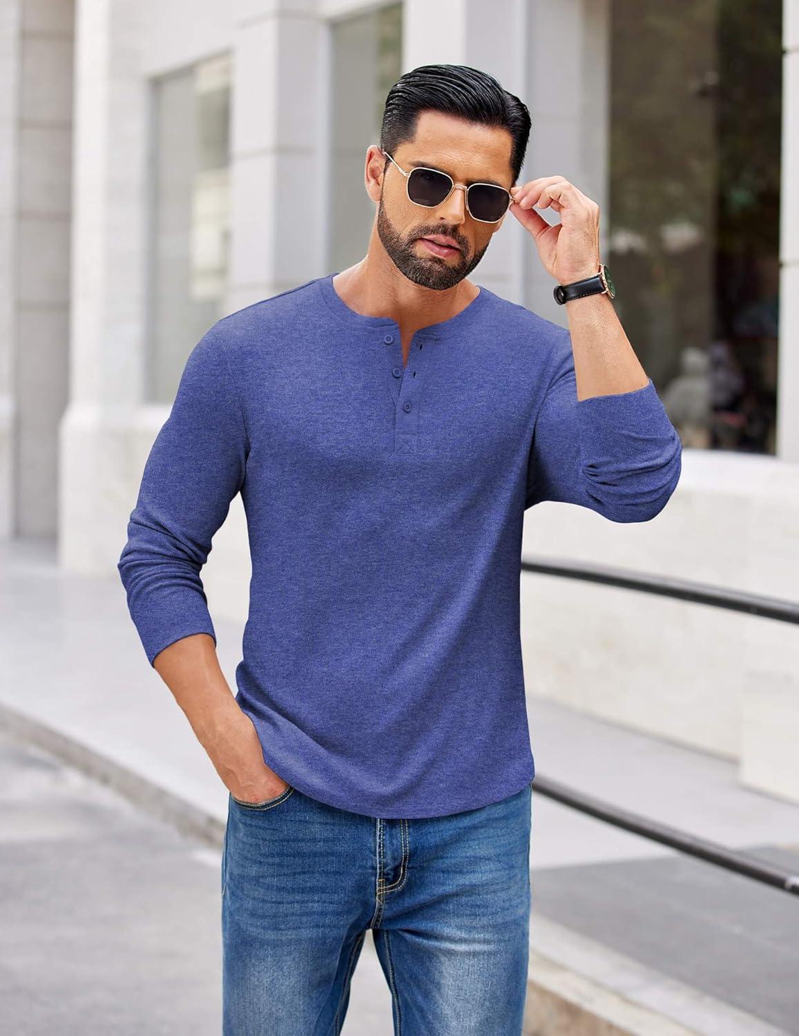 COOFANDY Men’s Long Sleeve Henley Shirts Cotton T-Shirts Casual Pullover Shirt Soft Stretch Basic Tees Fall Tops(Blue)
