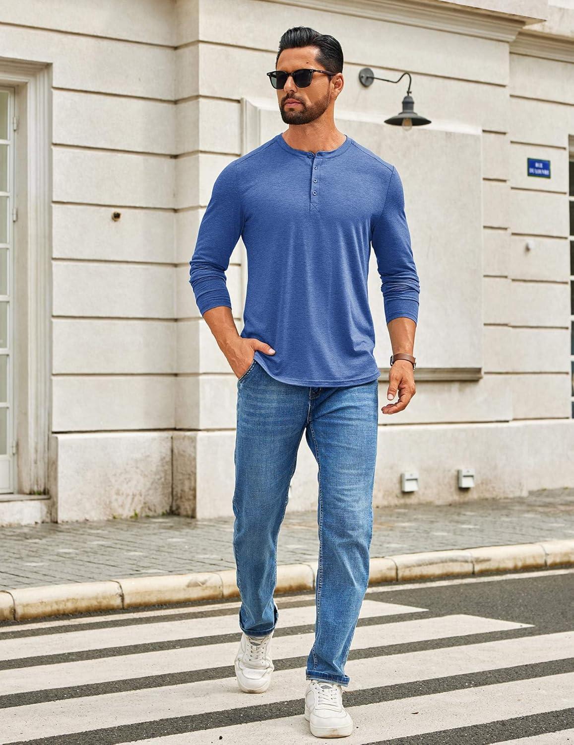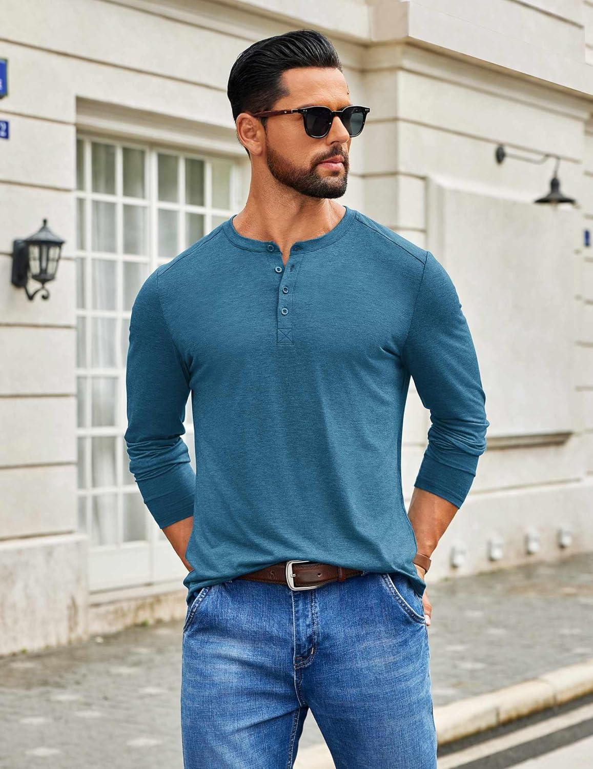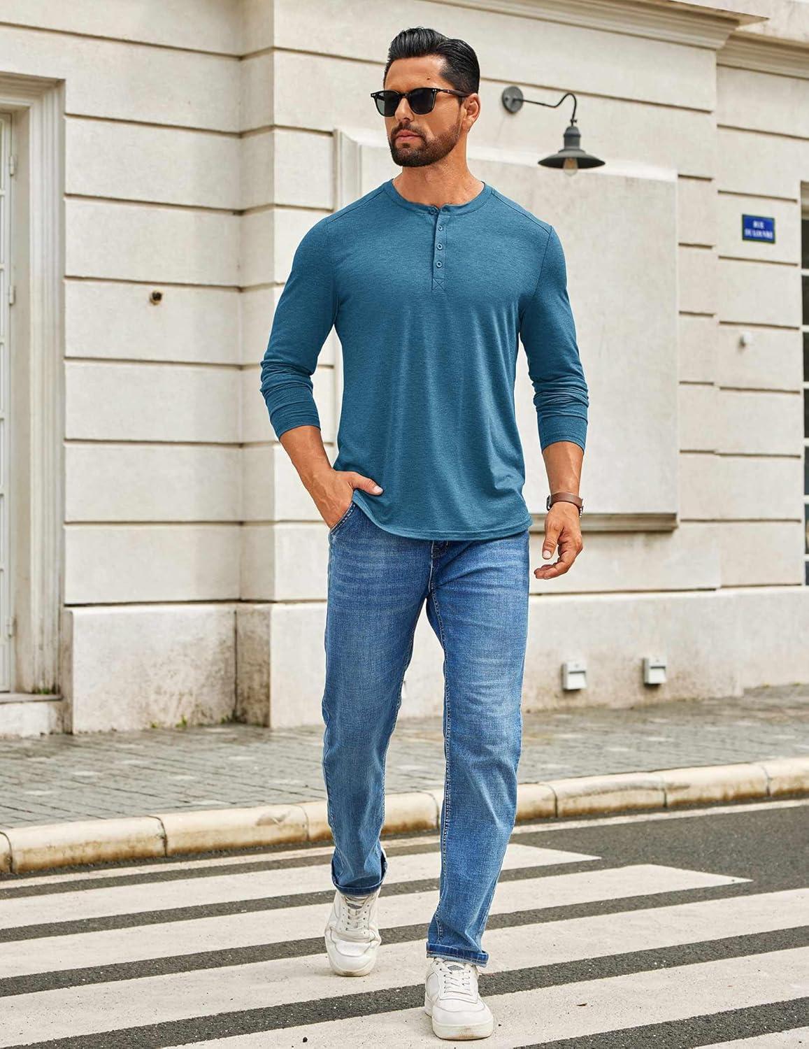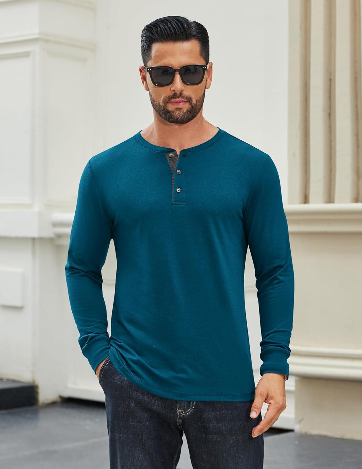COOFANDY Men’s Long Sleeve Henley Shirts Cotton T-Shirts Casual Pullover Shirt Soft Stretch Basic Tees Fall Tops(Blue)