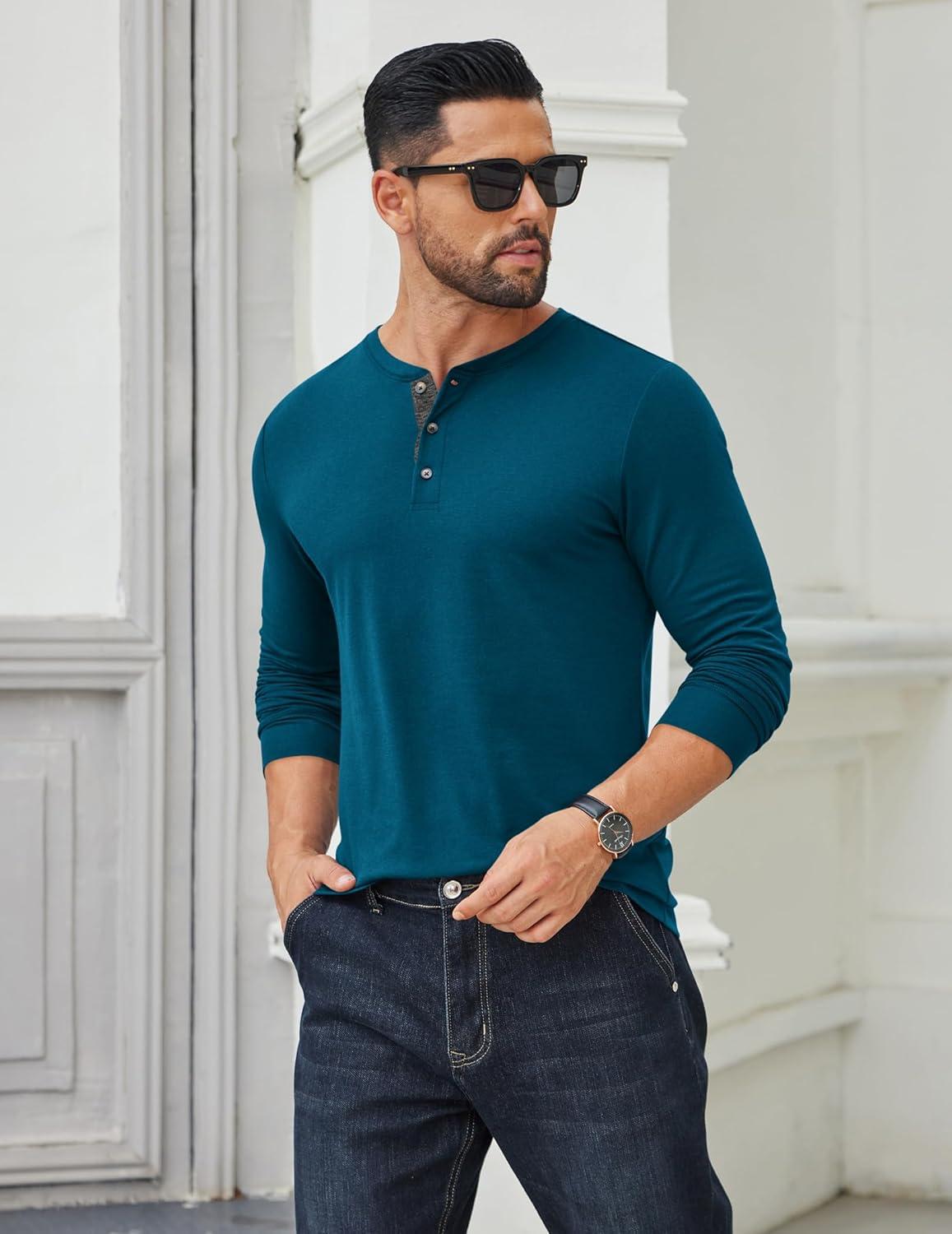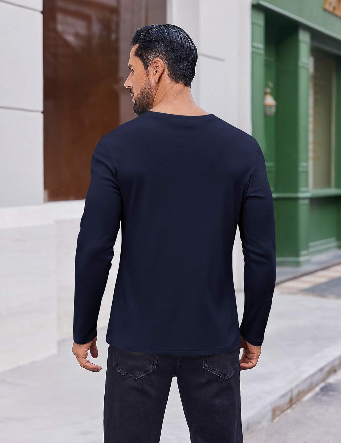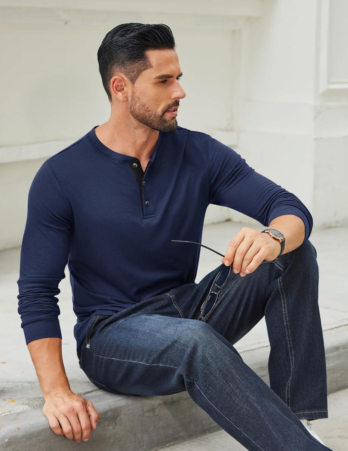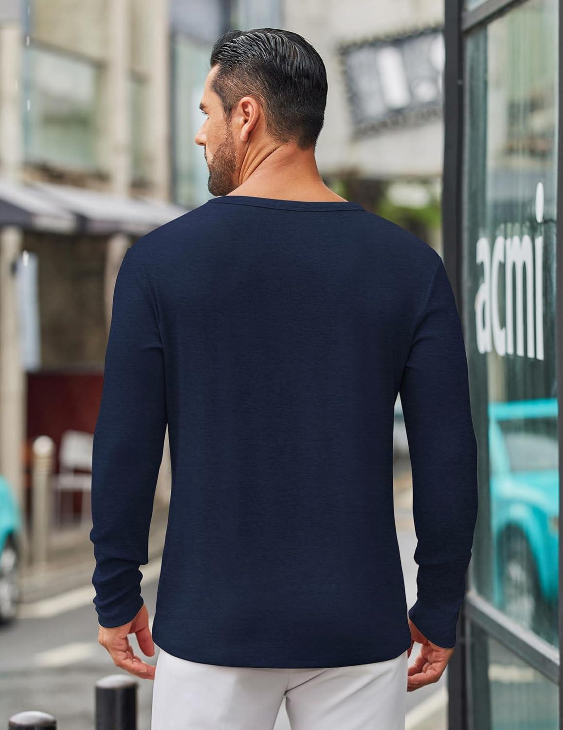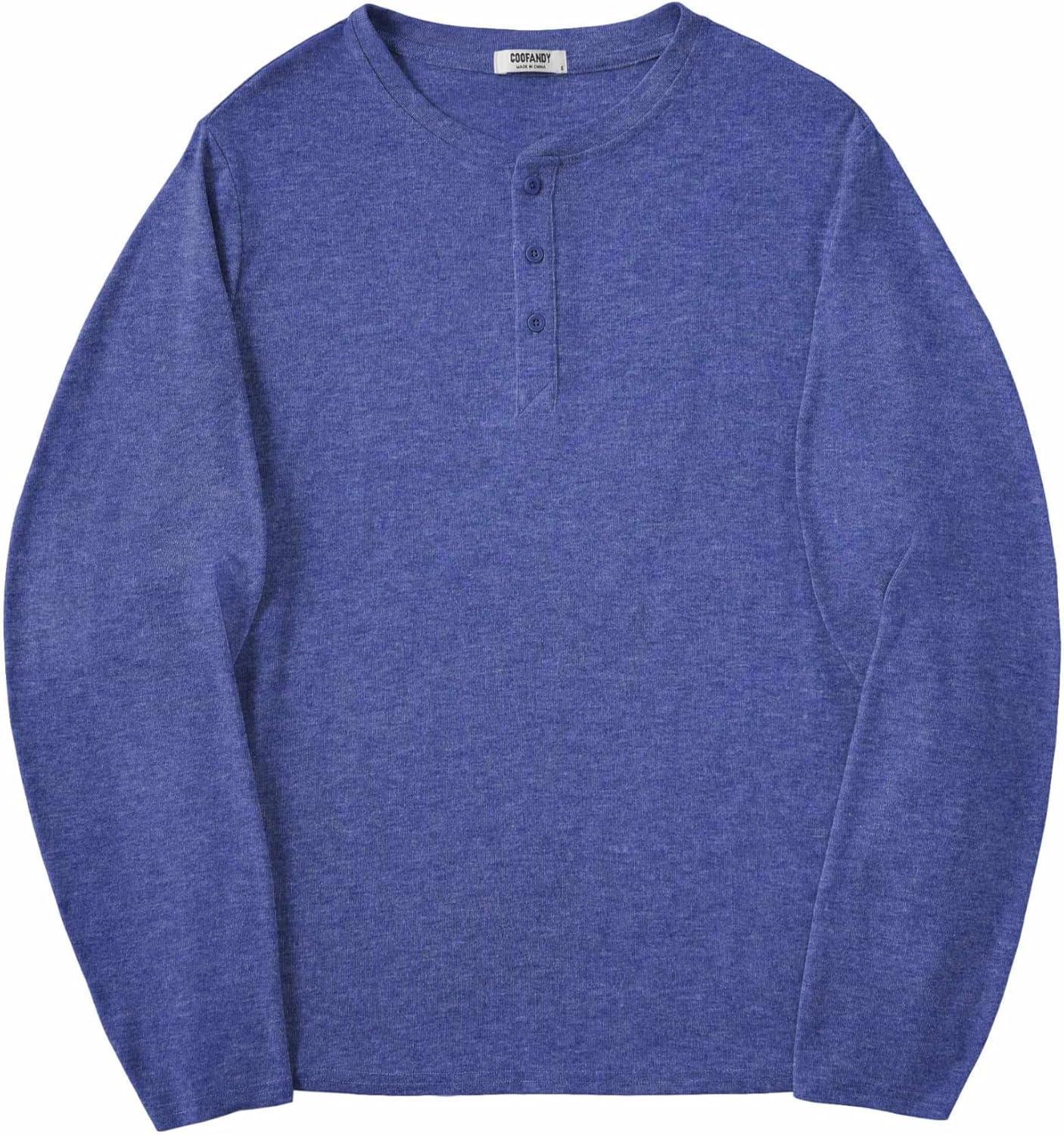 COOFANDY Men’s Long Sleeve Henley Shirts Cotton T-Shirts Casual Pullover Shirt Soft Stretch Basic Tees Fall Tops(Blue)