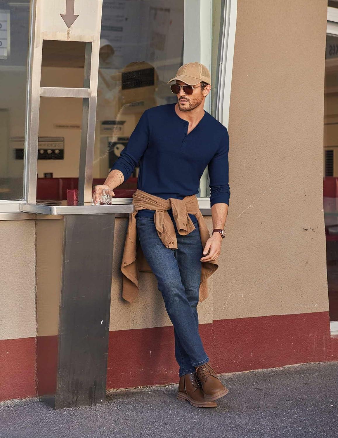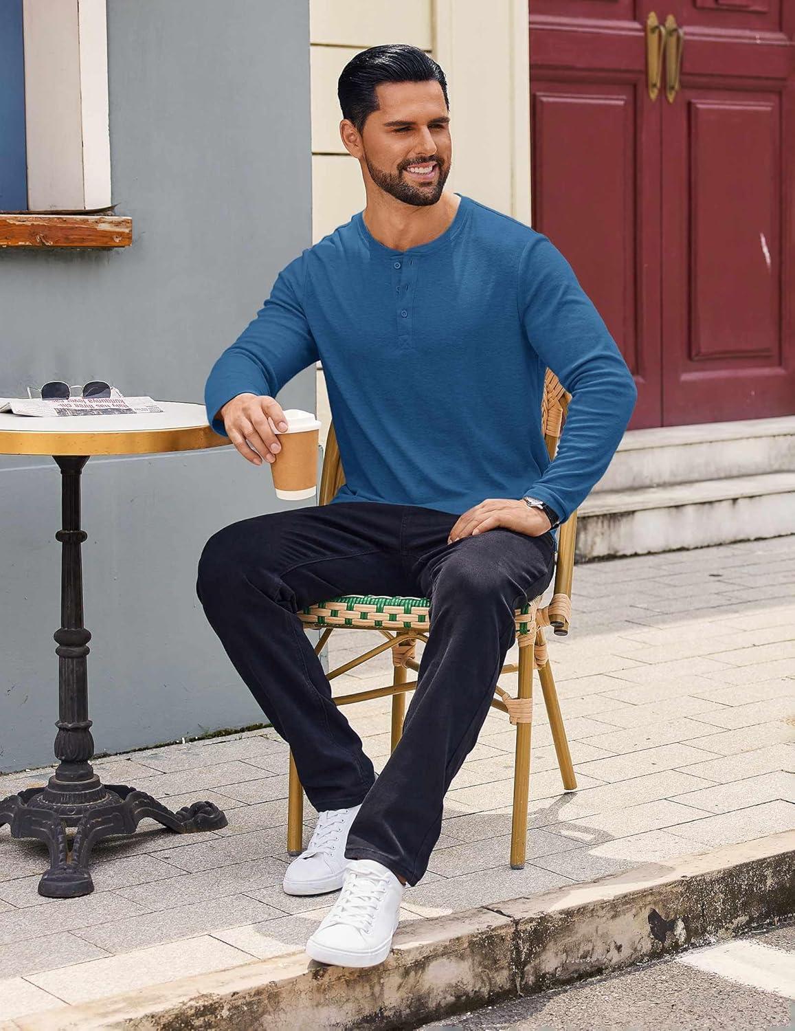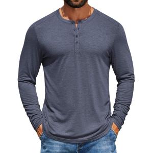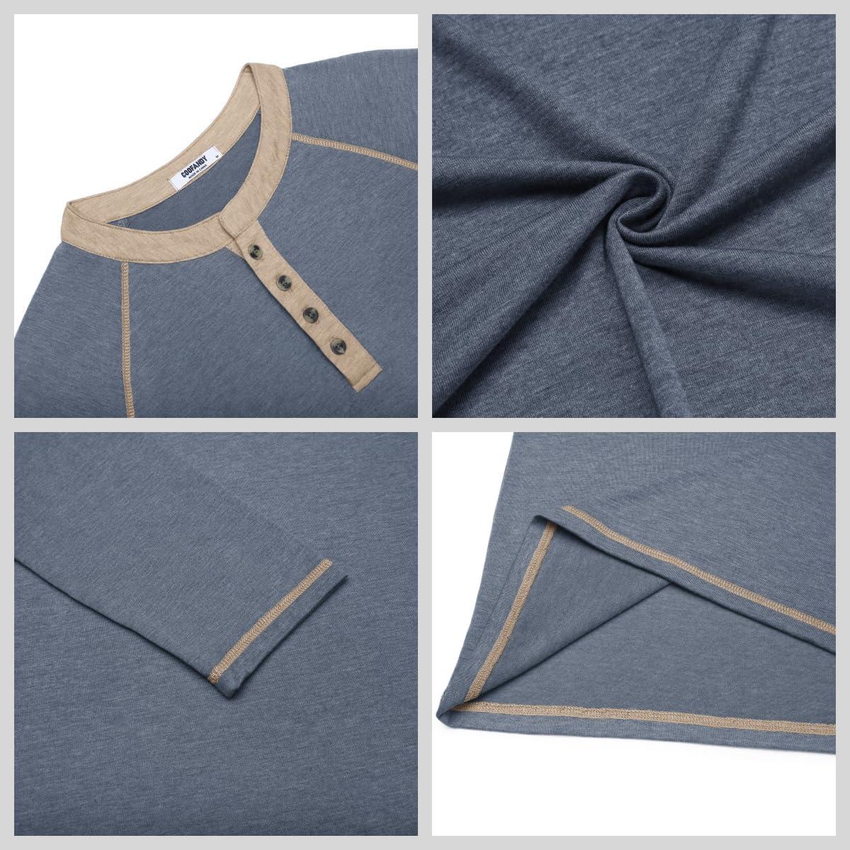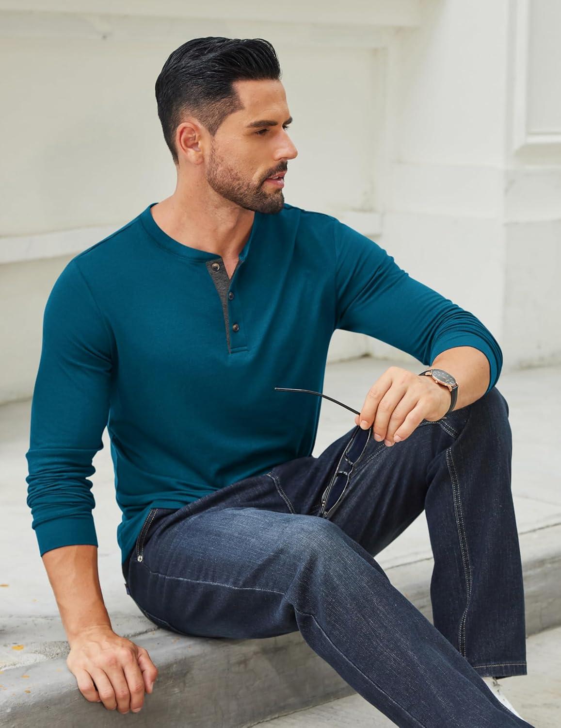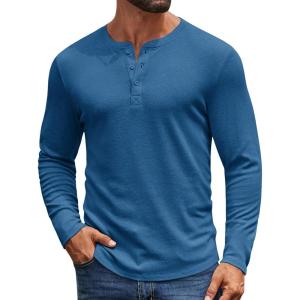 COOFANDY Men’s Long Sleeve Henley Shirts Cotton T-Shirts Casual Pullover Shirt Soft Stretch Basic Tees Fall Tops(Blue)