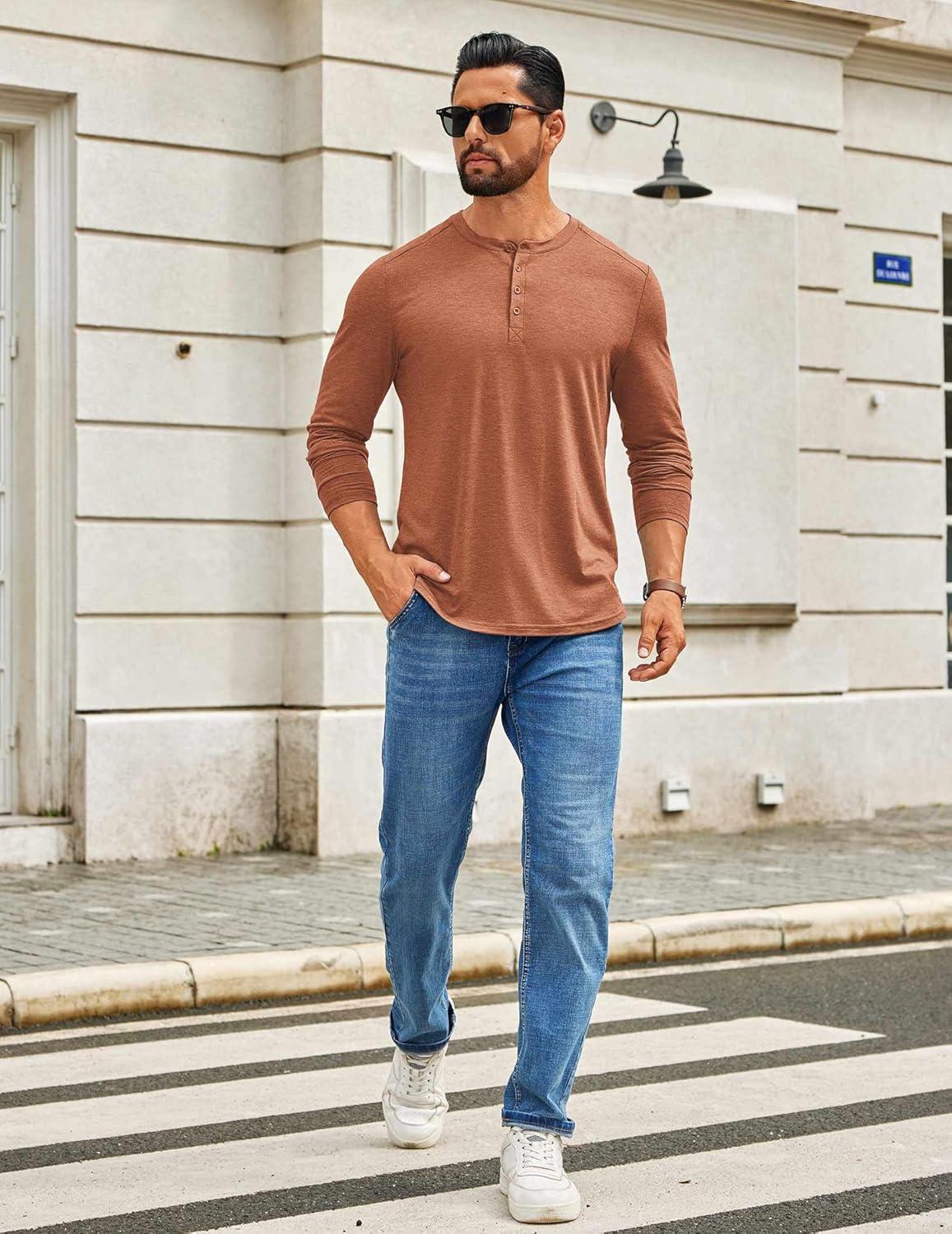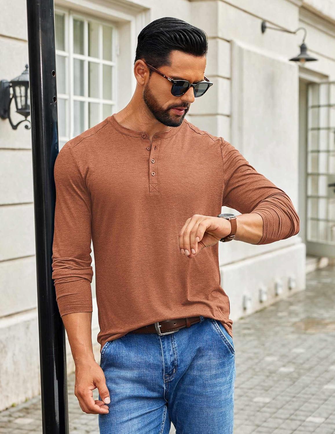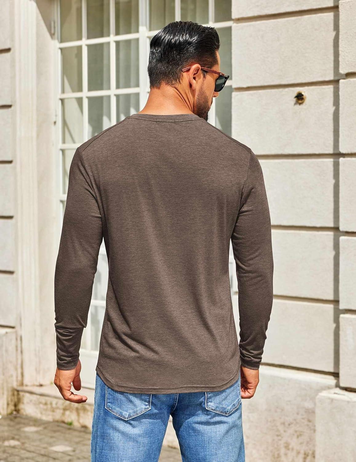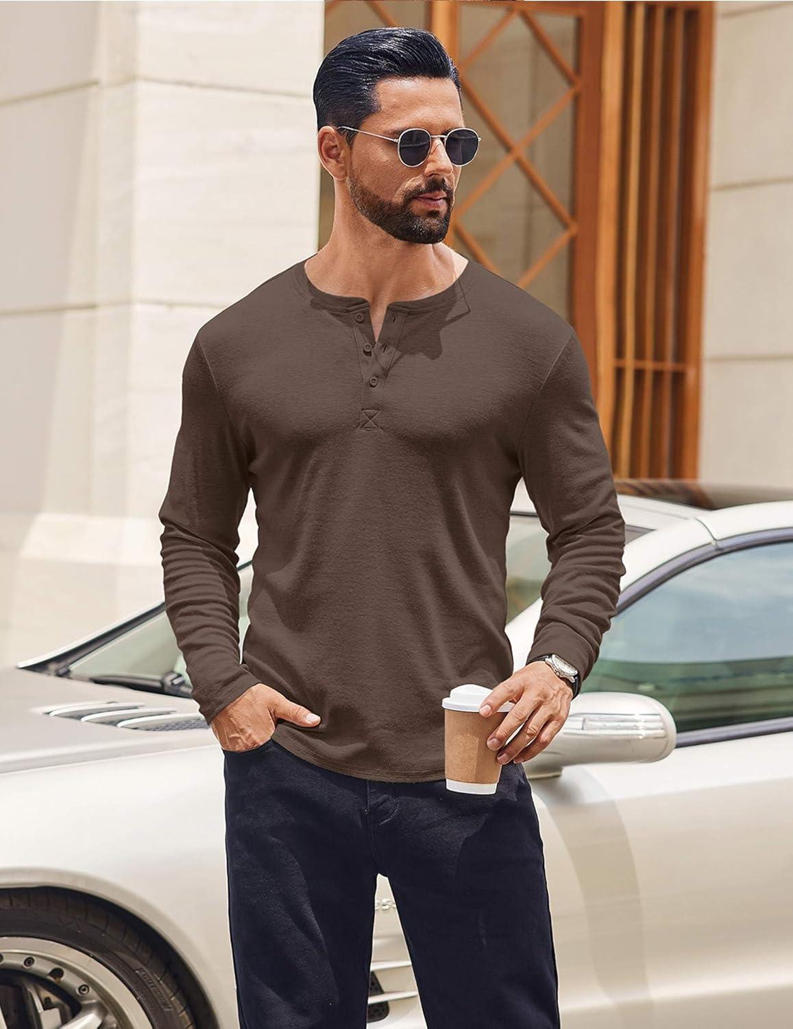 COOFANDY Men’s Henley Shirts Long Sleeve T-Shirt Lightweight Fashion Casual Pullover Tee Shirt(Brown)