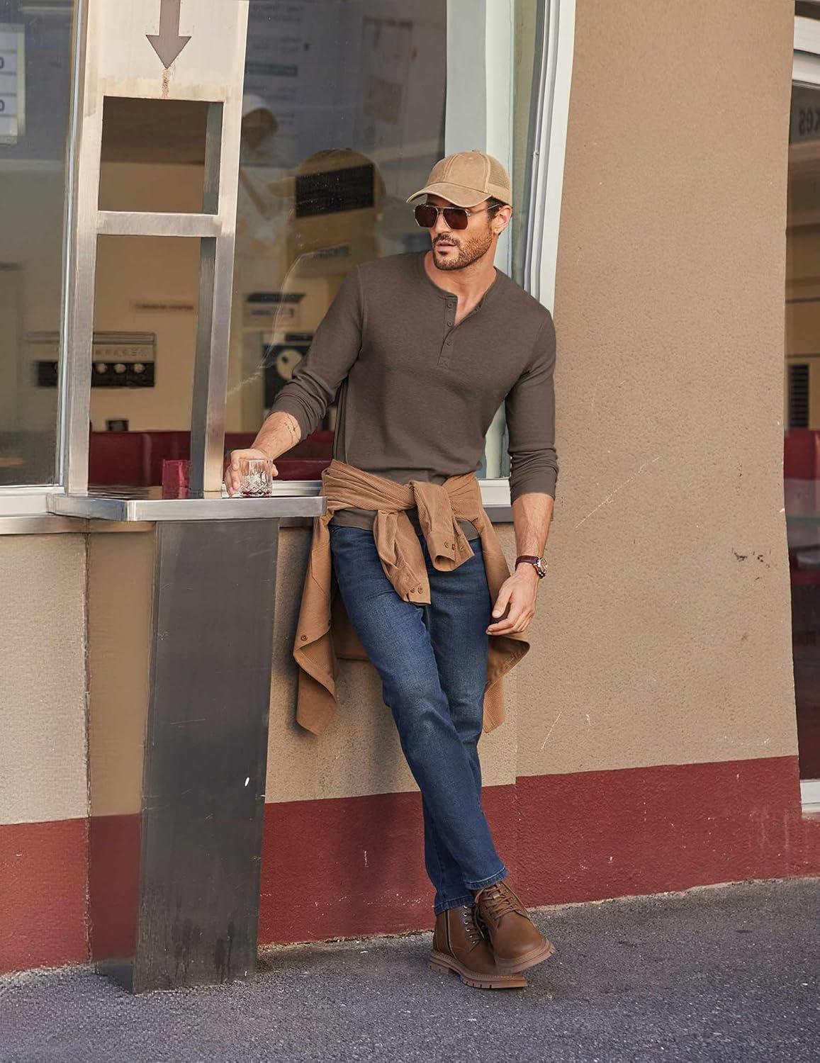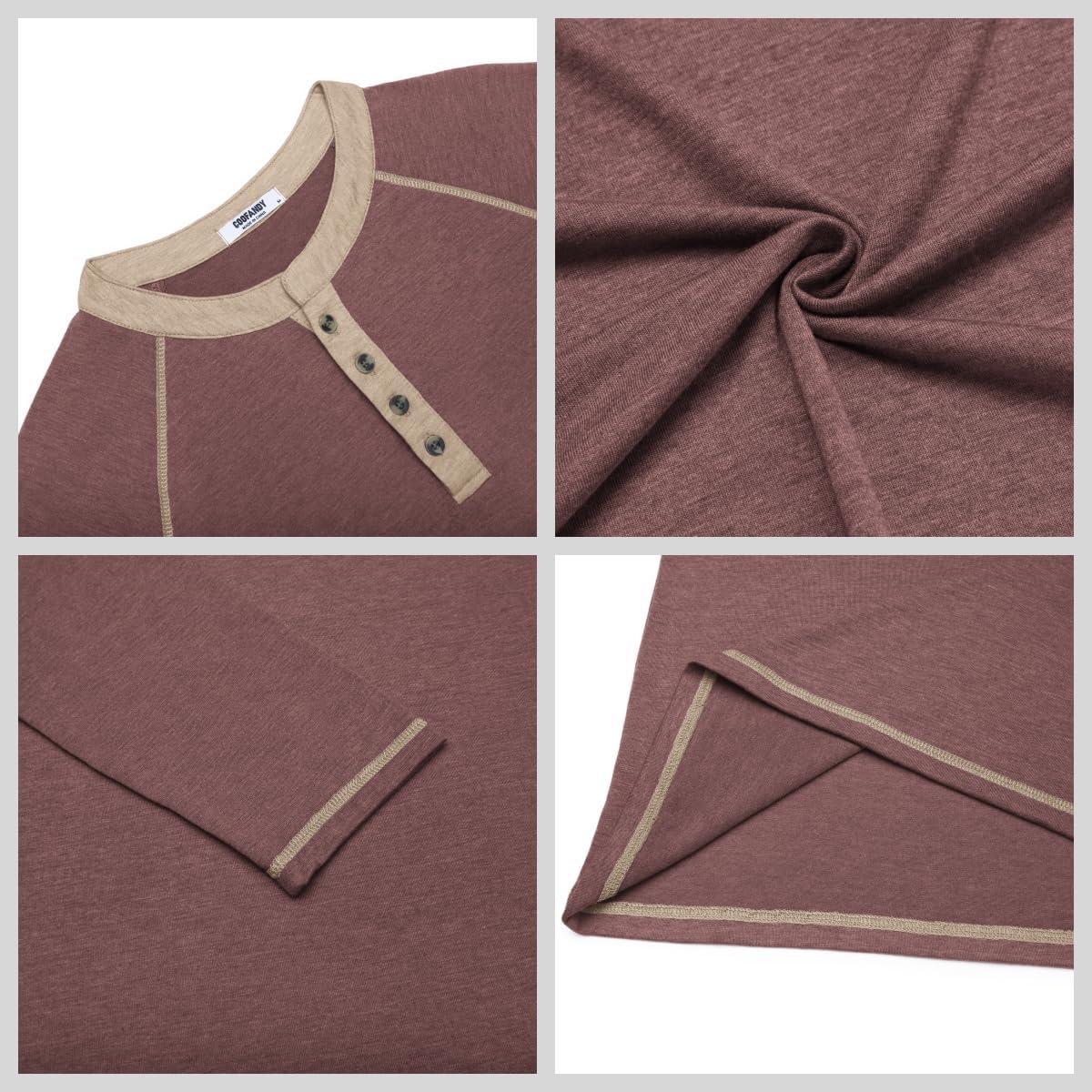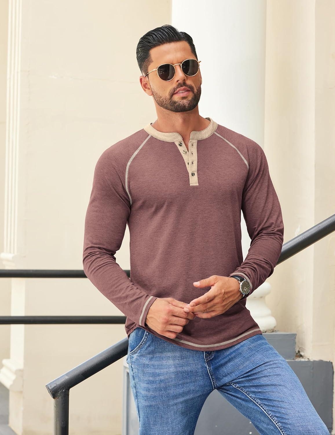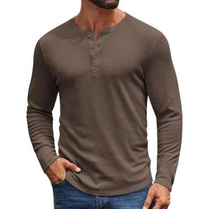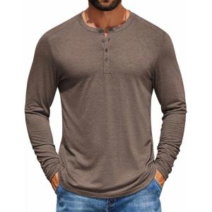 COOFANDY Men’s Henley Shirts Long Sleeve T-Shirt Lightweight Fashion Casual Pullover Tee Shirt(Brown)