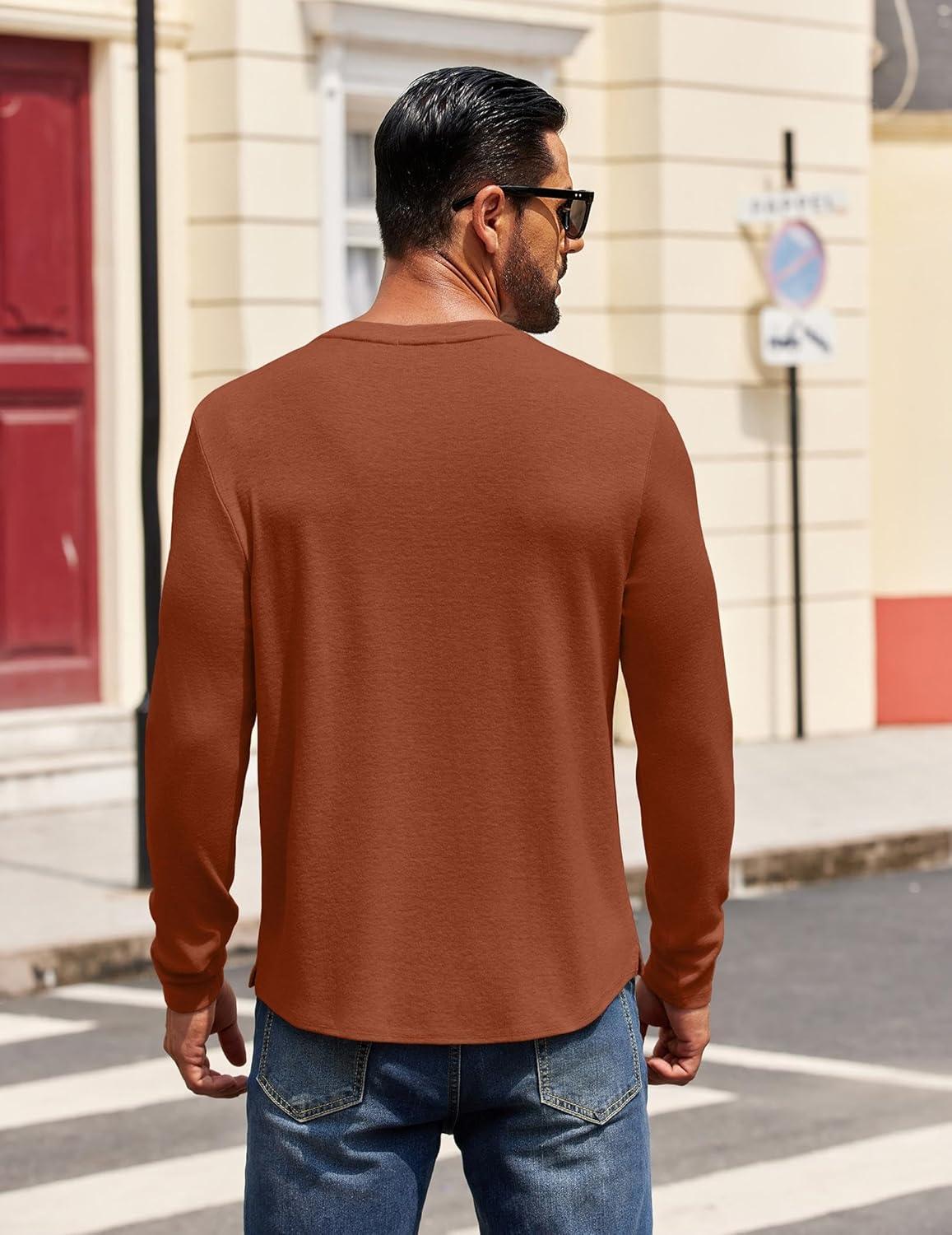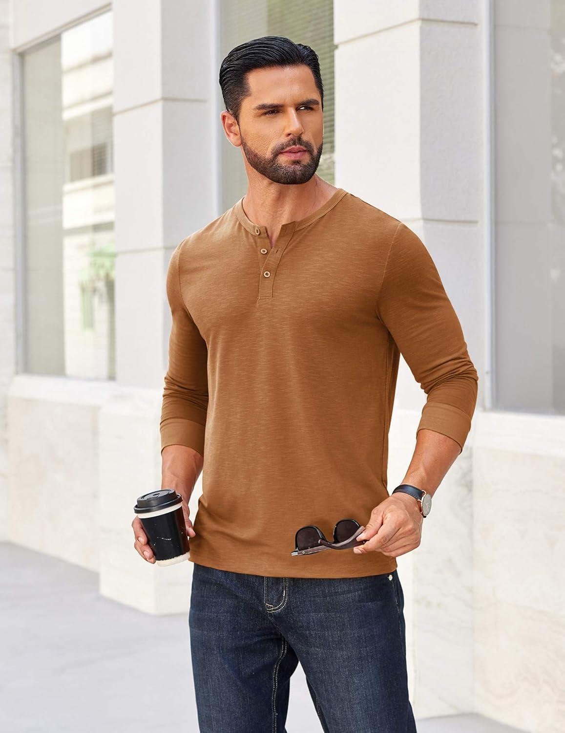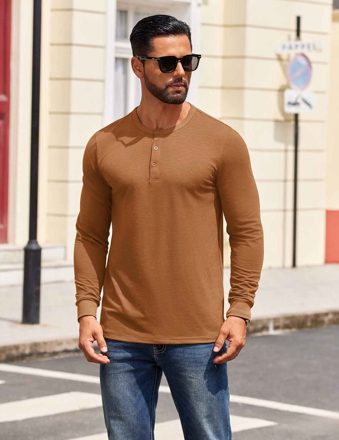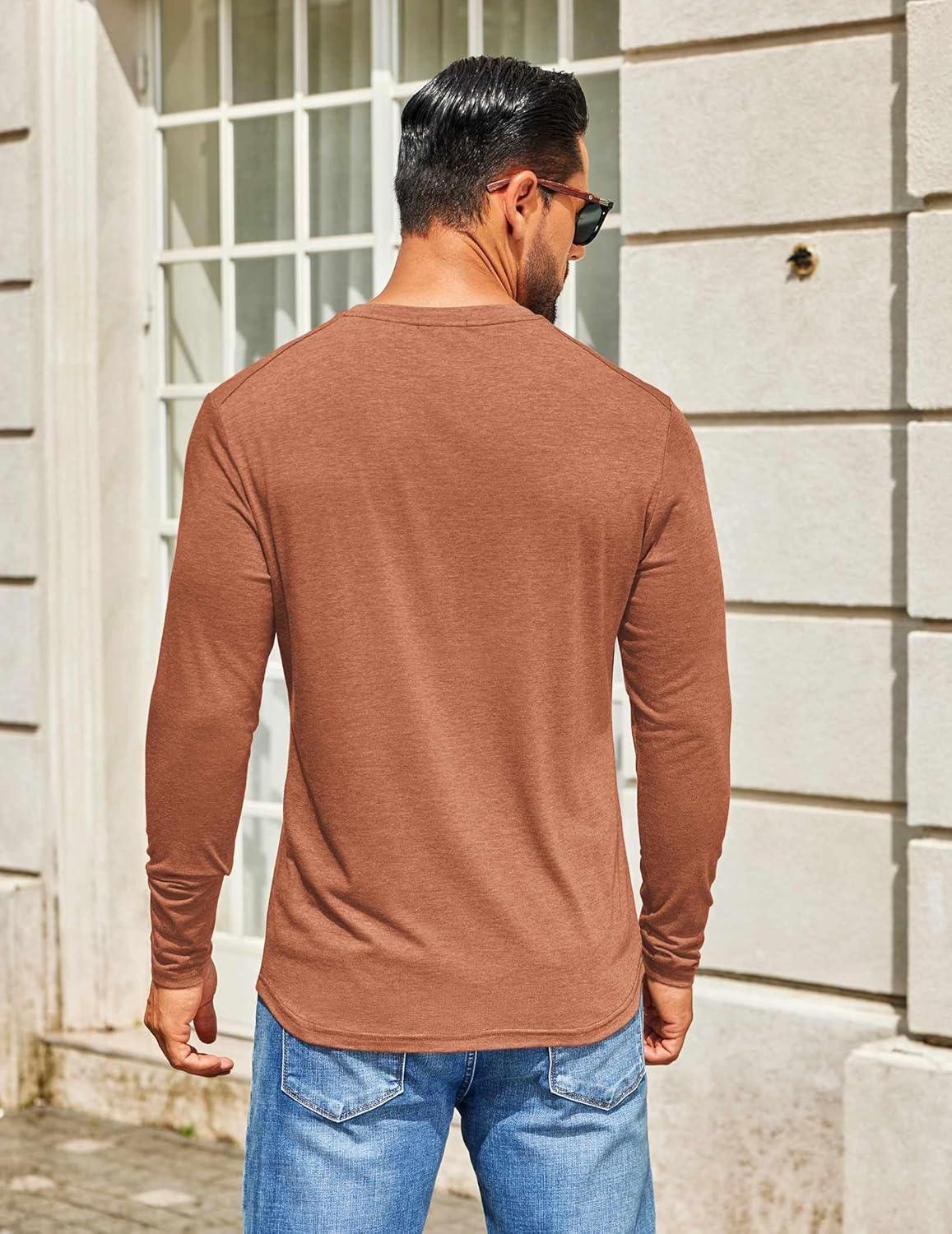 COOFANDY Men’s Henley Shirts Long Sleeve Lightweight Button T-Shirt Casual Basic Tee Top(Caramel Brown)