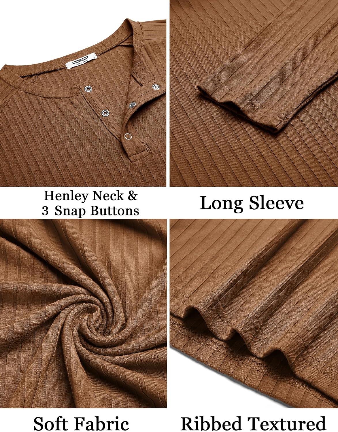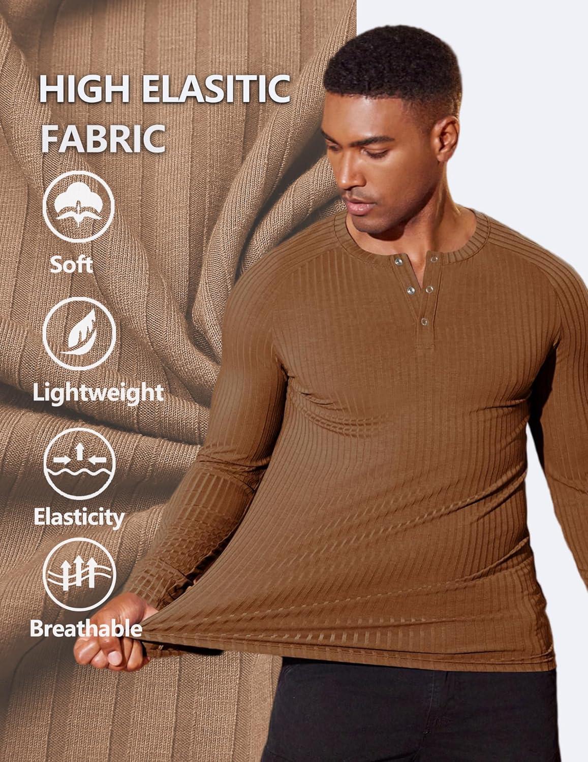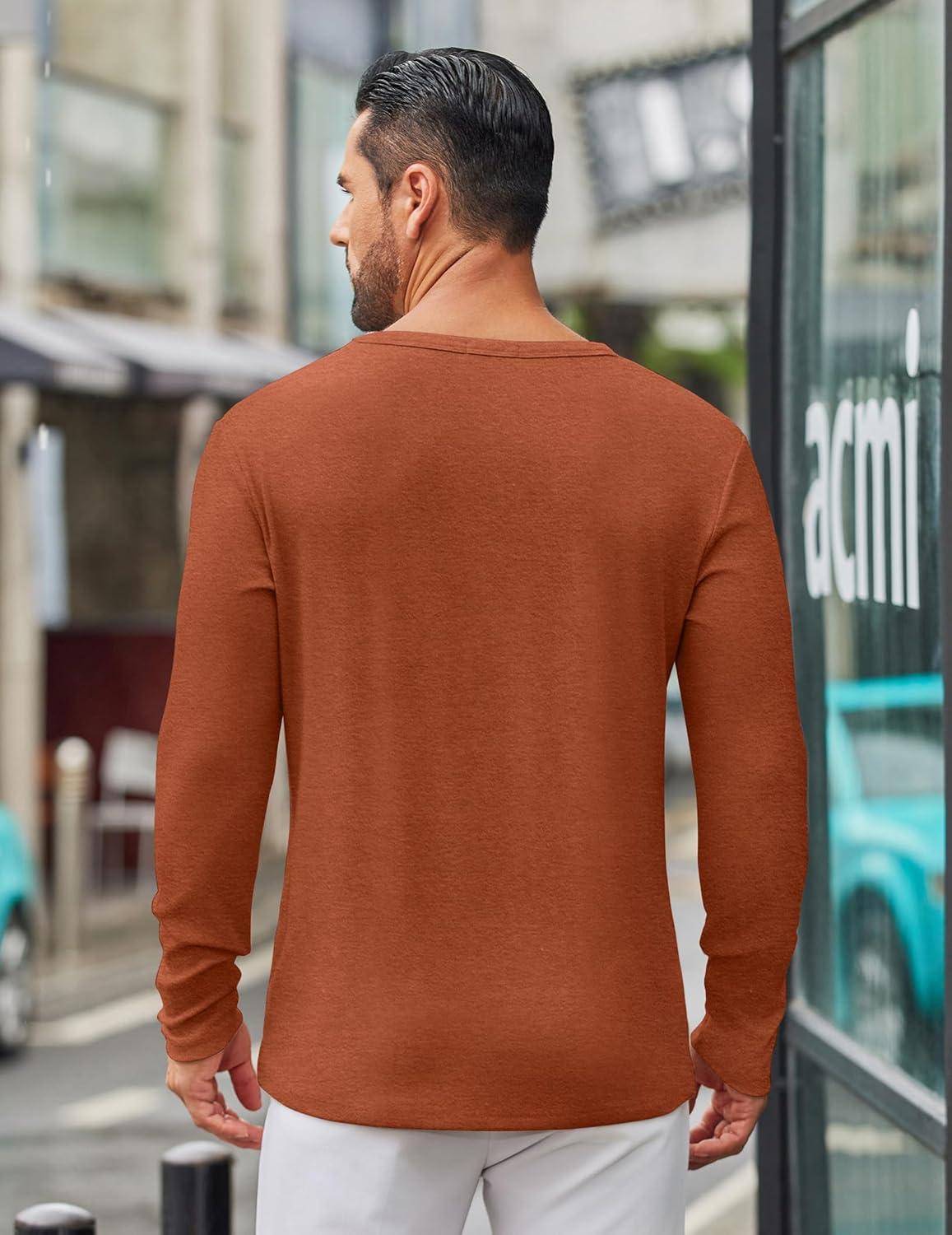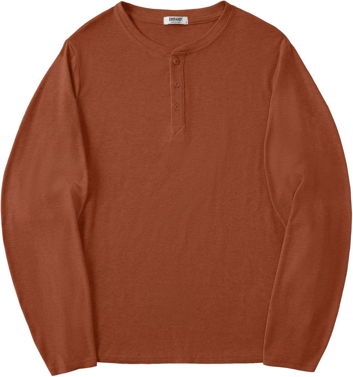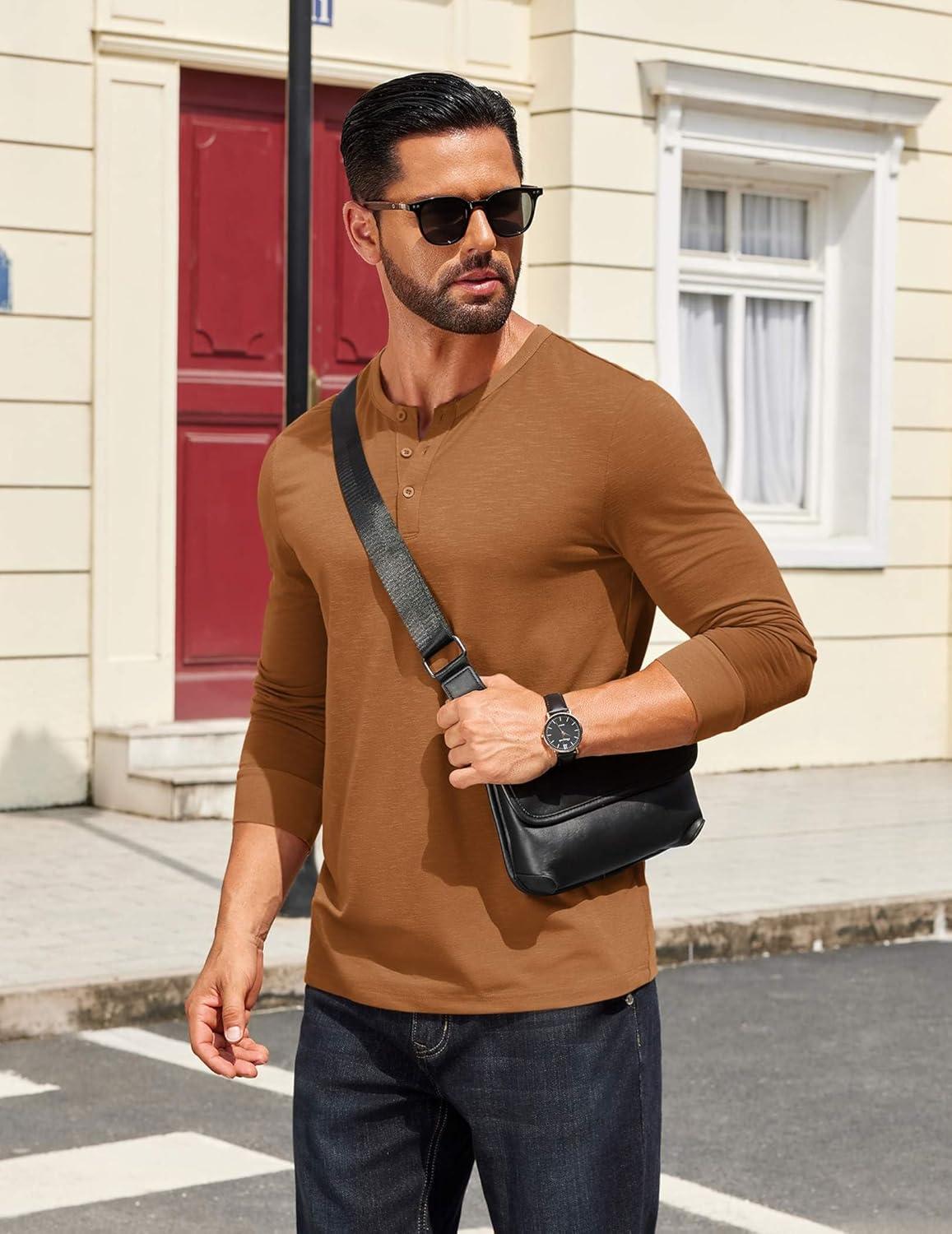 COOFANDY Men’s Henley Shirts Long Sleeve Lightweight Button T-Shirt Casual Basic Tee Top(Caramel Brown)