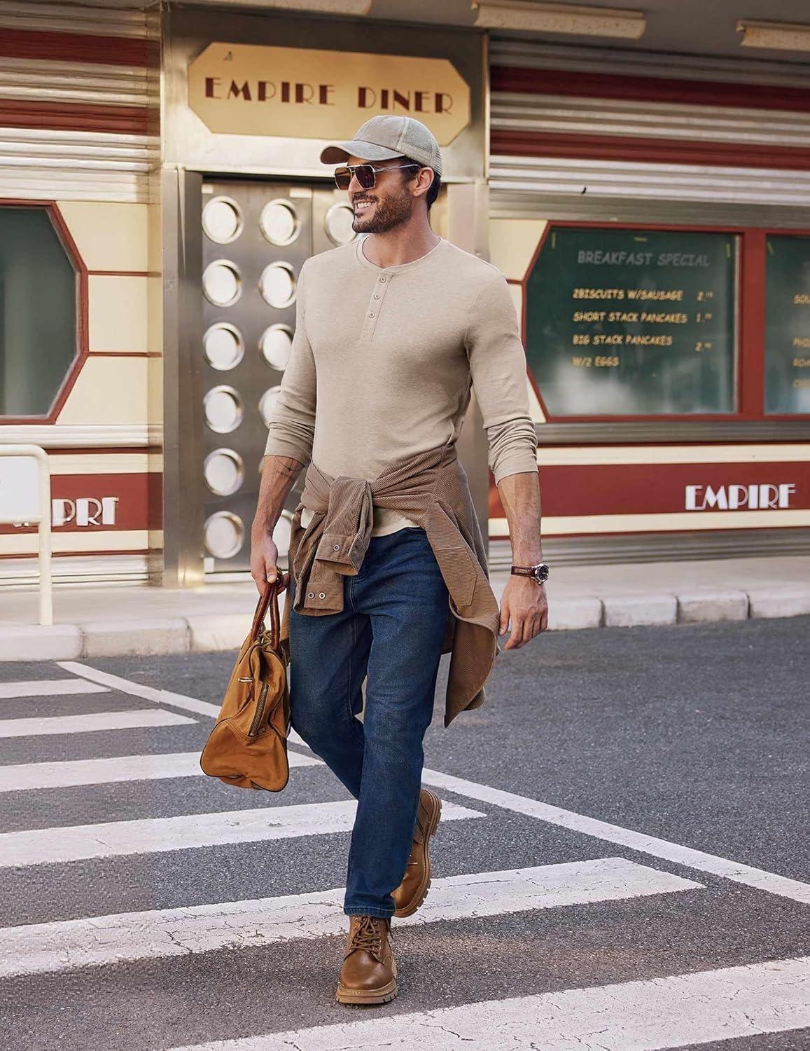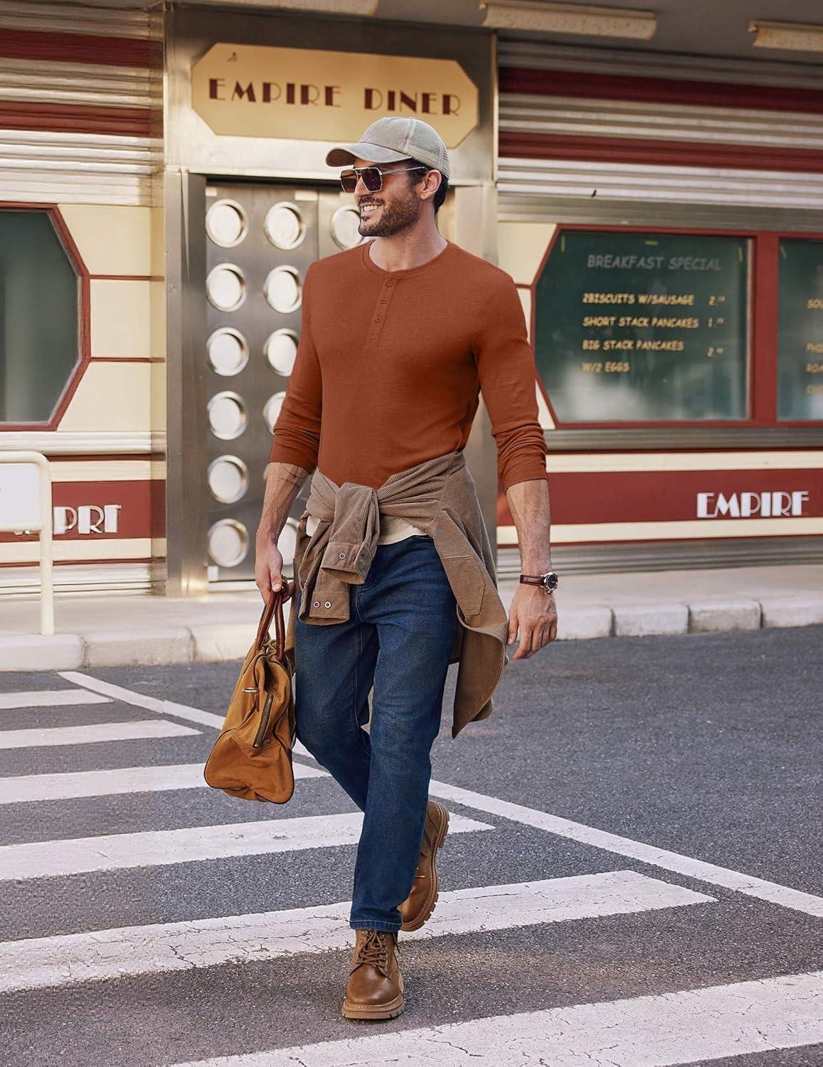 COOFANDY Men’s Henley Shirts Long Sleeve T-Shirt Lightweight Fashion Casual Pullover Tee Shirt(Caramel)