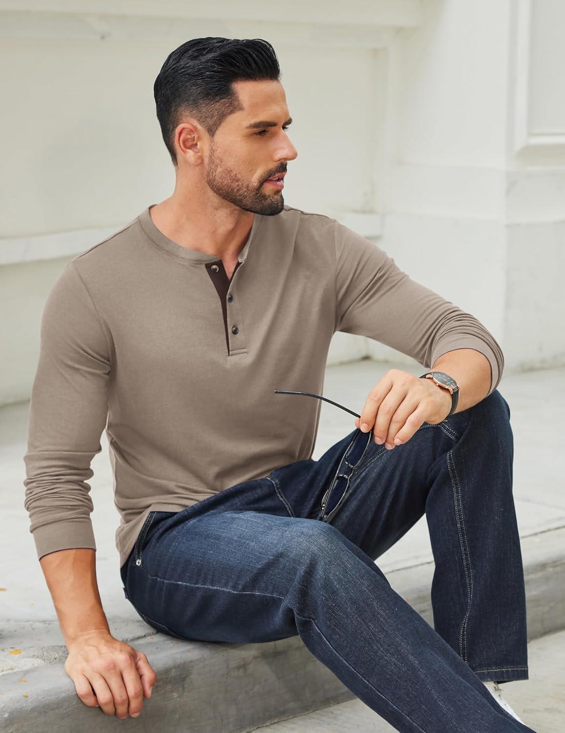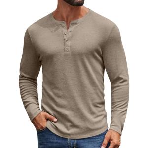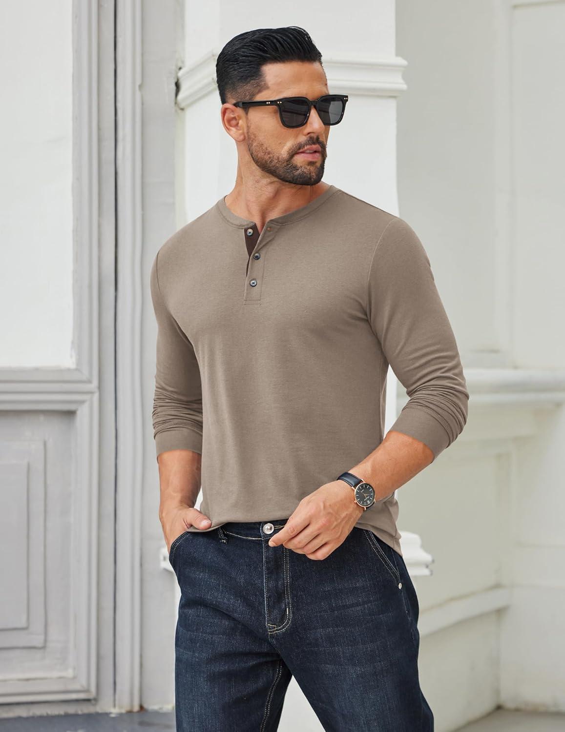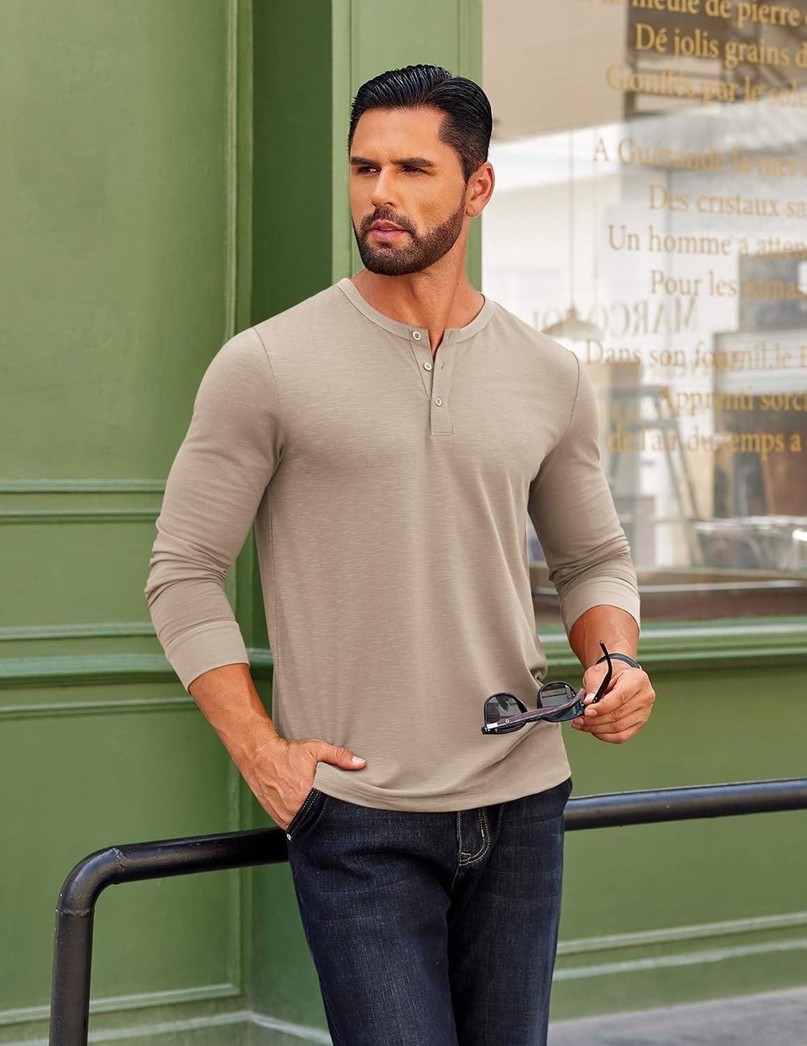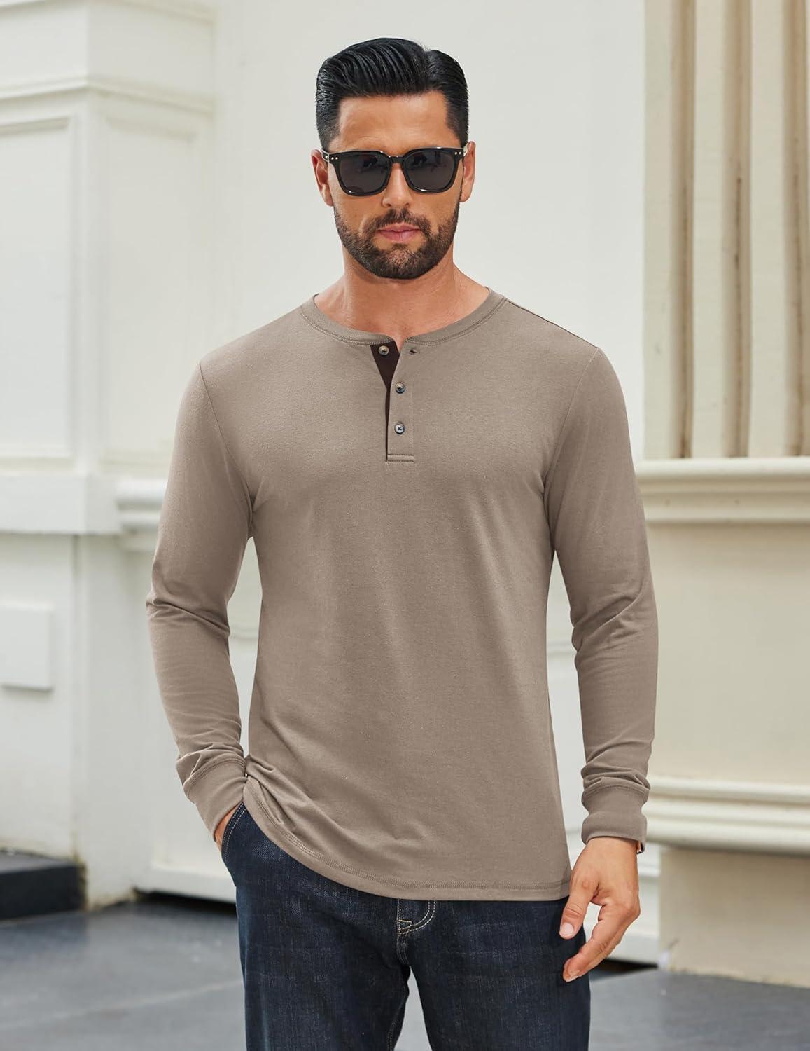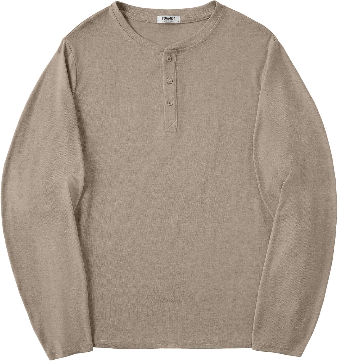 COOFANDY Men’s Henley Shirts Long Sleeve T-Shirt Lightweight Fashion Casual Pullover Tee Shirt(Deep Khaki)