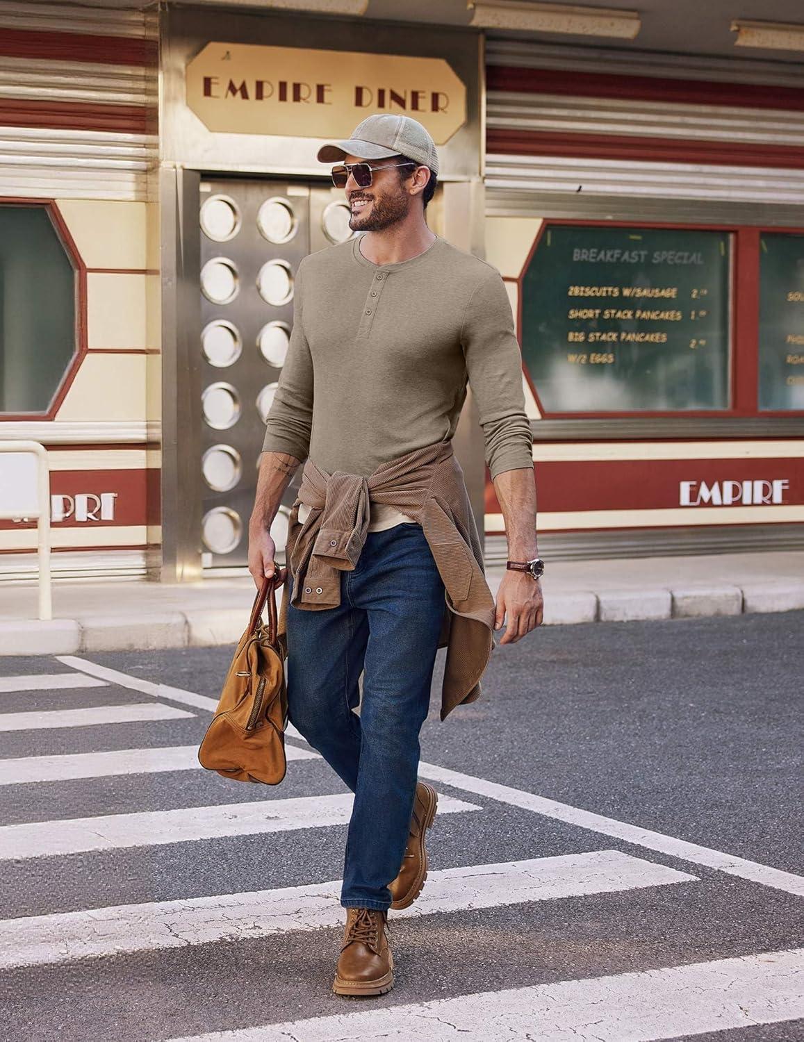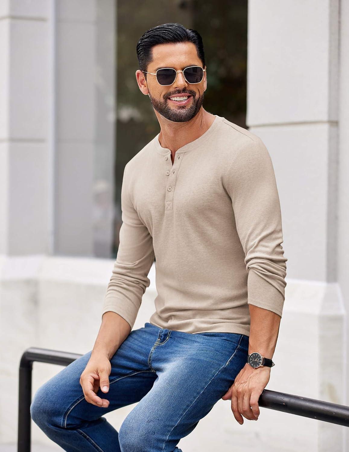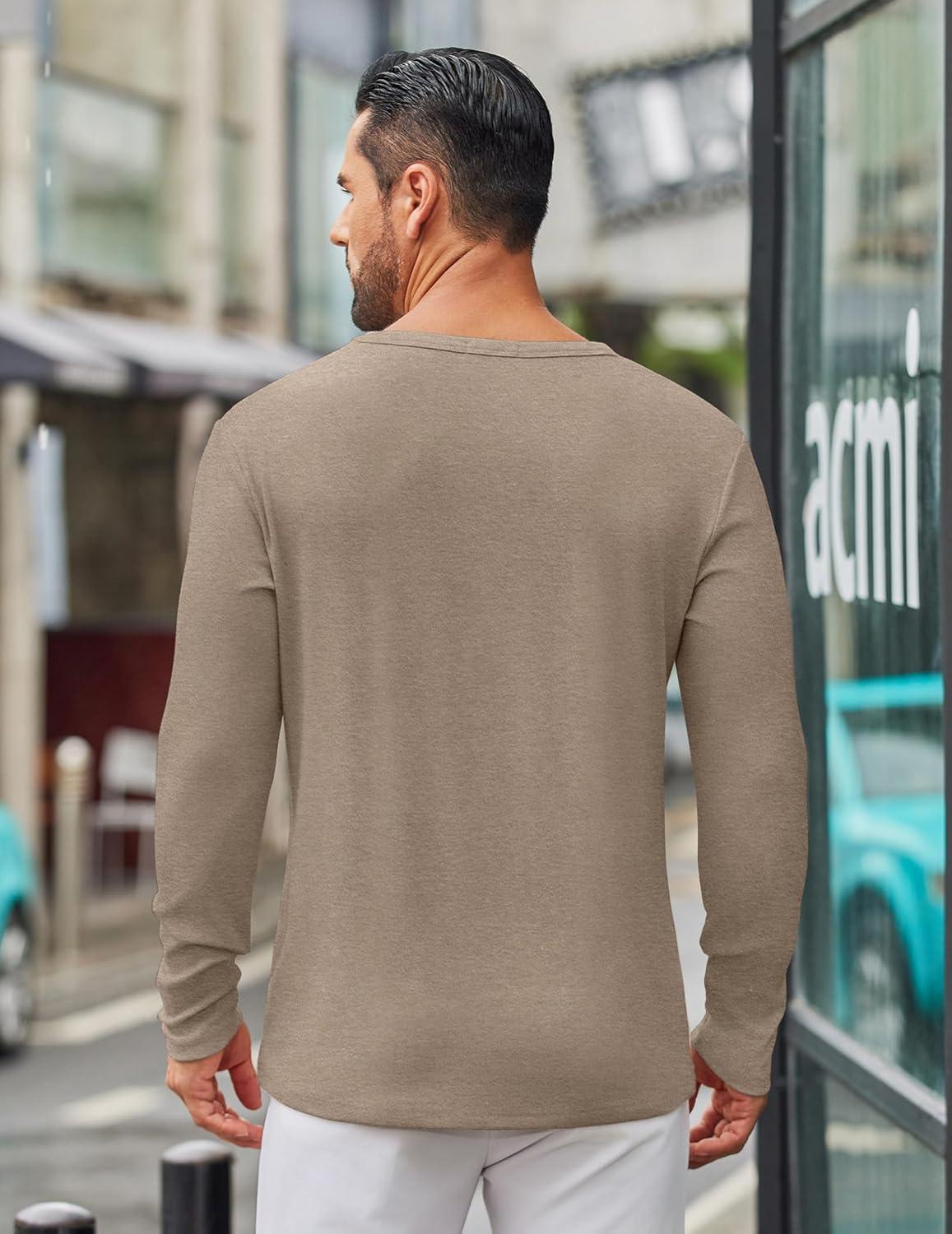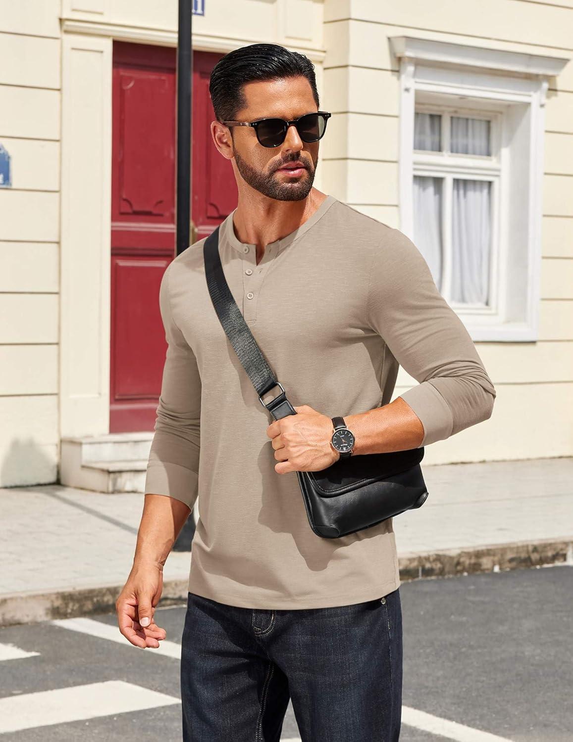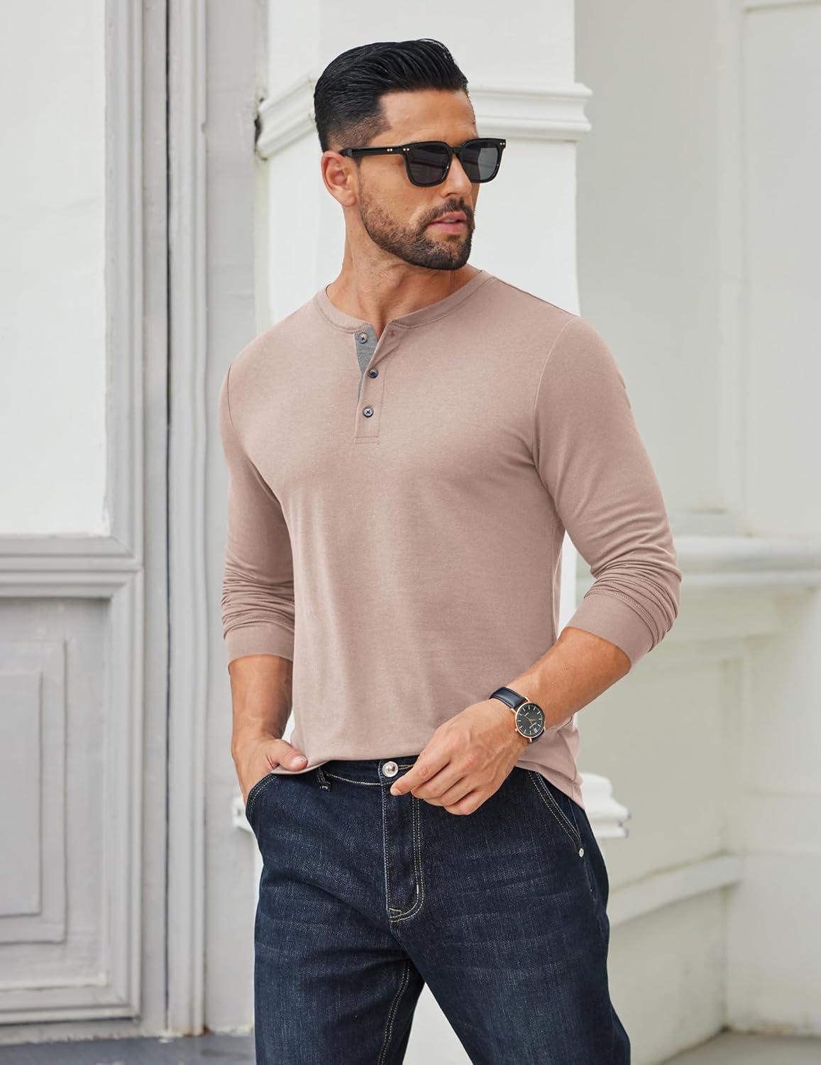 COOFANDY Men’s Henley Shirts Long Sleeve T-Shirt Lightweight Fashion Casual Pullover Tee Shirt(Deep Khaki)