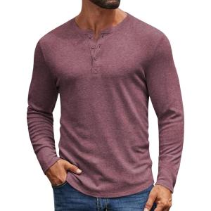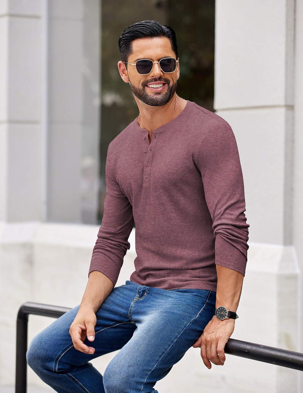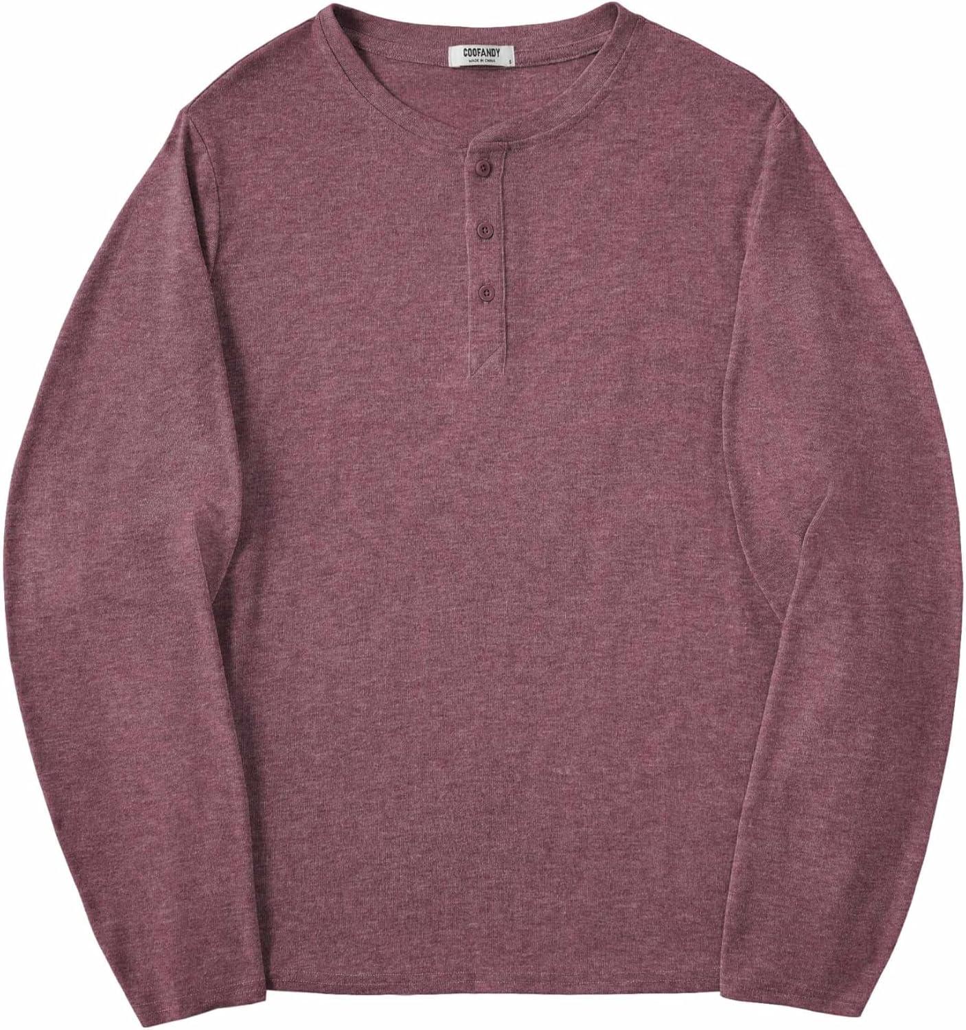 COOFANDY Mens Henley Shirts Long Sleeve Casual Pullover Shirt Fashion Button T-Shirt(Heather Burgundy)
