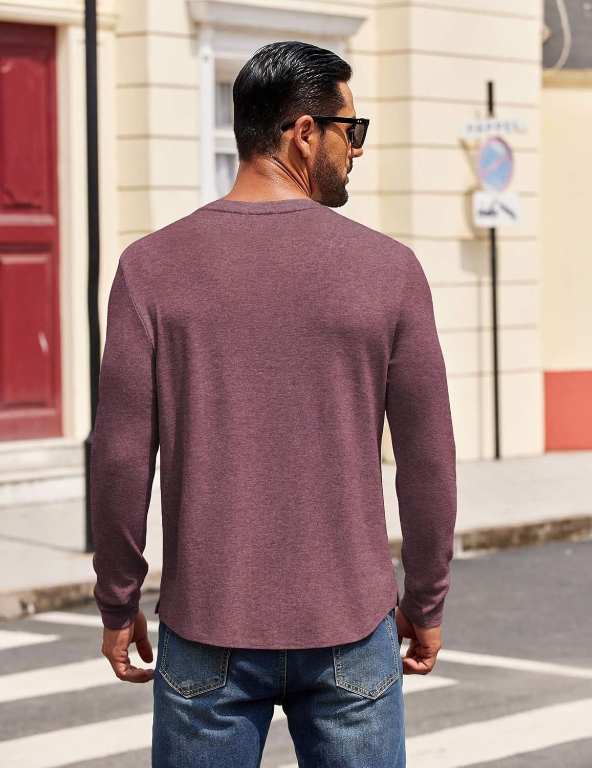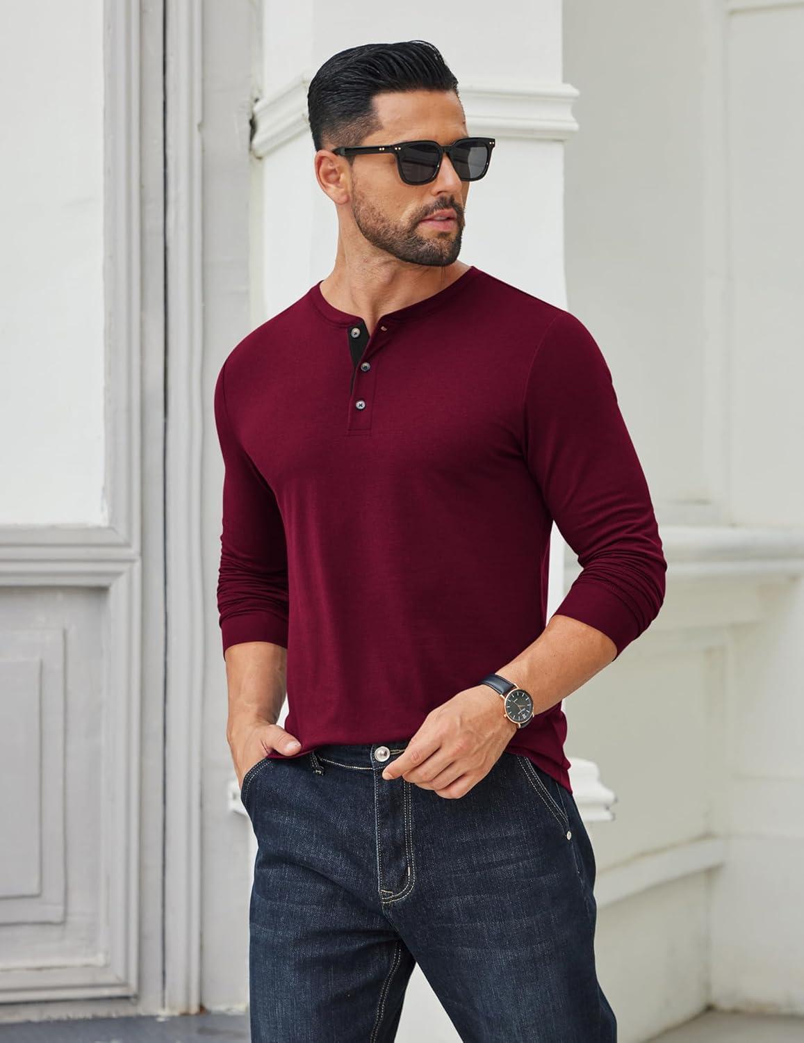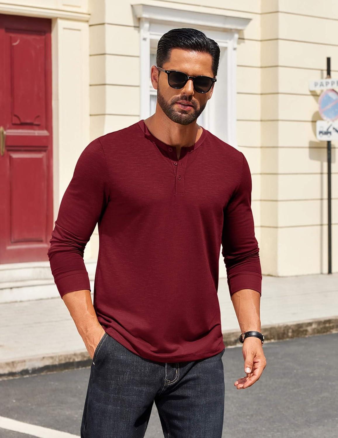 COOFANDY Men’s Henley Shirts Long Sleeve T-Shirt Lightweight Fashion Casual Pullover Tee Shirt(Wine Red)