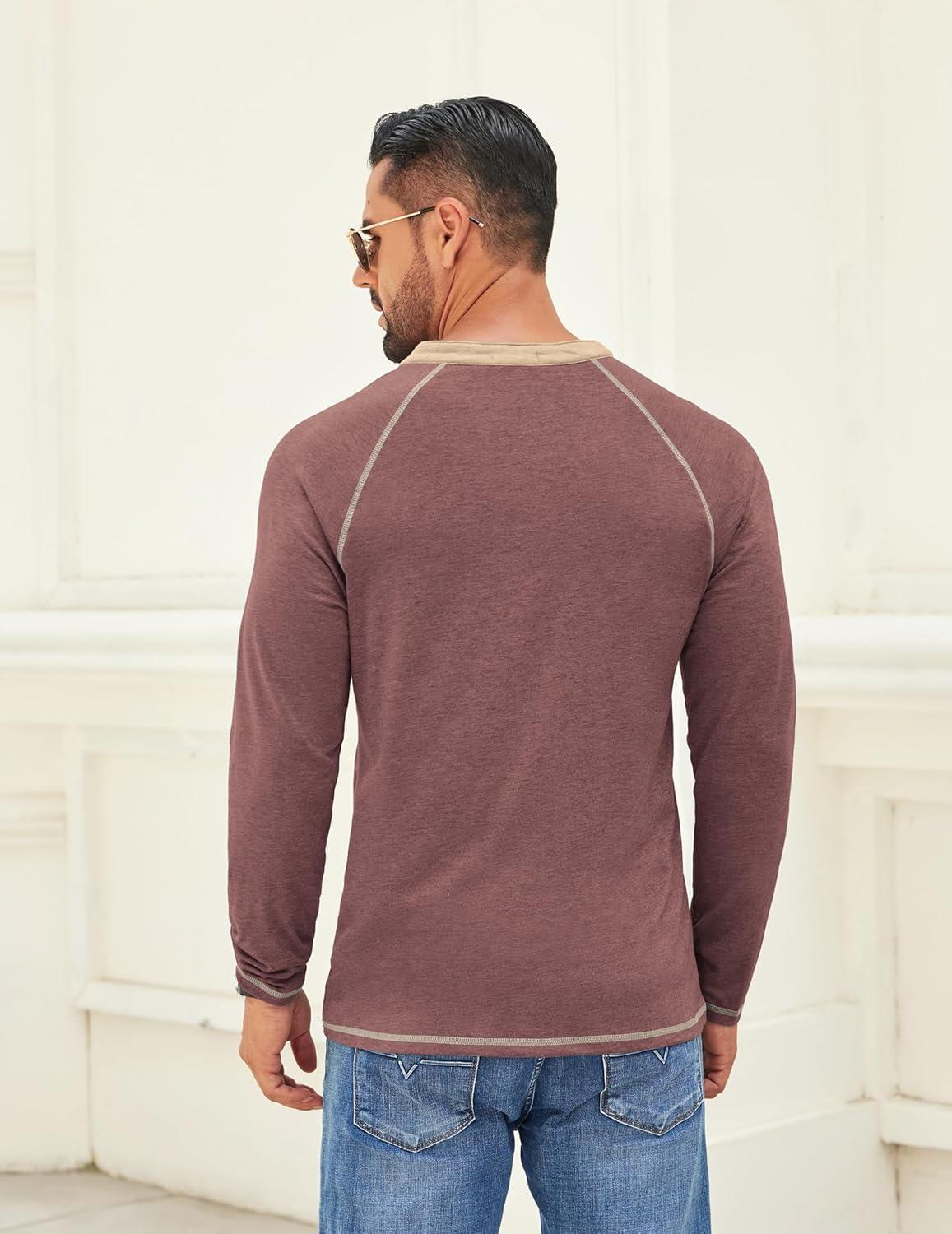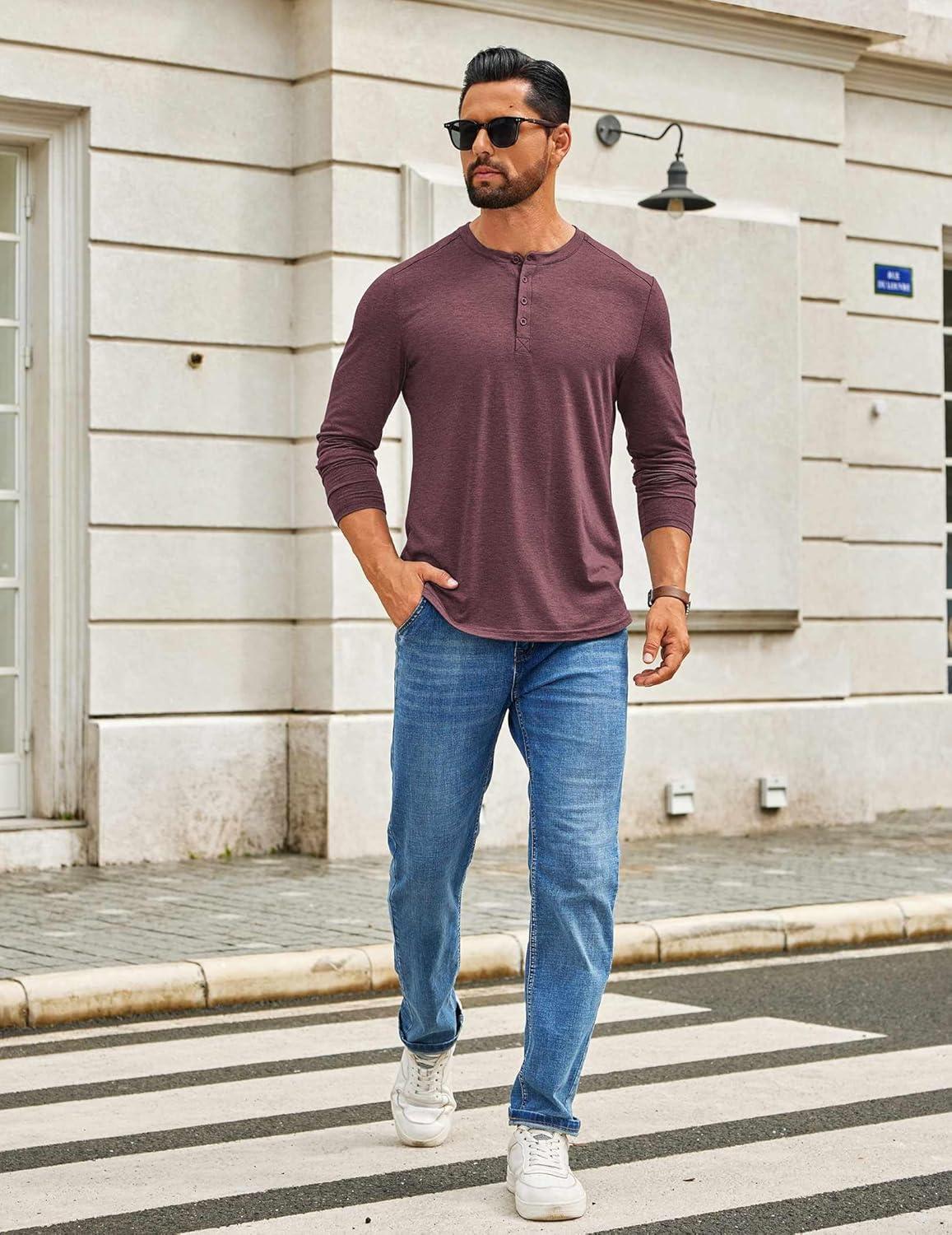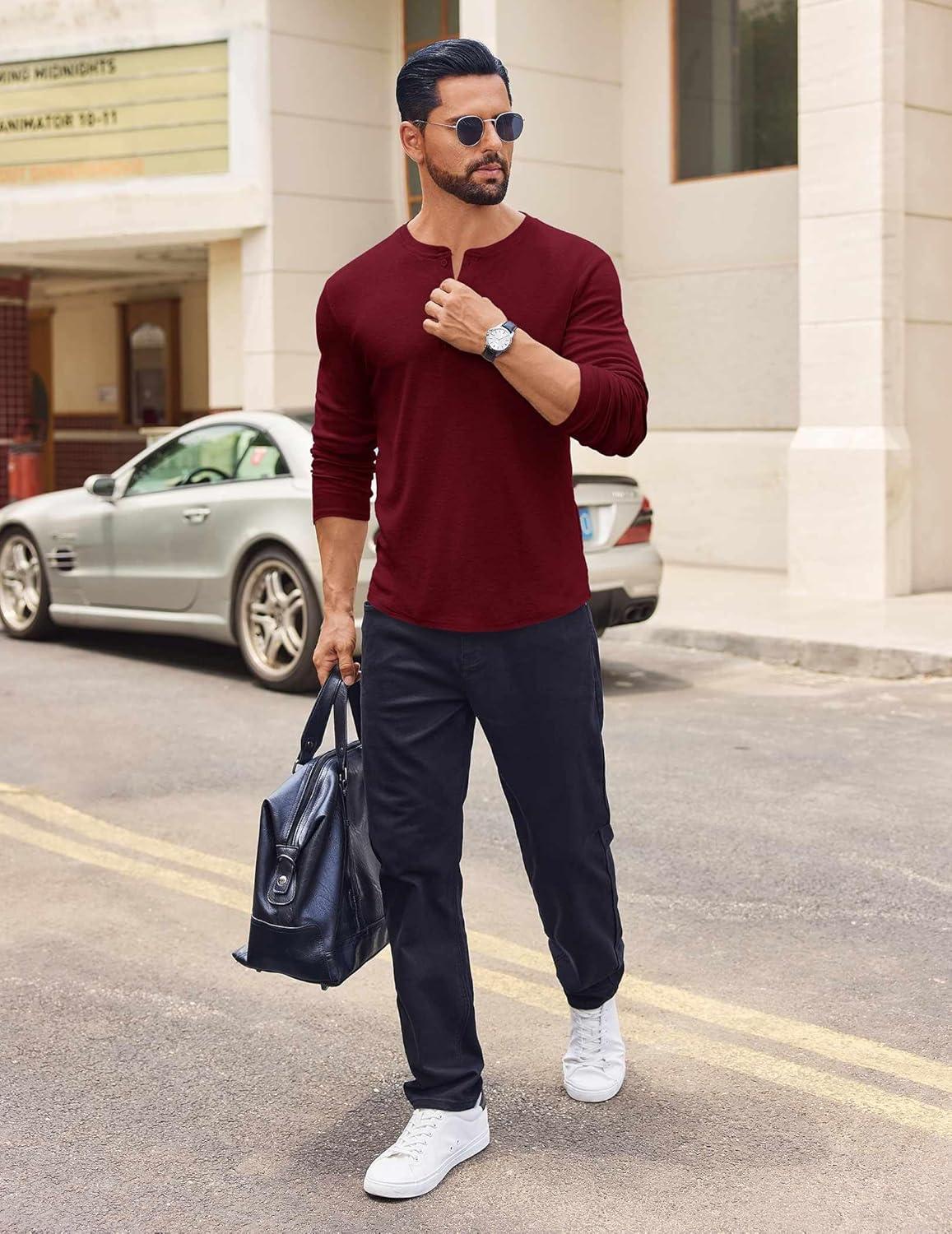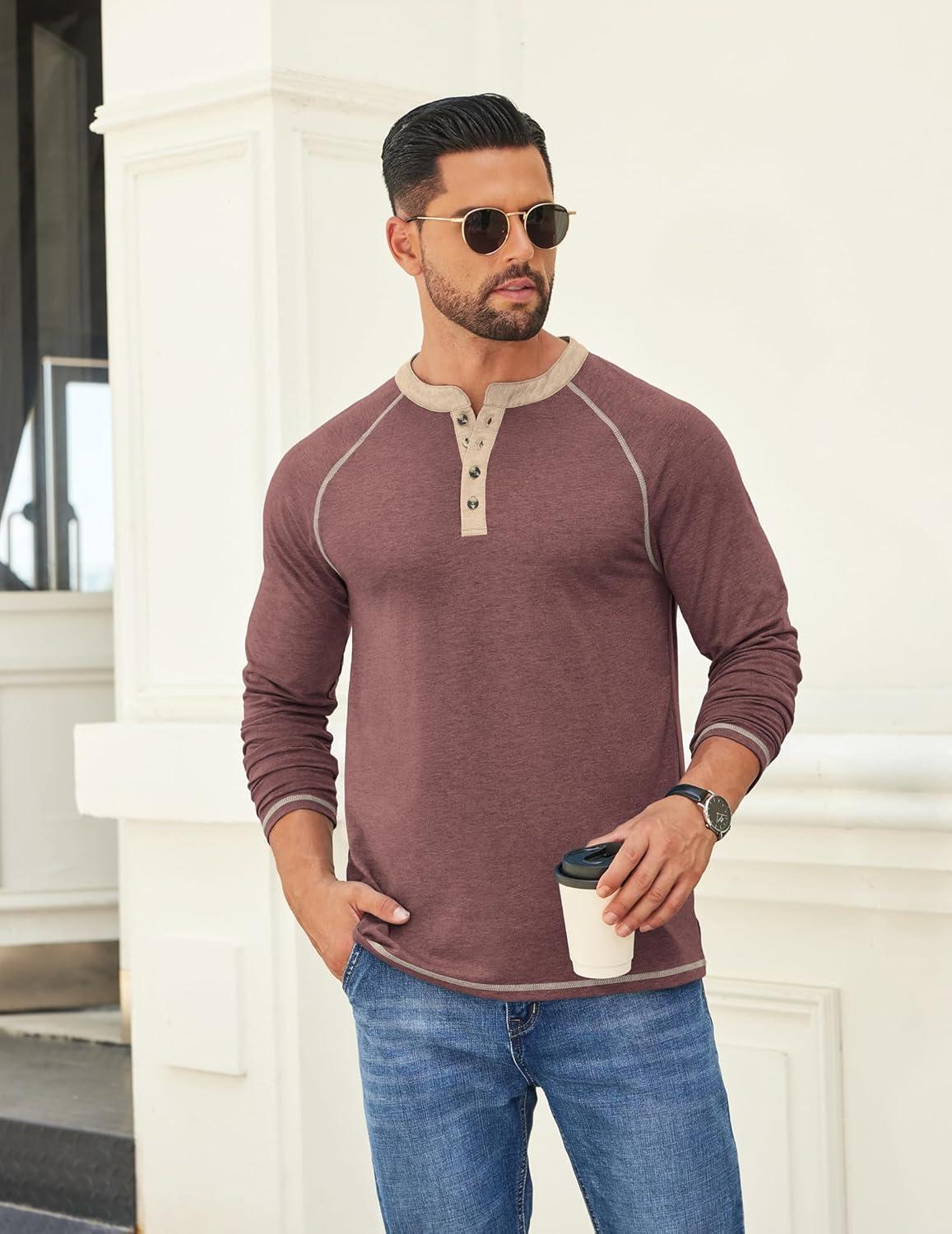 COOFANDY Men’s Henley Shirts Long Sleeve T-Shirt Lightweight Fashion Casual Pullover Tee Shirt(Wine Red)