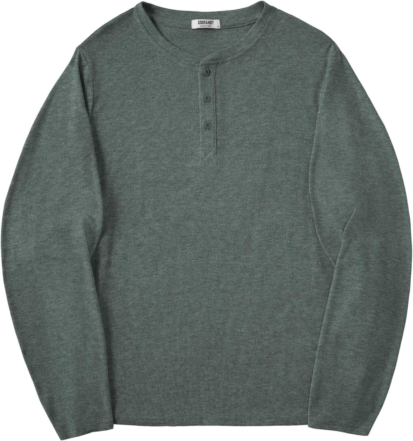 COOFANDY Mens Henley Shirts Long Sleeve Casual Pullover Shirt Fashion Button T-Shirt(Heather Green)
