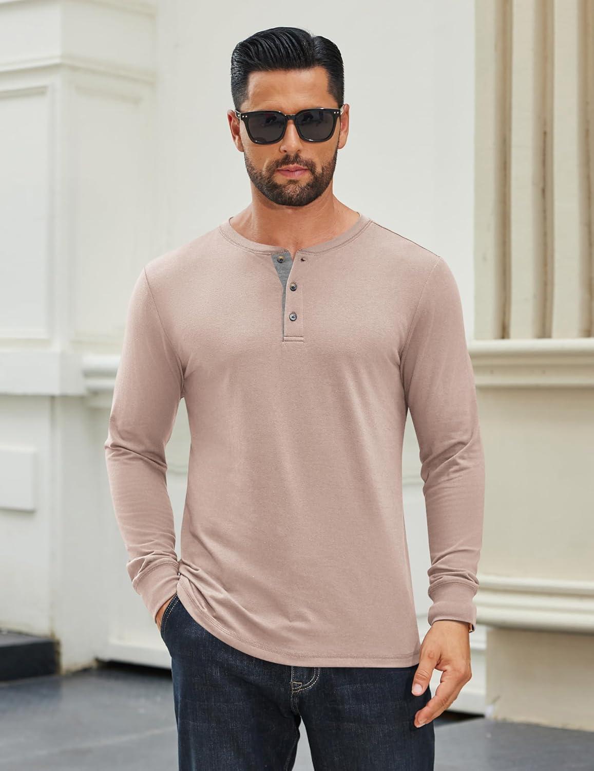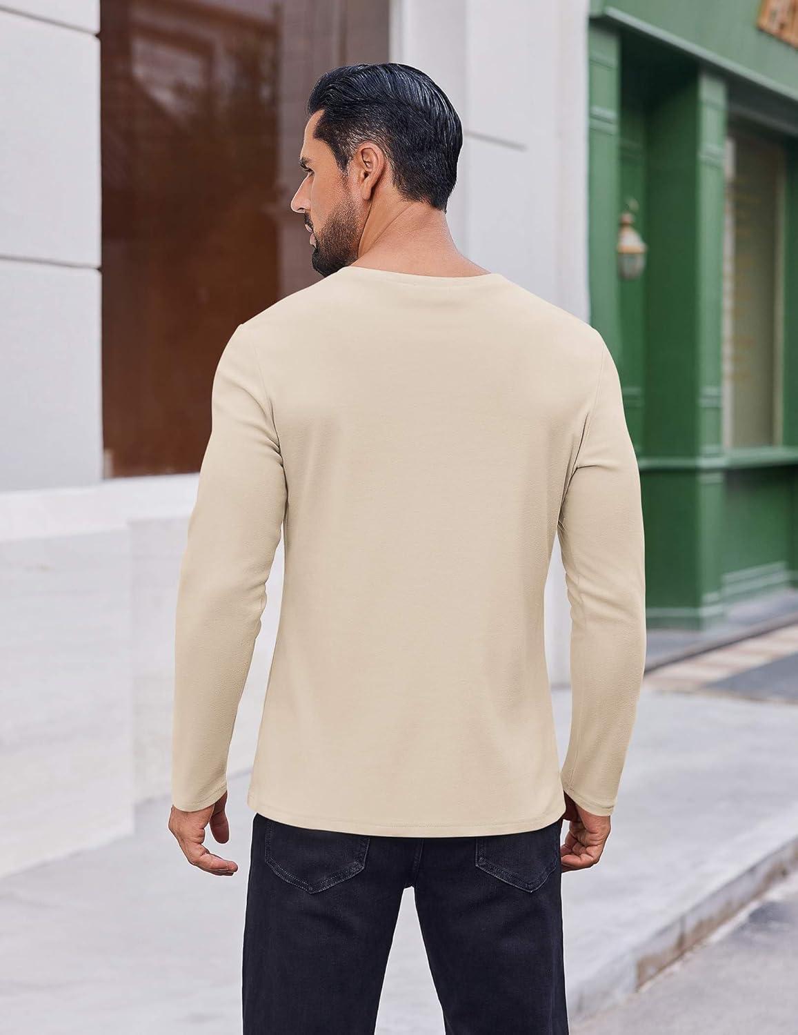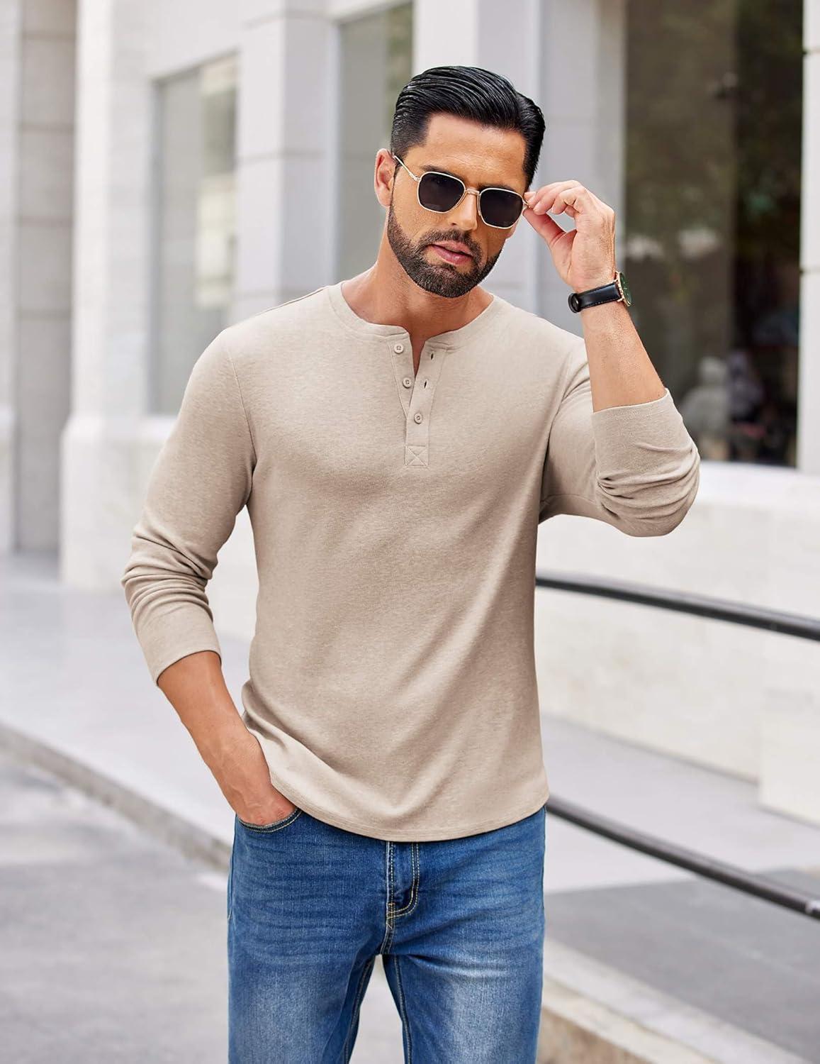 COOFANDY Men’s Long Sleeve Henley Shirts Cotton T-Shirts Casual Pullover Shirt Soft Stretch Basic Tees Fall Tops(Beige)