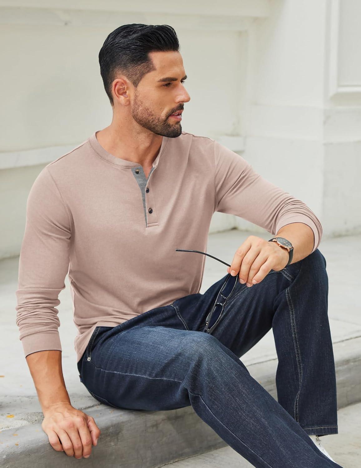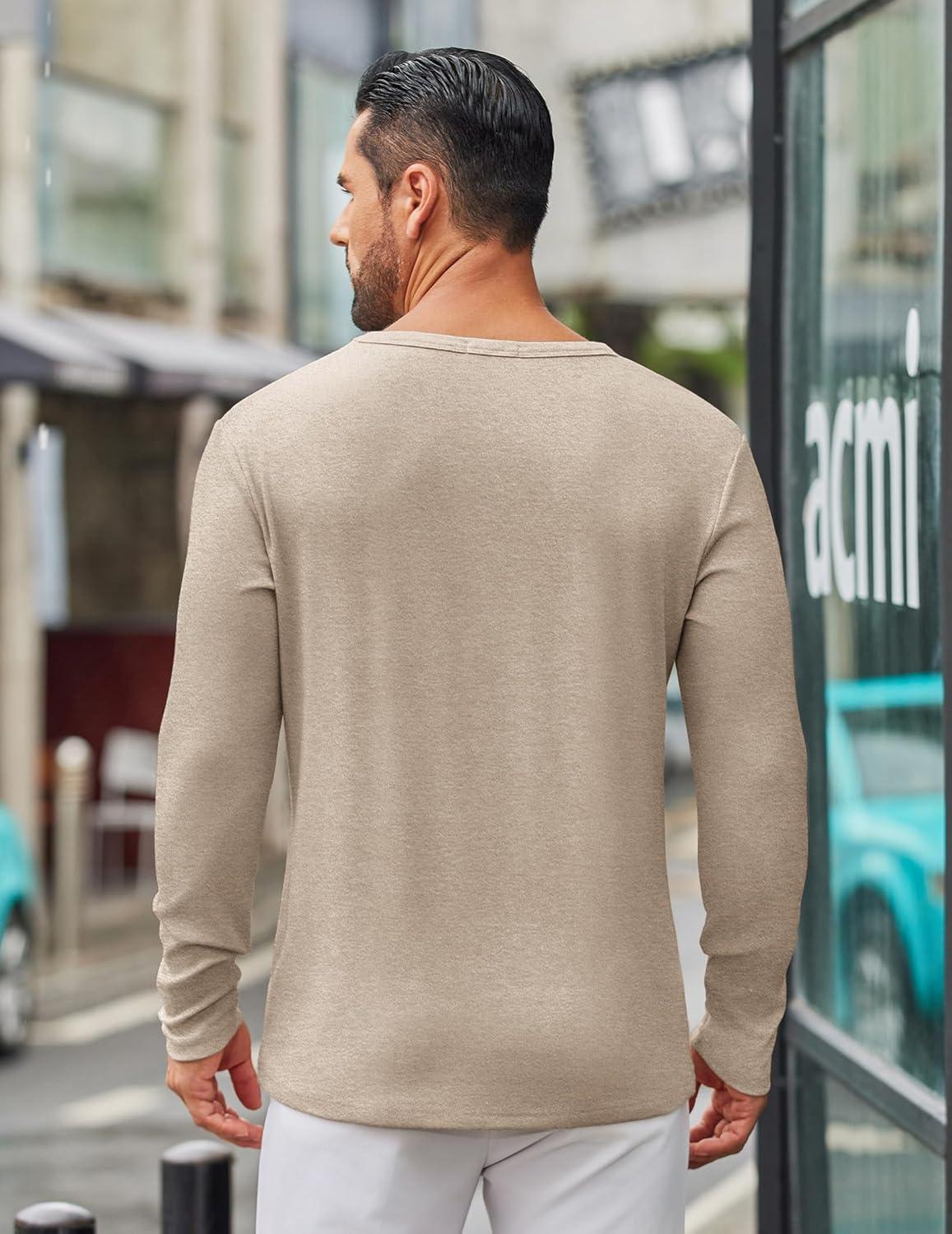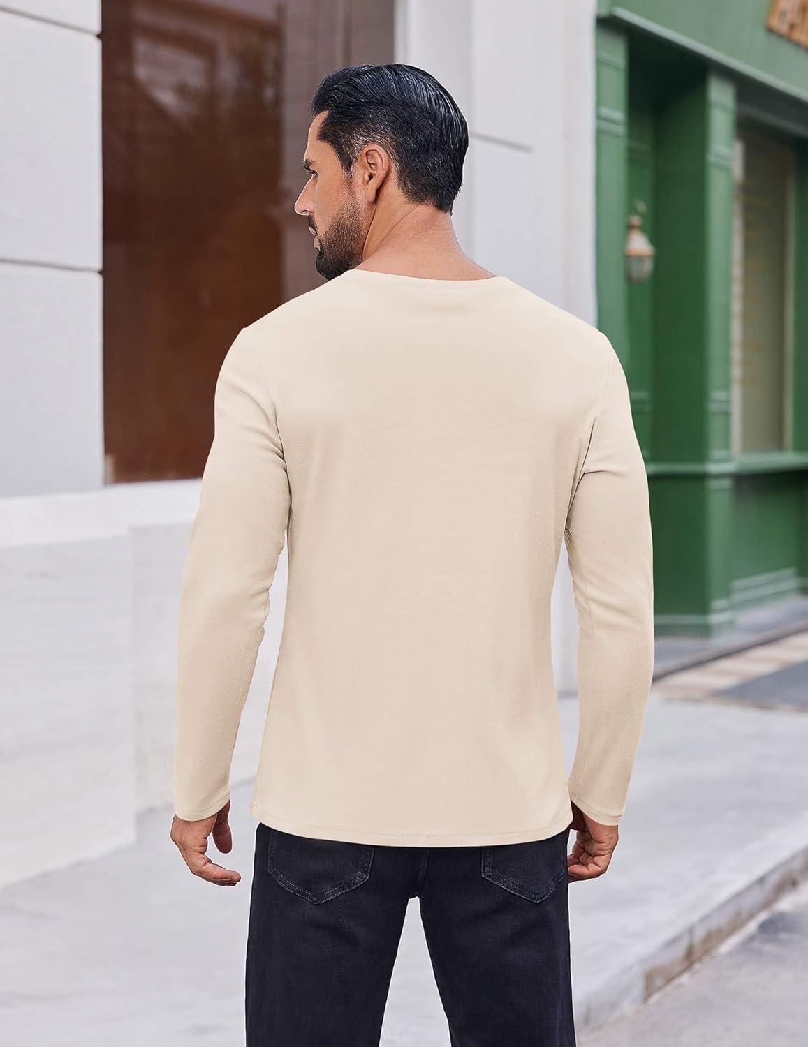 COOFANDY Men’s Long Sleeve Henley Shirts Cotton T-Shirts Casual Pullover Shirt Soft Stretch Basic Tees Fall Tops(Beige)