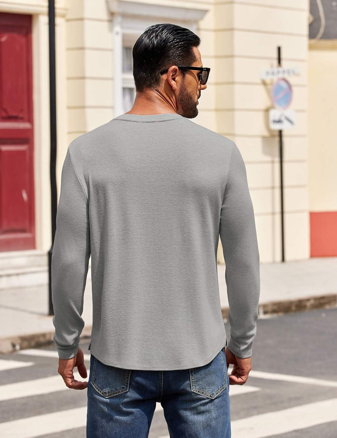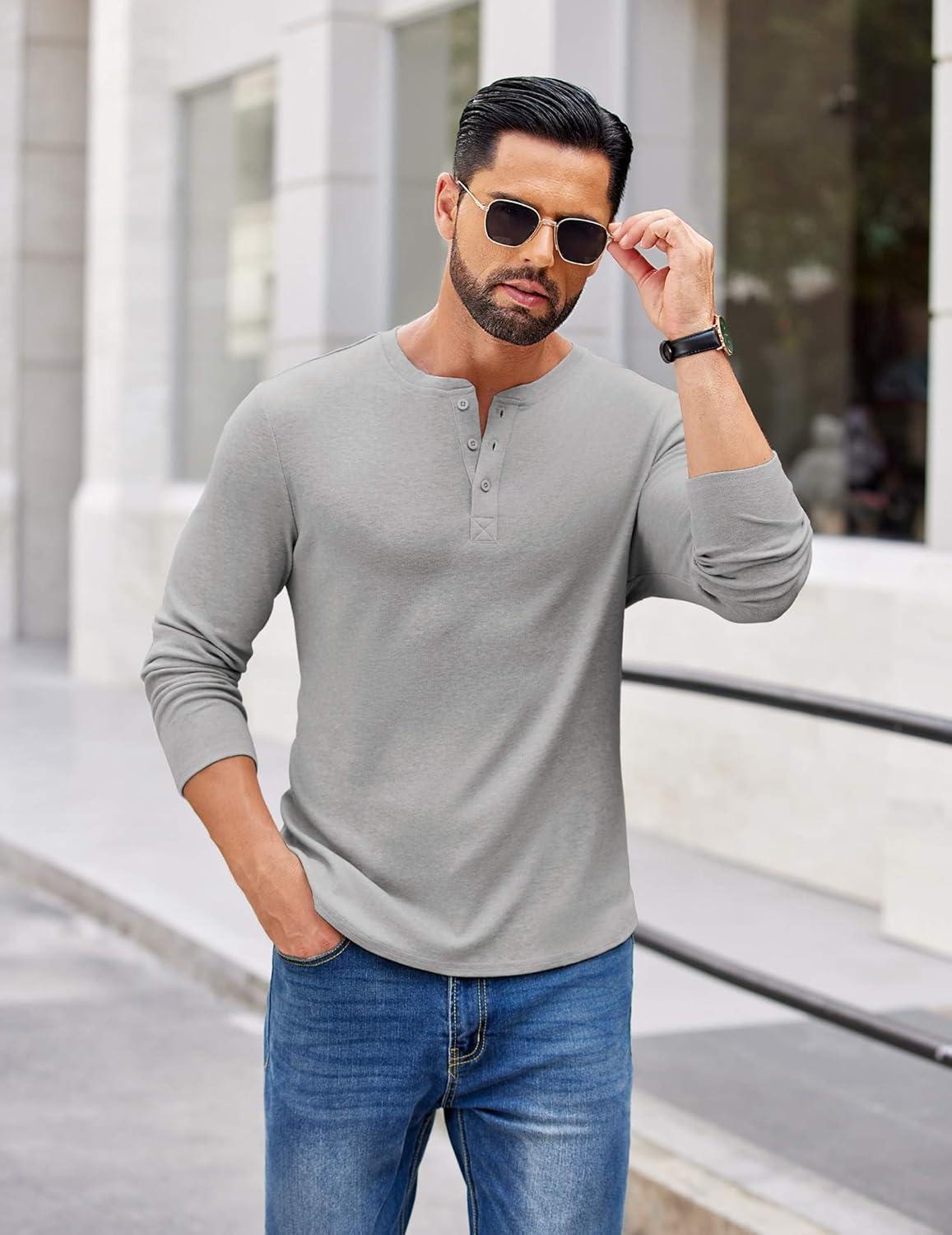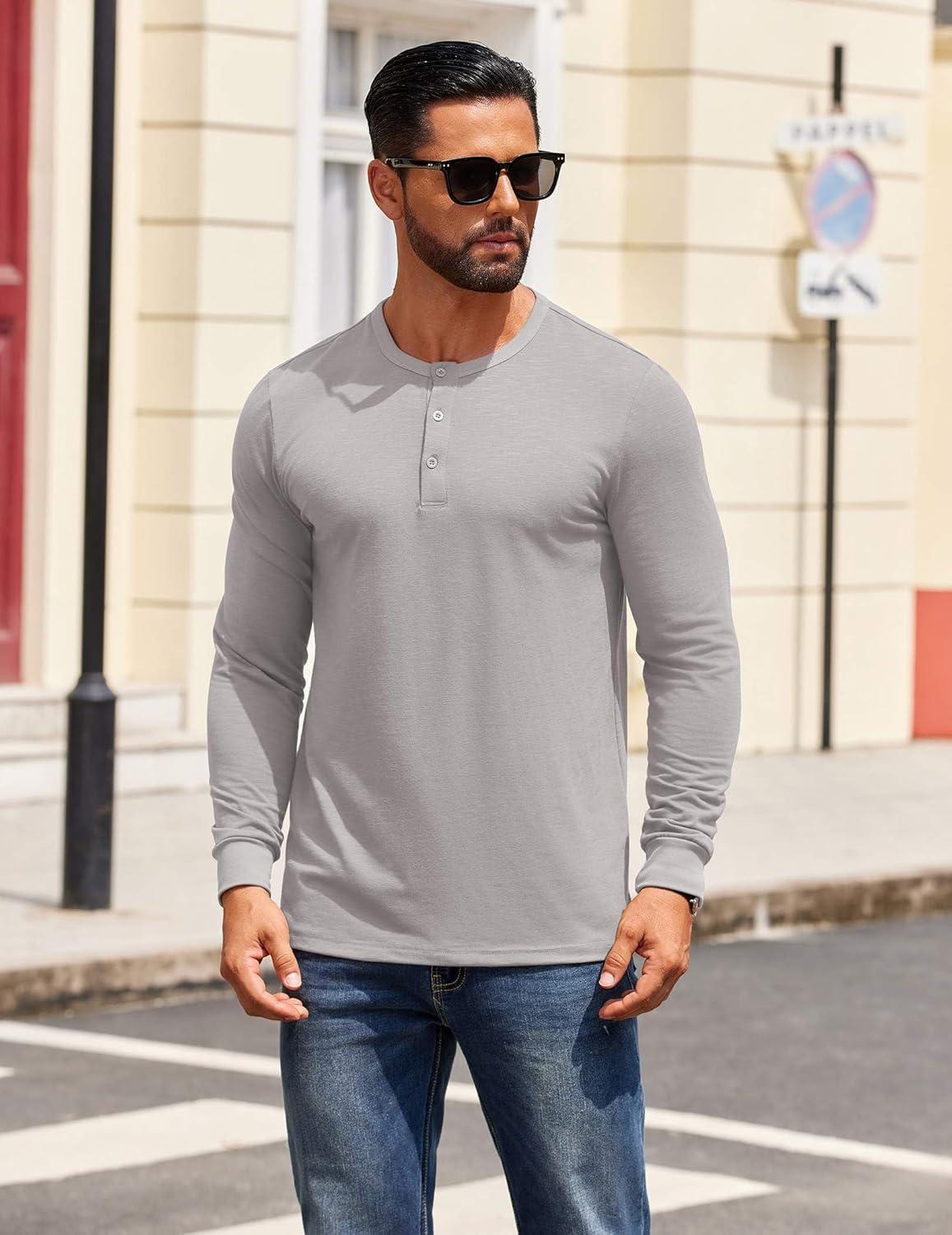 COOFANDY Men’s Henley Shirts Long Sleeve T-Shirt Lightweight Fashion Casual Pullover Tee Shirt(Light Grey)