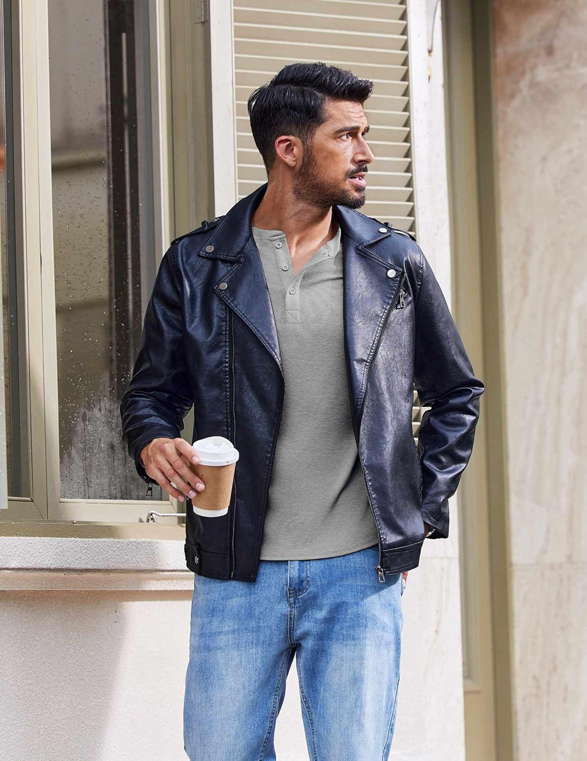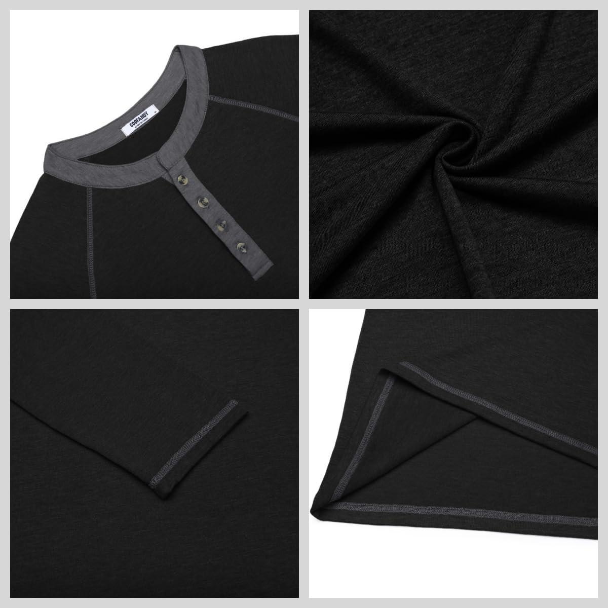 COOFANDY Men’s Long Sleeve Henley Shirts Cotton T-Shirts Casual Pullover Shirt Soft Stretch Basic Tees Fall Tops(Black 01 – Grey Collar)