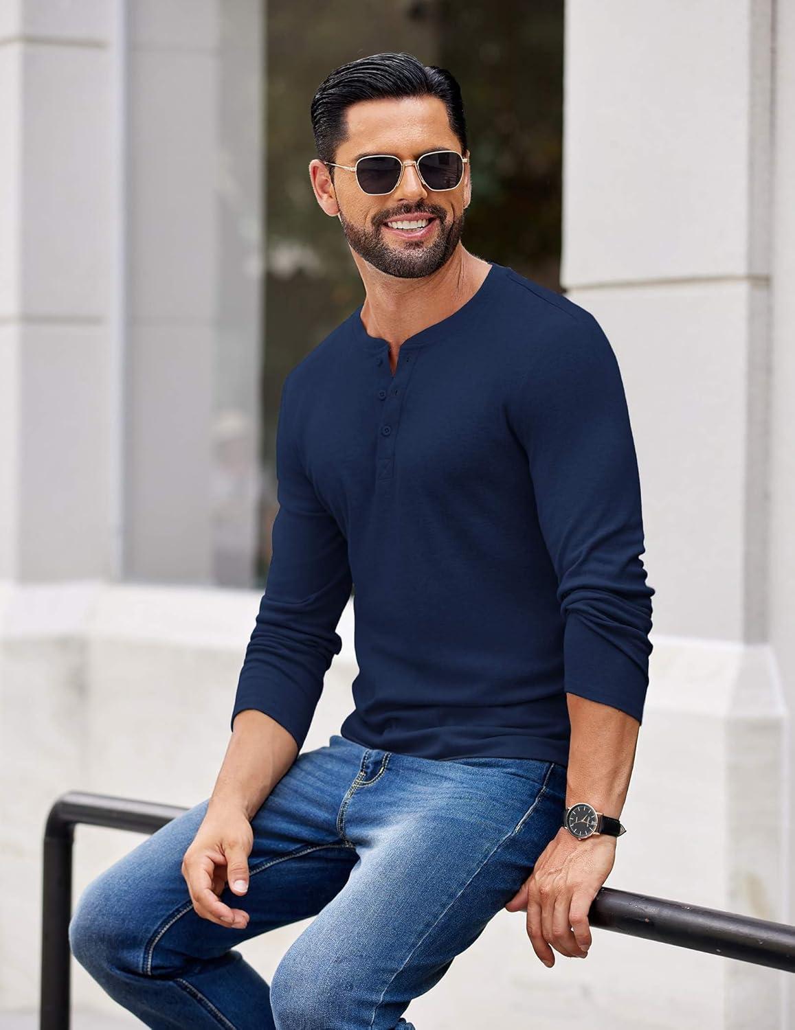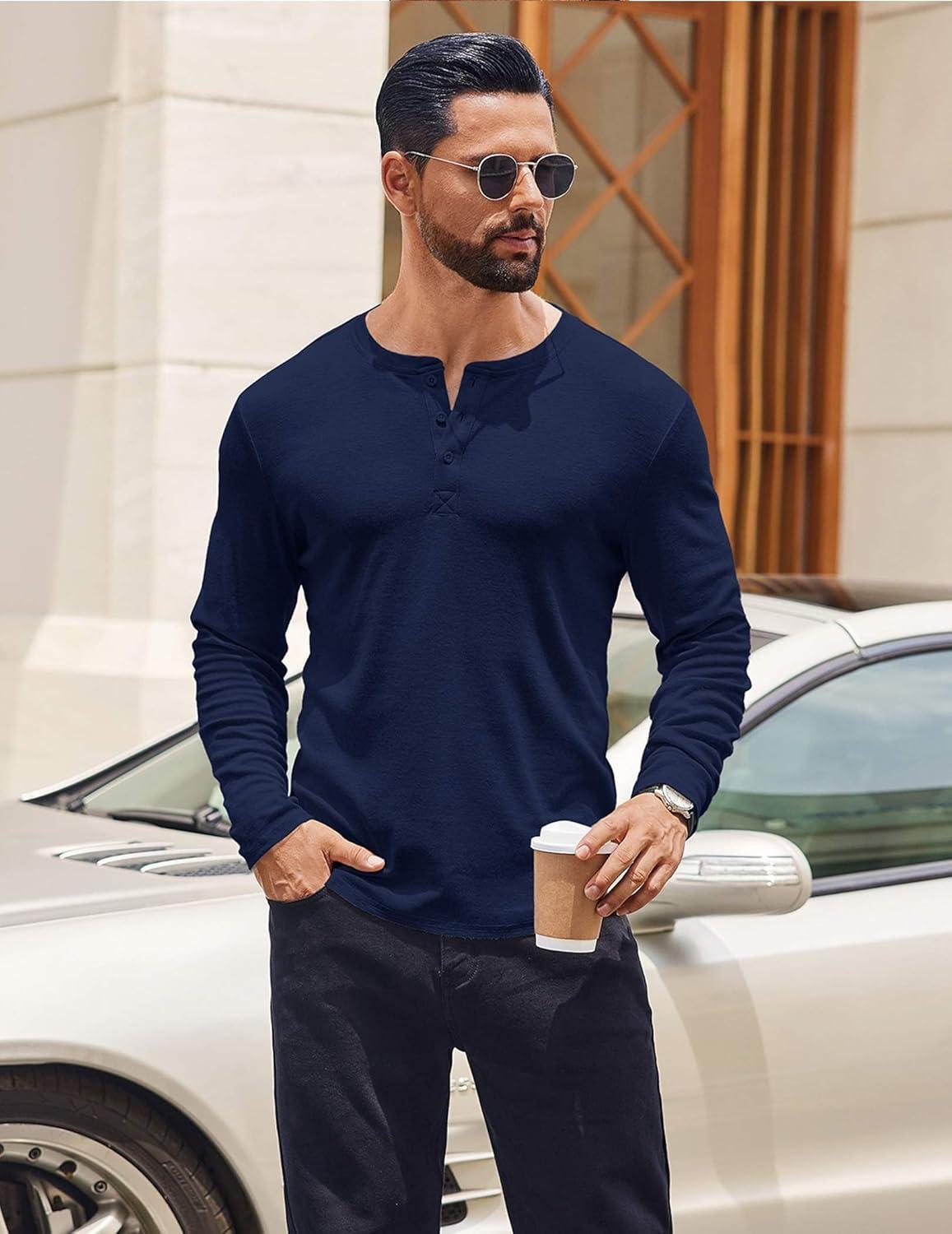 COOFANDY Mens Henley Shirts Long Sleeve T Shirts Casual Lightweight Fashion Button Pullover Tee Shirt(Deep Blue)