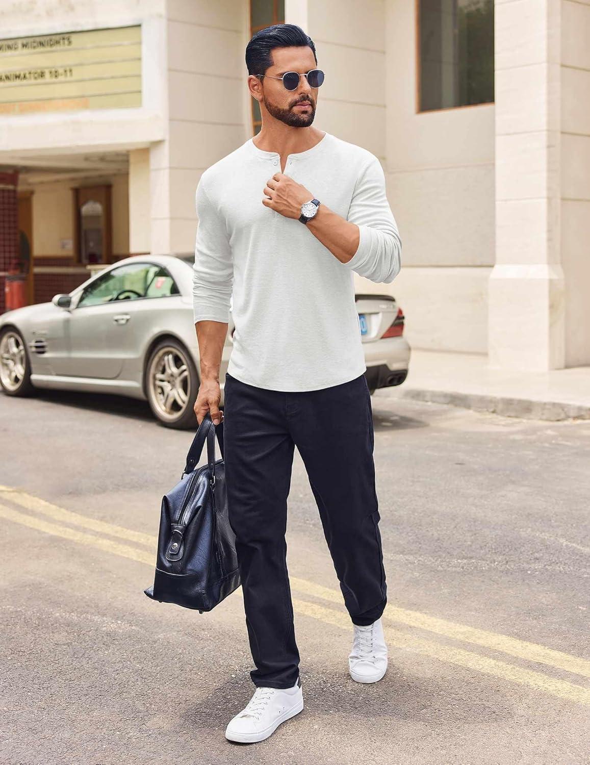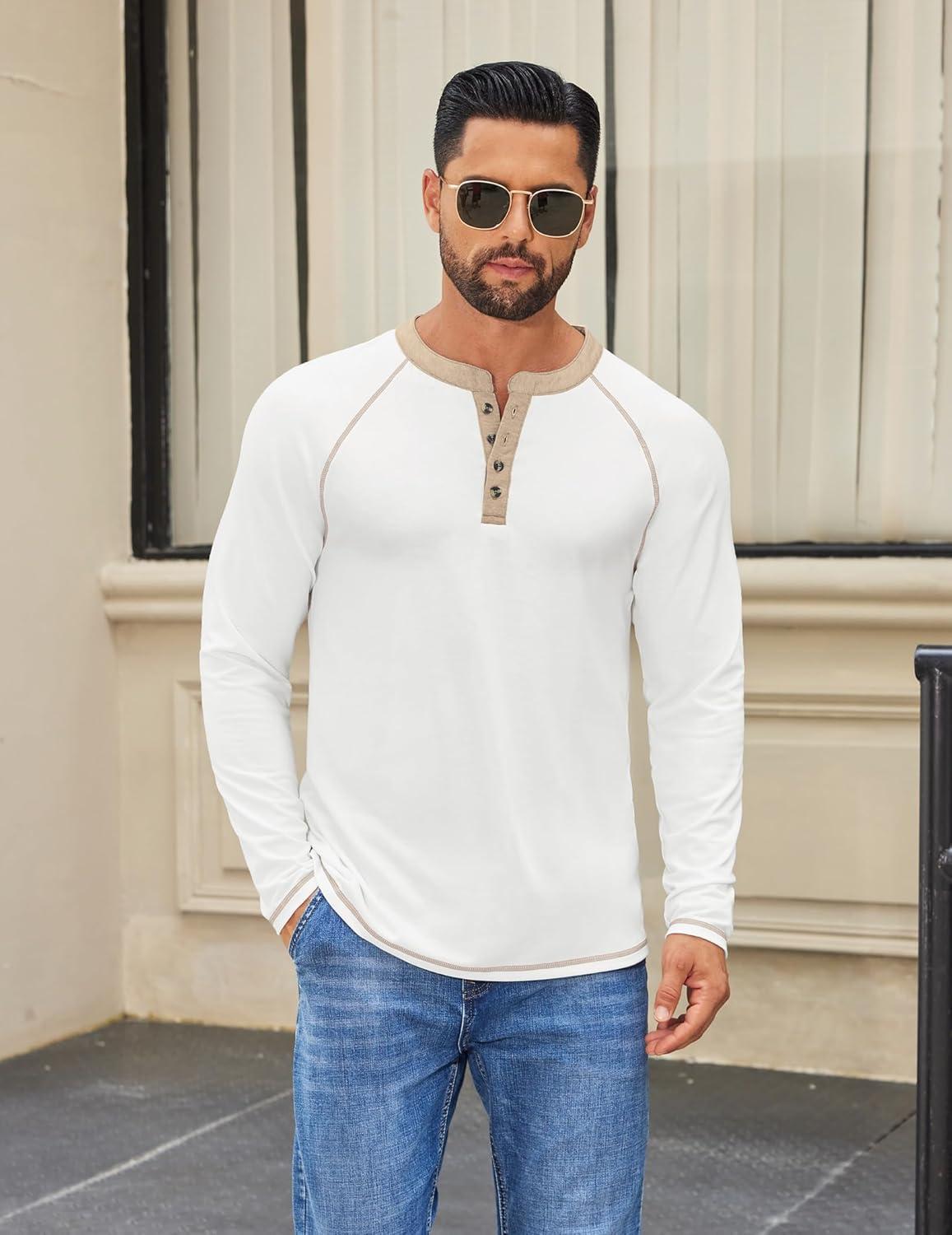 COOFANDY Men’s Henley Shirts Long Sleeve T-Shirt Lightweight Fashion Casual Pullover Tee Shirt(White)