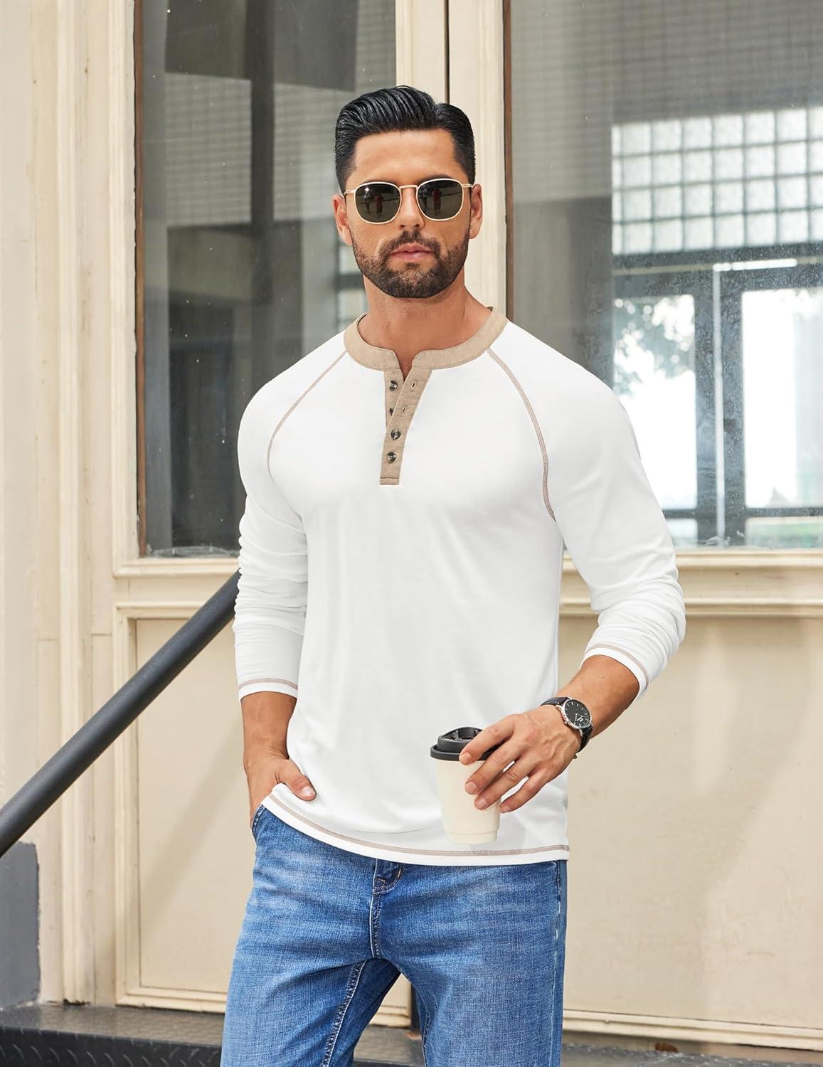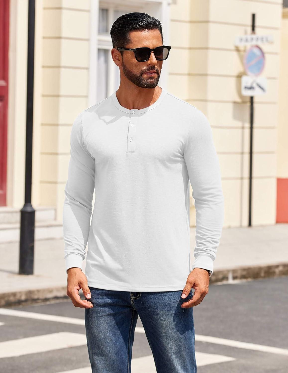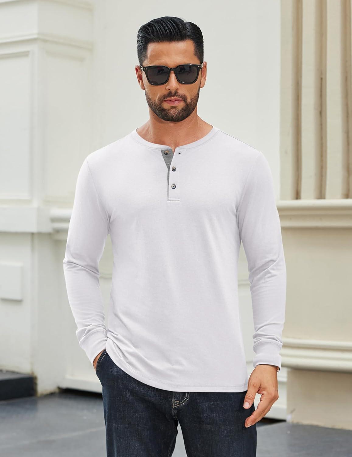 COOFANDY Mens Henley Shirts Long Sleeve T Shirts Casual Lightweight Fashion Button Pullover Tee Shirt(White)